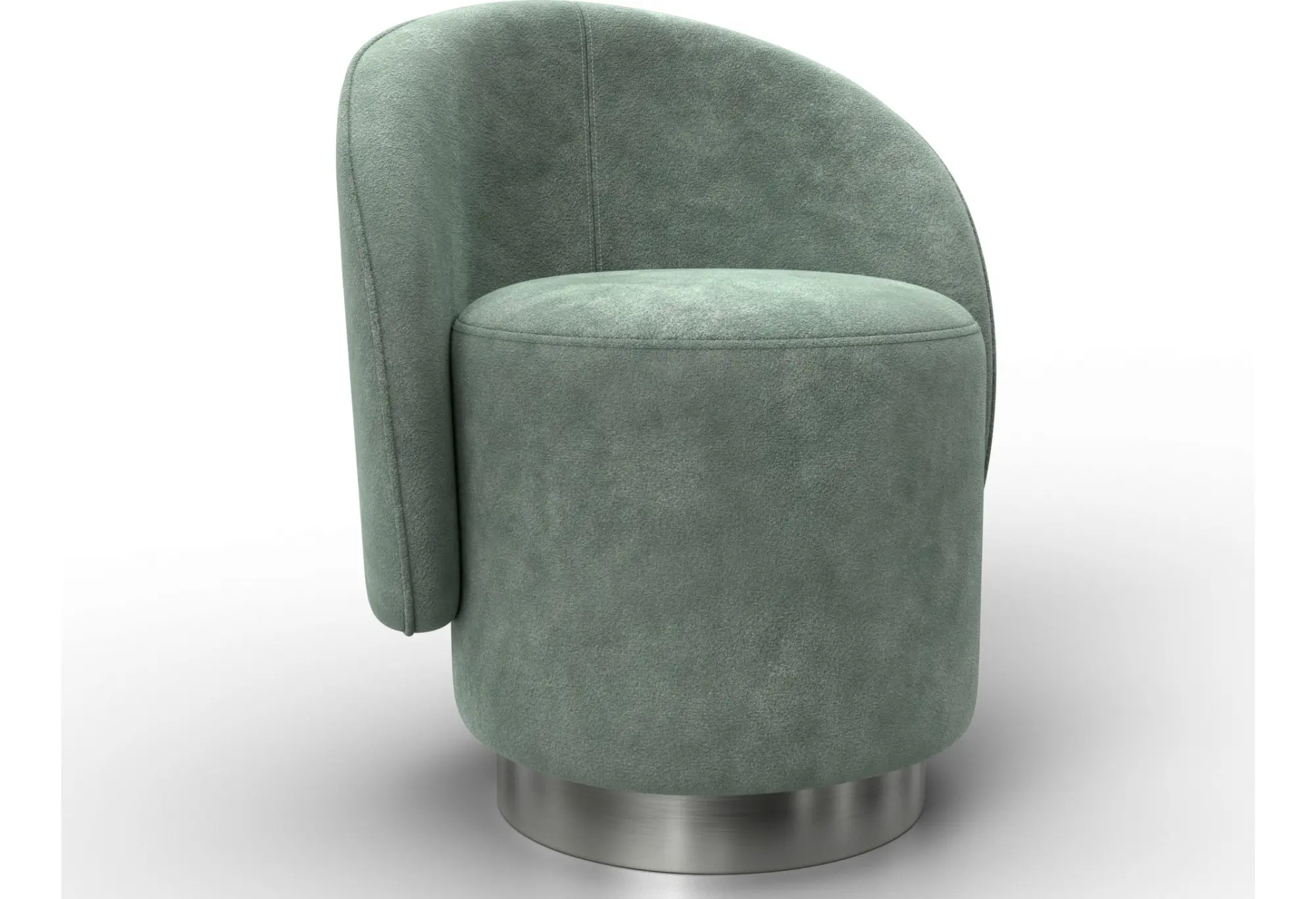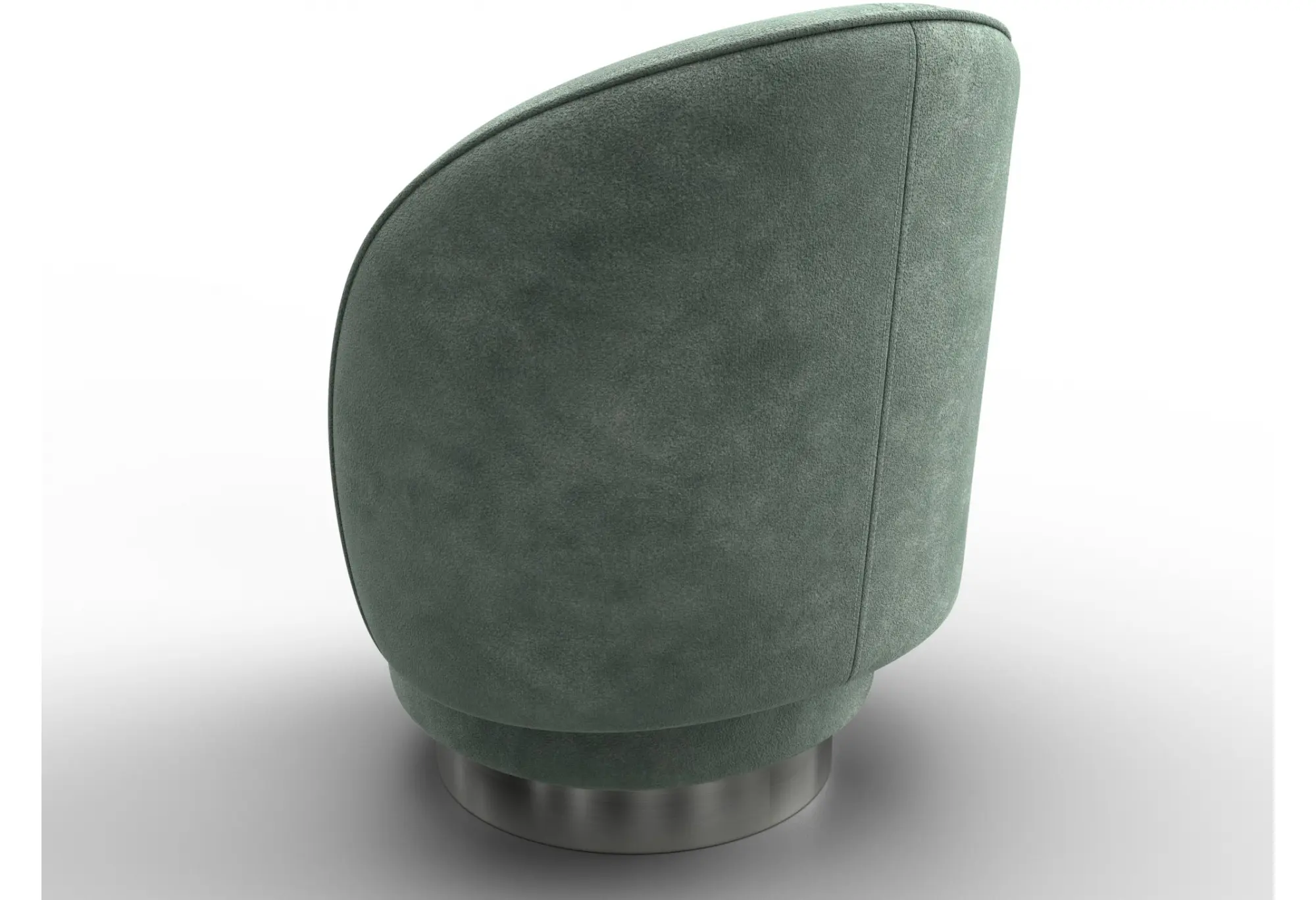 Обивка выполнена из велюра приятного зеленого оттенка BRUT 08. Ткань хорошо драпируется по форме кресла, подчеркивая плавные линии и придавая модели аккуратный, законченный вид. Велюр практичен в повседневном использовании и подходит для регулярной эксплуатации в домашних и офисных условиях.