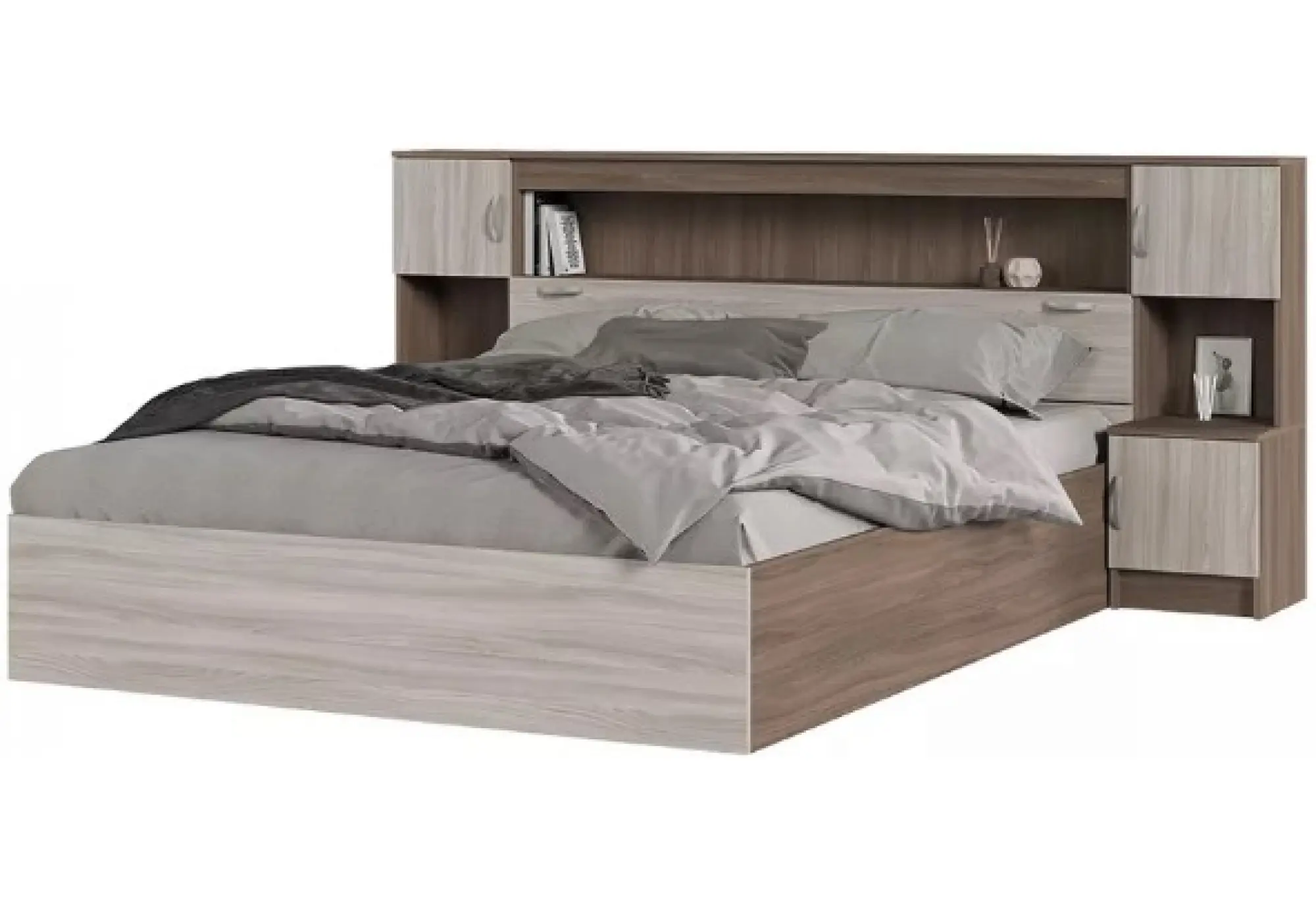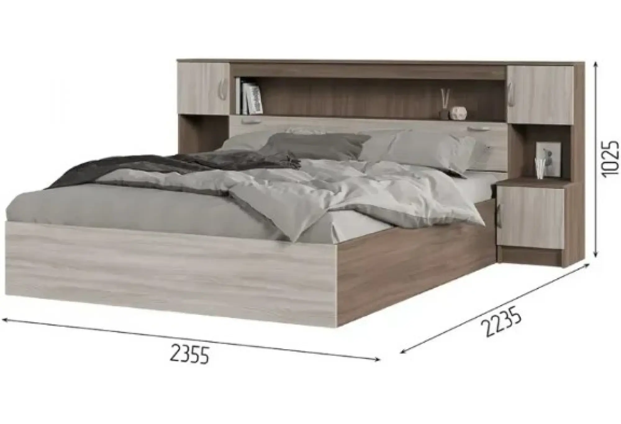 Кровать «Басса» с прикроватным блоком создаёт в спальне аккуратное и функциональное пространство. Широкое спальное место 1600×2000 мм обеспечивает комфорт для двух человек, а высокий изголовье-блок объединяет в себе сразу несколько зон хранения. Открытая ниша удобна для книг, аксессуаров и предметов, которые должны быть под рукой, а закрытые шкафчики и тумбы помогают поддерживать порядок и скрывать личные вещи.
