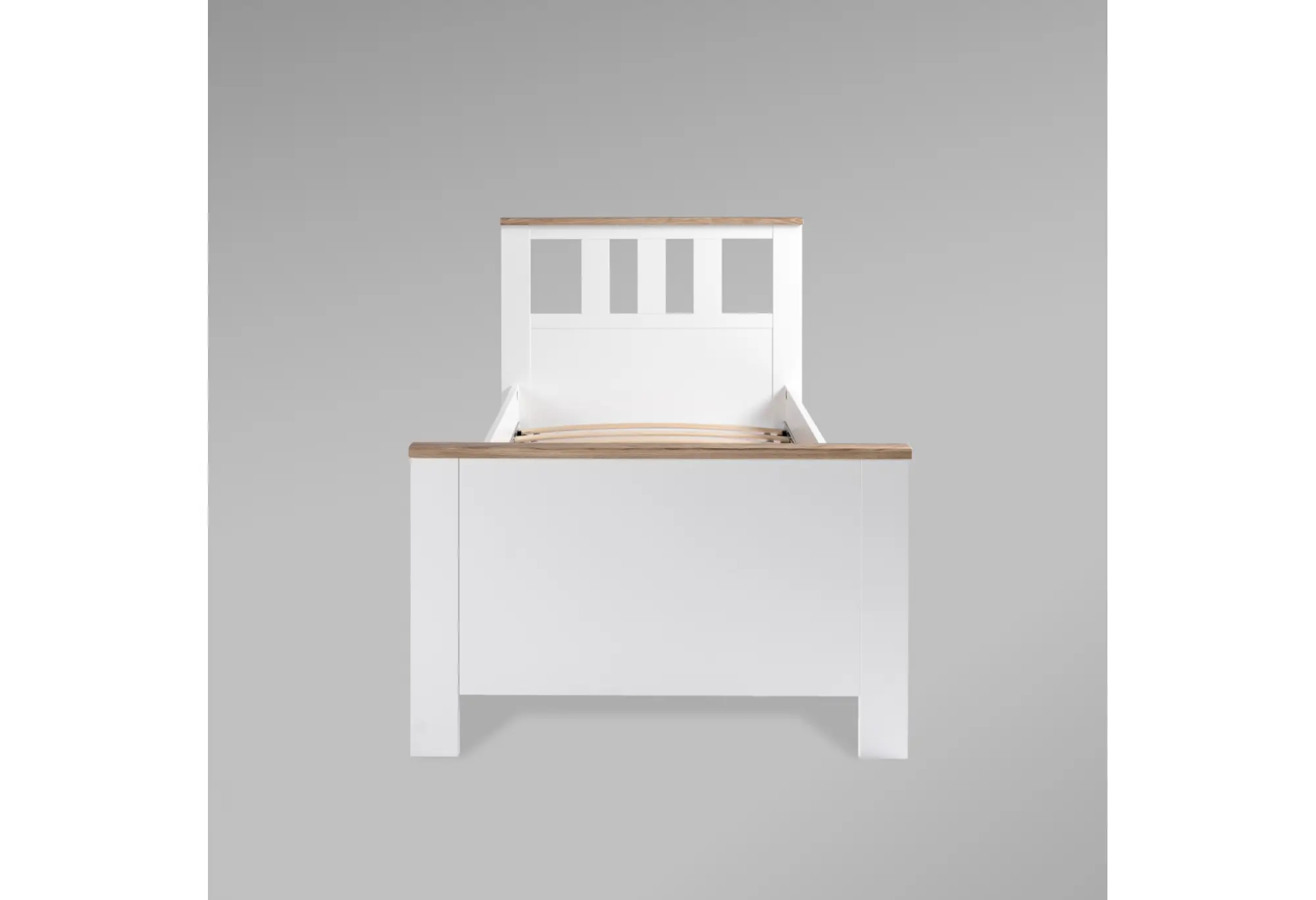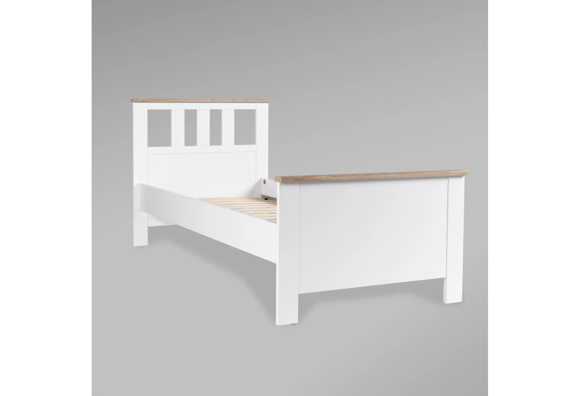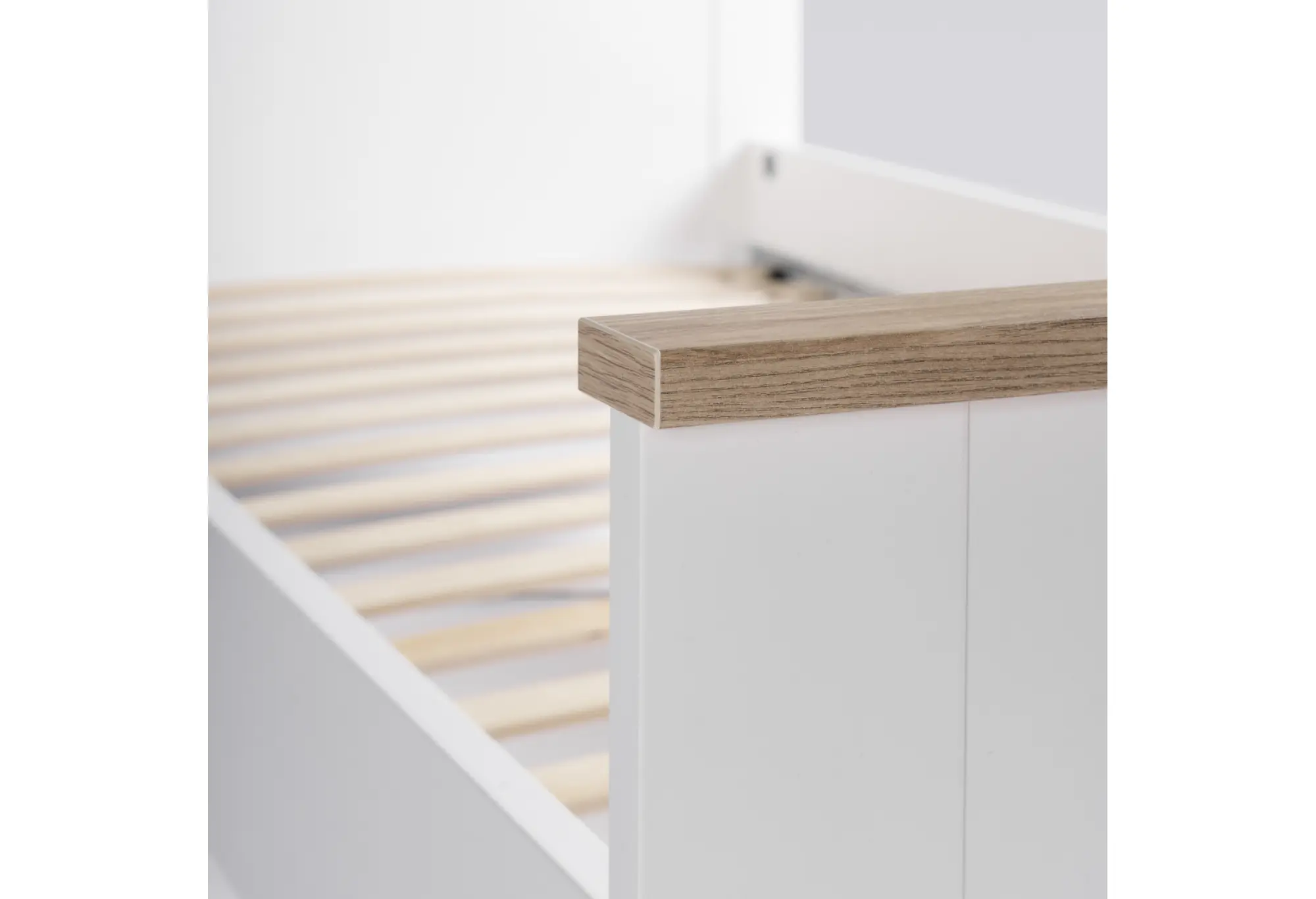 Высокие изголовье и изножье формируют завершённый силуэт и помогают аккуратно зонировать спальное место. Основание под матрас выполнено в виде реечного настила, что обеспечивает хорошую поддержку и равномерное распределение нагрузки по всей площади ложа. Размер спального места 90×200 см подходит для взрослого или ребёнка, не перегружая пространство комнаты.