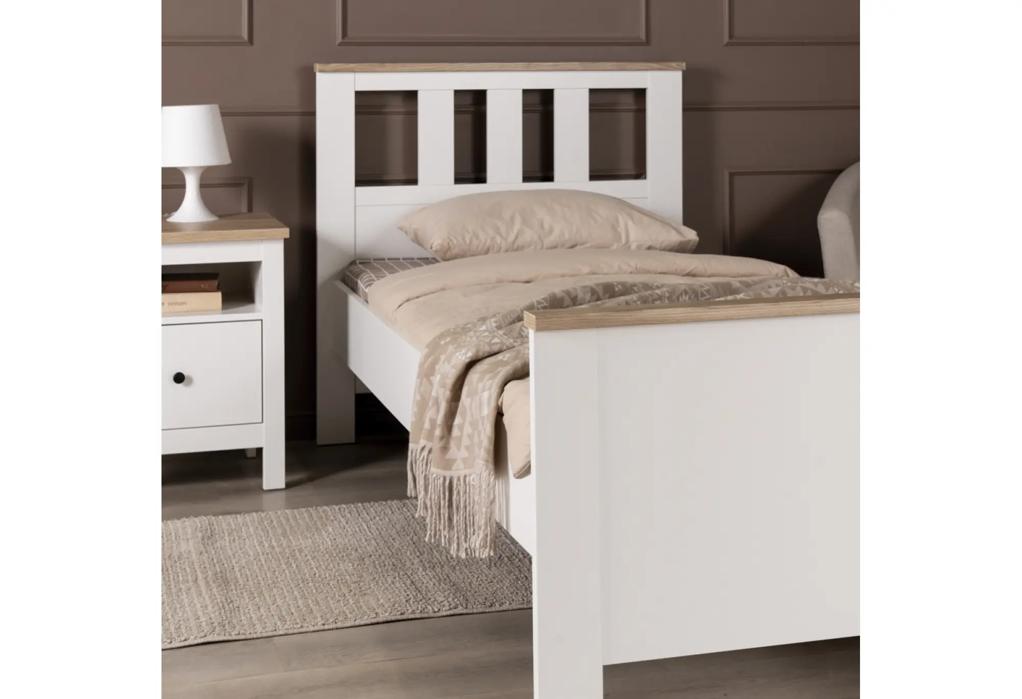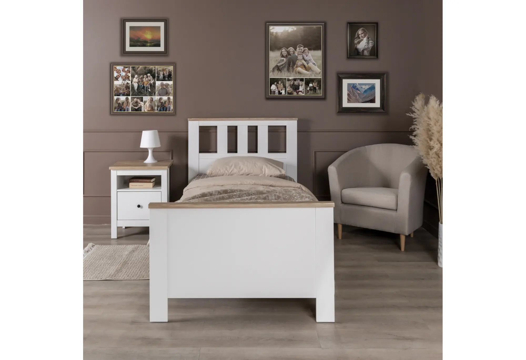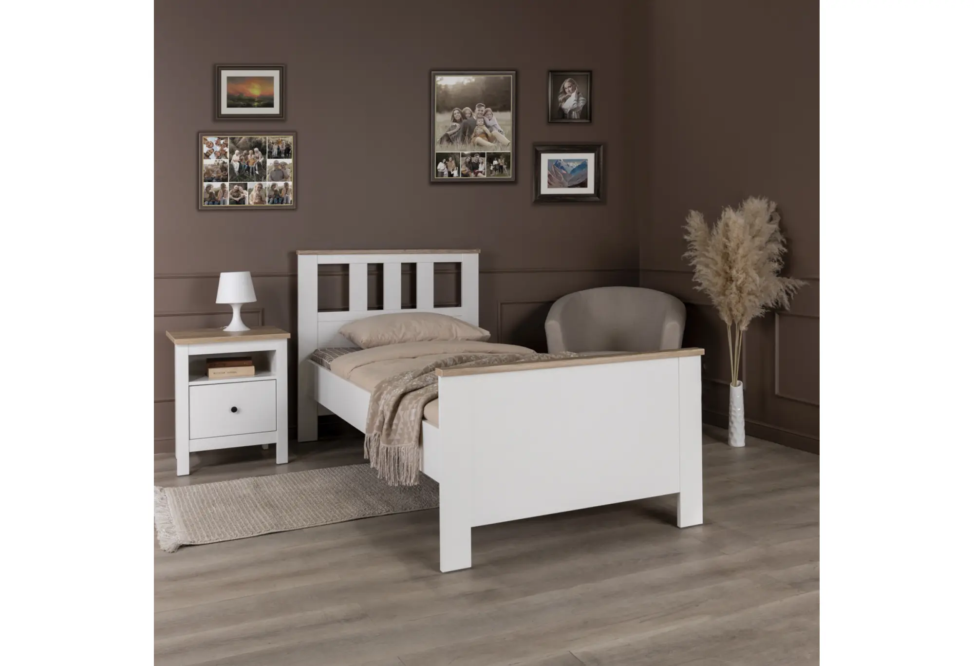 Высокие изголовье и изножье формируют завершённый силуэт и помогают аккуратно зонировать спальное место. Основание под матрас выполнено в виде реечного настила, что обеспечивает хорошую поддержку и равномерное распределение нагрузки по всей площади ложа. Размер спального места 90×200 см подходит для взрослого или ребёнка, не перегружая пространство комнаты.