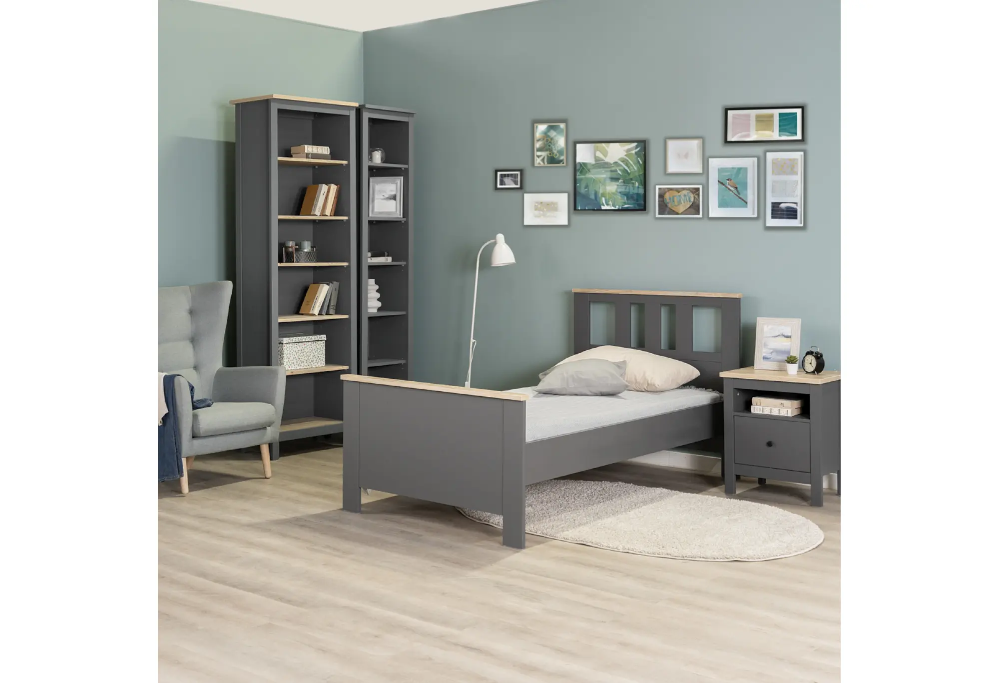 2.08.04.050.15 САГА кровать одинарная 90х200 серая/ясень