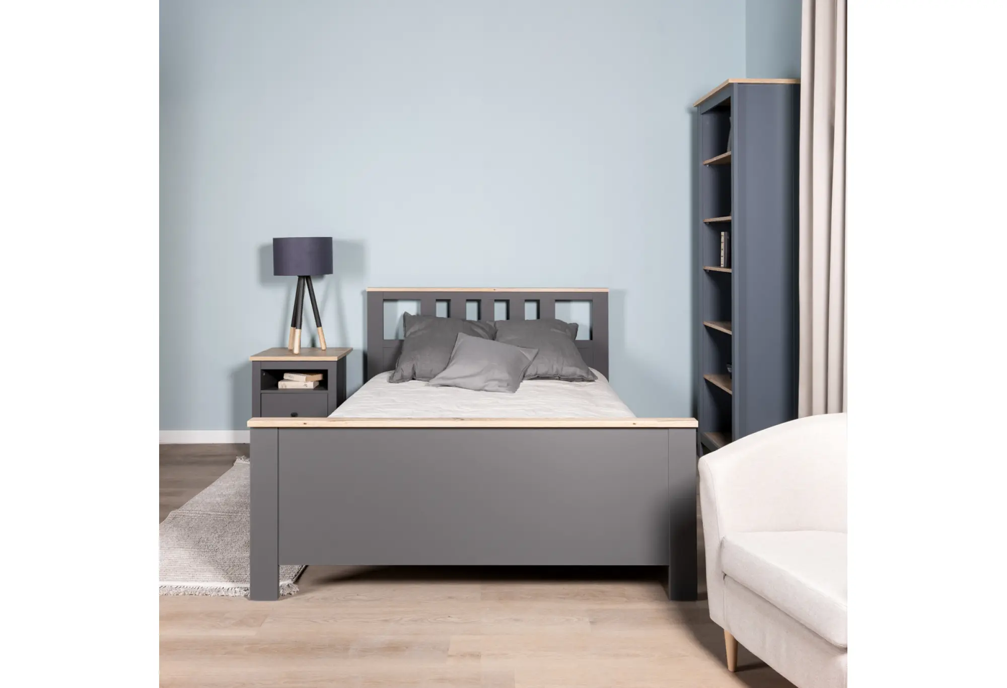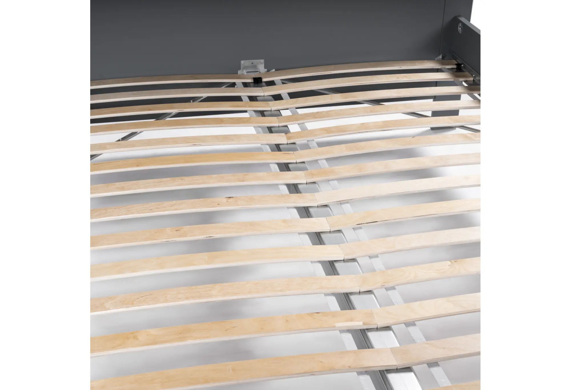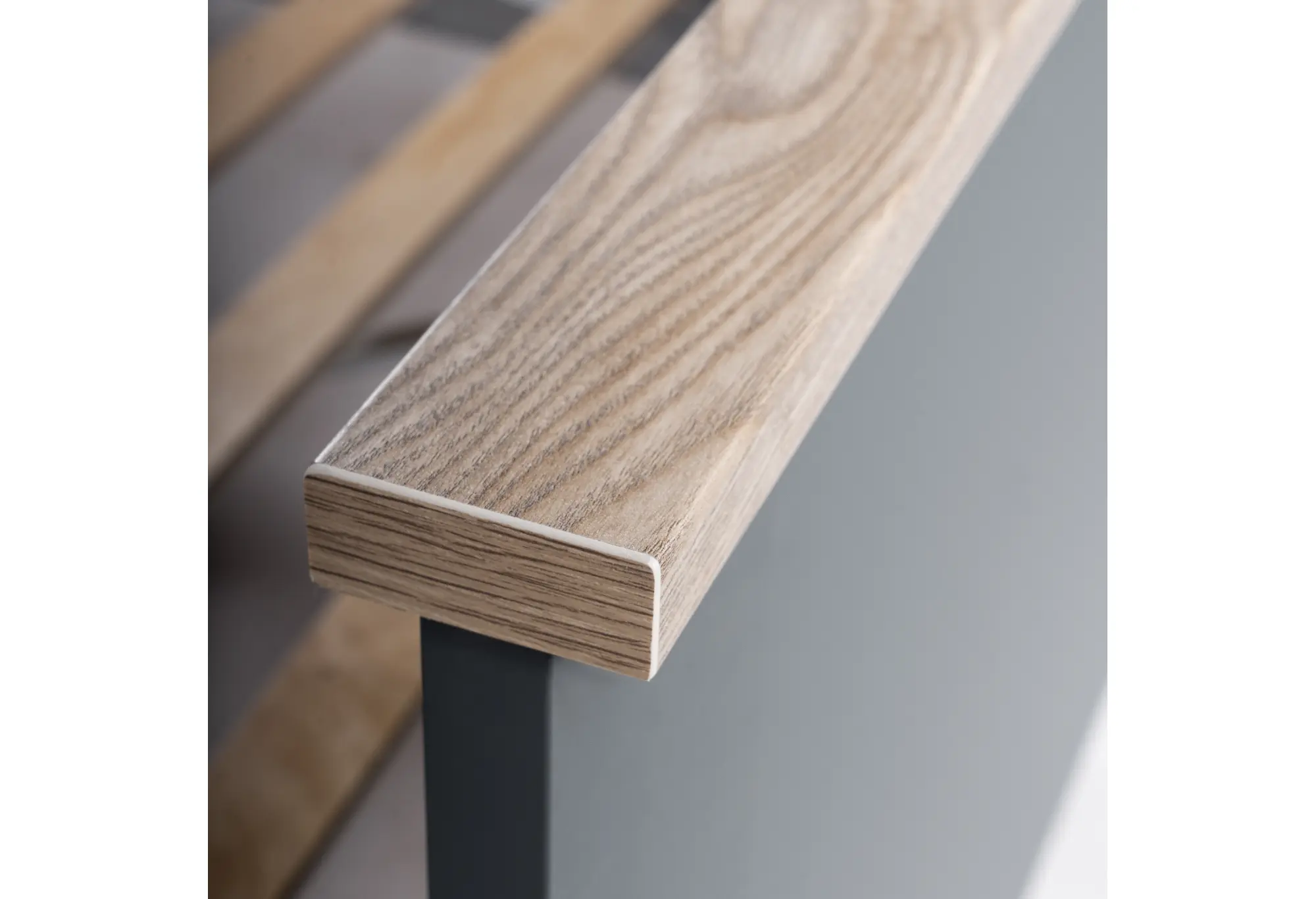 Прямые линии, минимум декоративных деталей и нейтральная цветовая палитра делают кровать практичным решением для современного интерьера, от скандинавского до строгого минимализма. Поверхности легко поддерживать в чистоте, а универсальное сочетание серого и ясеня не перегружает помещение визуально.