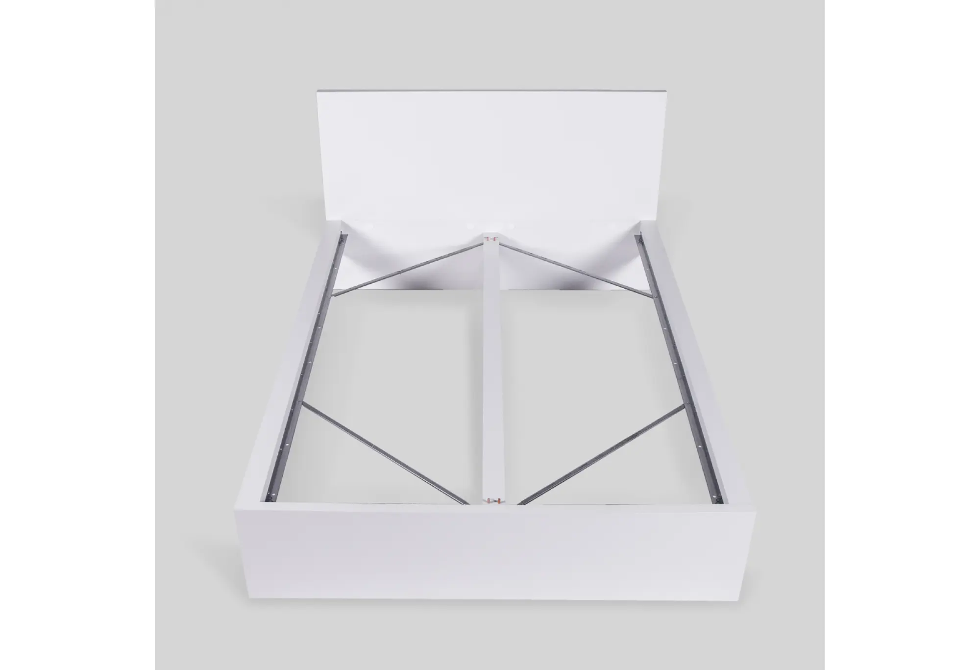 Белое исполнение визуально «облегчает» кровать и делает ее уместной как в светлых, так и в более контрастных интерьерах. Нейтральный цвет дает свободу в выборе декора, постельного белья и текстиля, позволяя легко менять настроение спальни без покупки новой мебели.