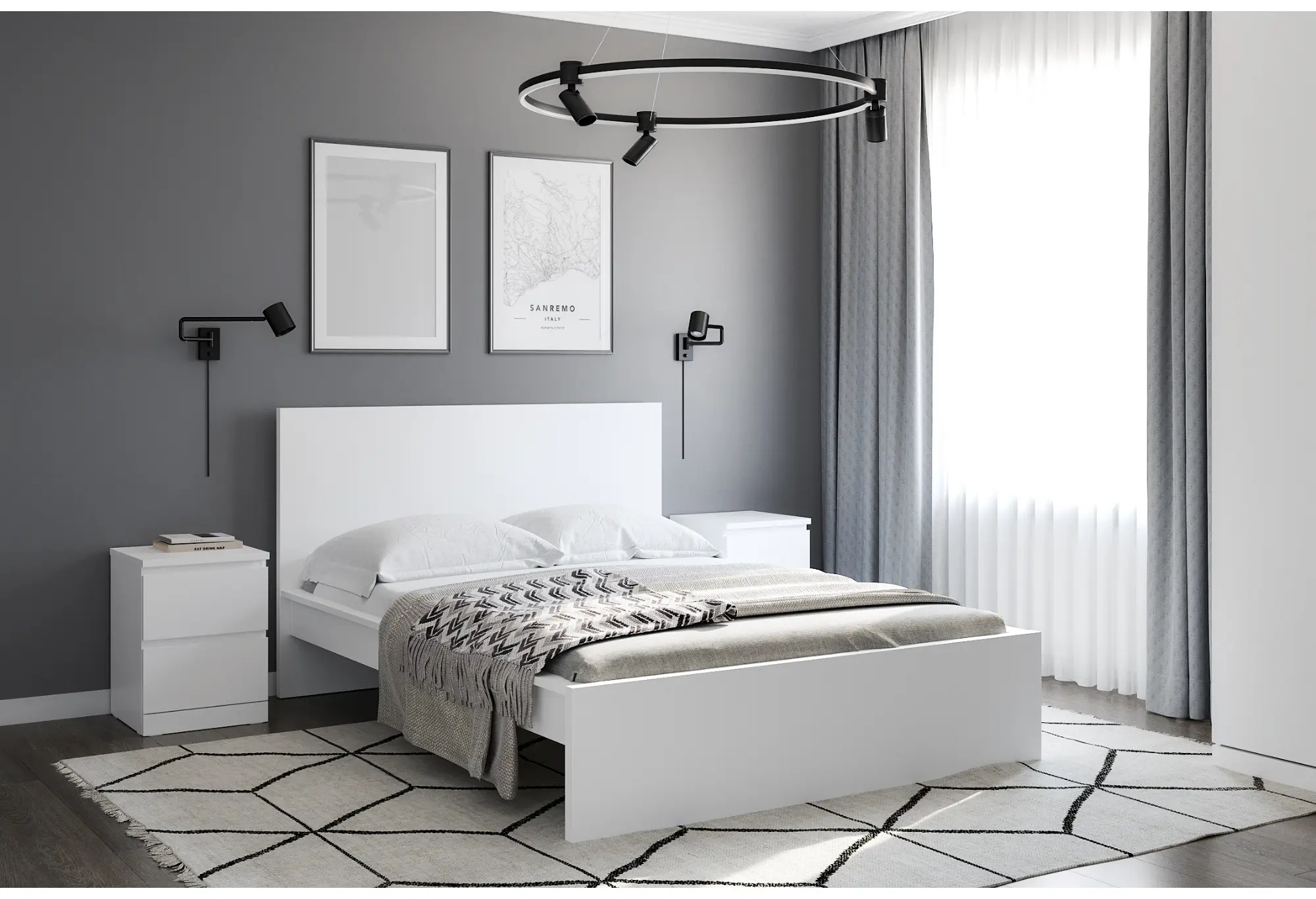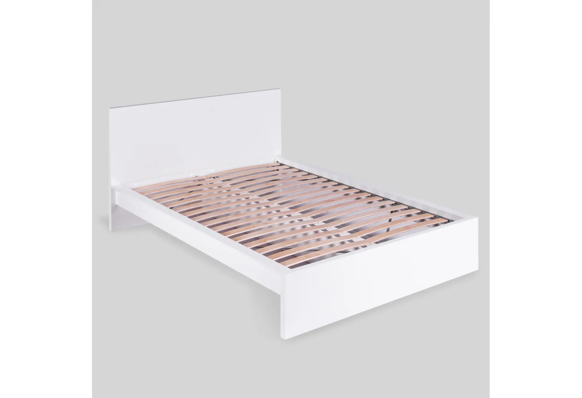 Кровать «Варма Сэнг 140» рассчитана под спальное место 1400×2000 мм и подойдет для стандартного двуспального матраса. Основание выполнено в виде прочного каркаса с деревянными ламелями, равномерно распределяющими нагрузку и поддерживающими матрас по всей площади. Корпус из ДСП и тамбурата образует жесткую конструкцию с прямыми линиями и лаконичным дизайном, а высокая ровная спинка обеспечивает удобную опору в изголовье. Белый цвет делает кровать универсальной для светлых и современных интерьеров, визуально не утяжеляя пространство. Боковые панели и изножье закрывают торцы матраса и формируют аккуратный, законченный вид спального места.