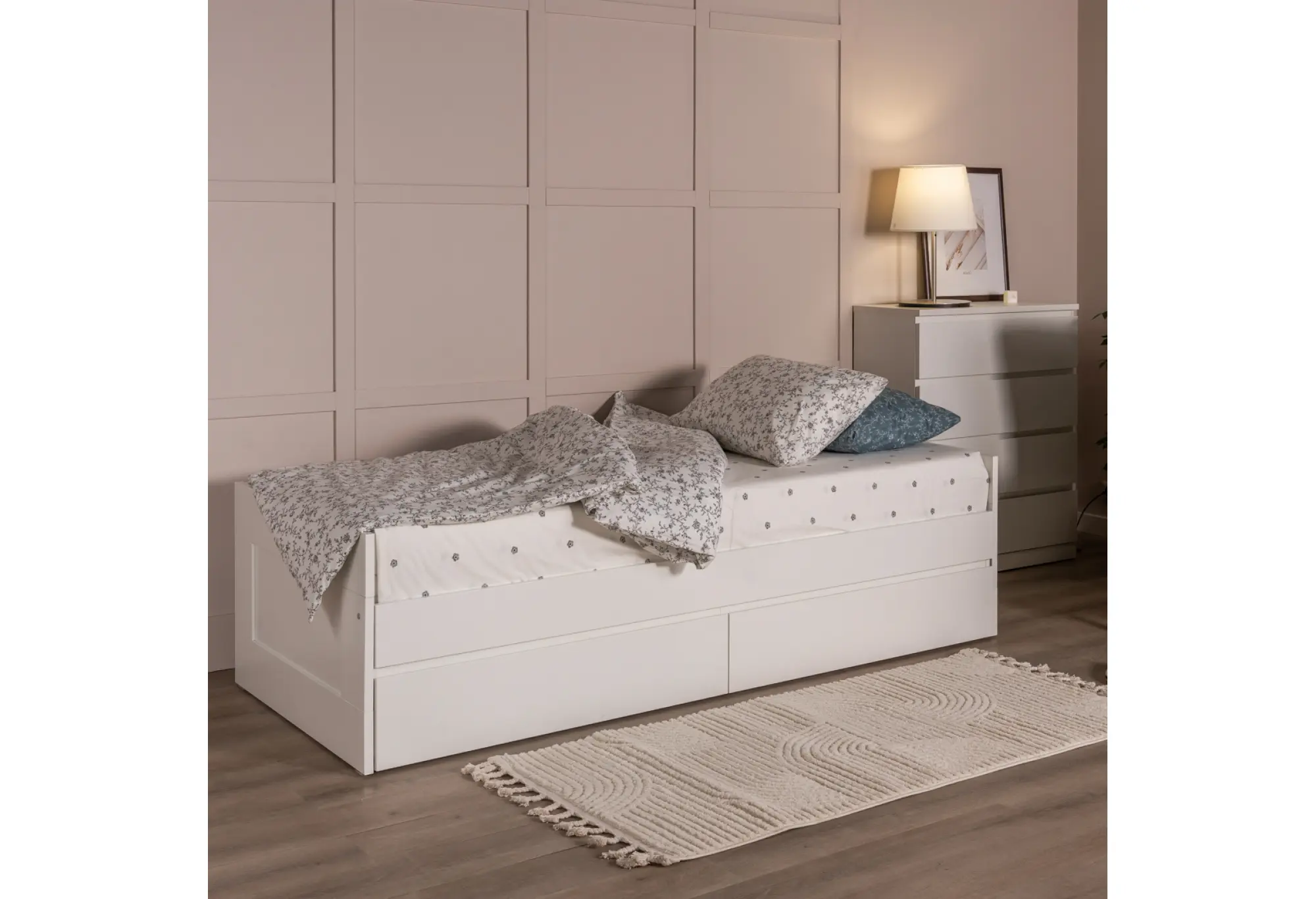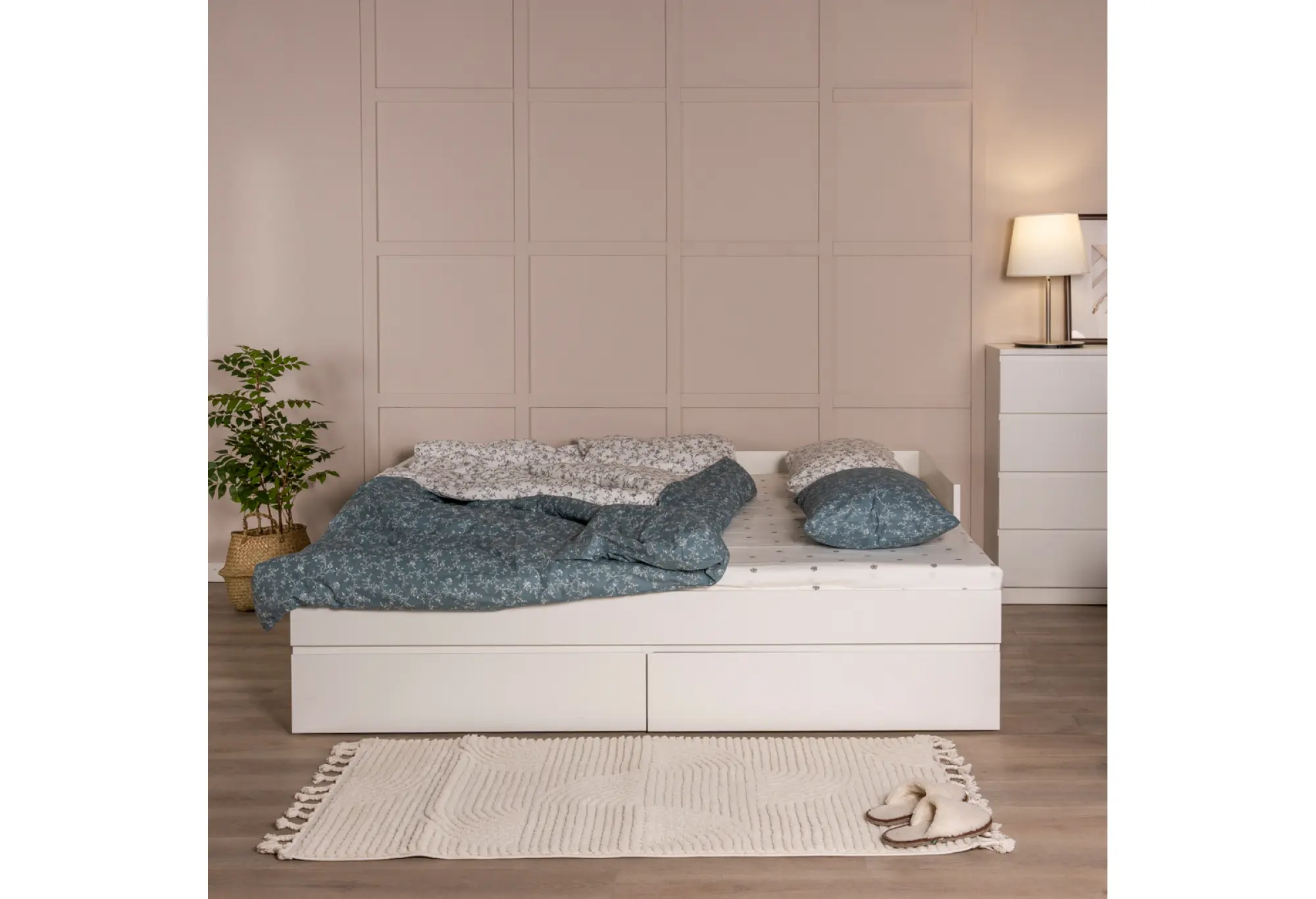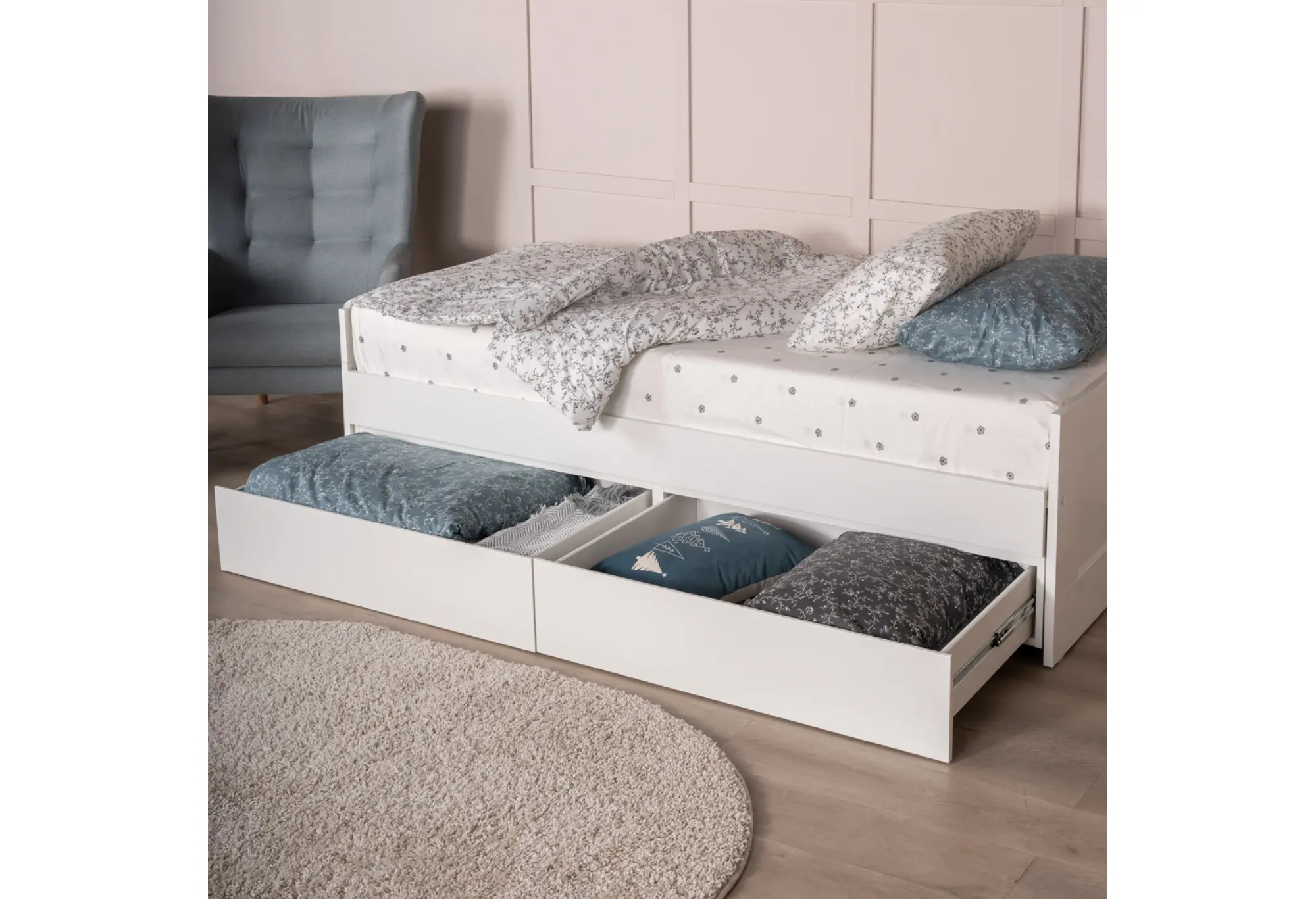 Кровать двухспальная СИРИУС раздвижная с ящиками для хранения, с ортопедическим основанием 90/180х200 белого цвета