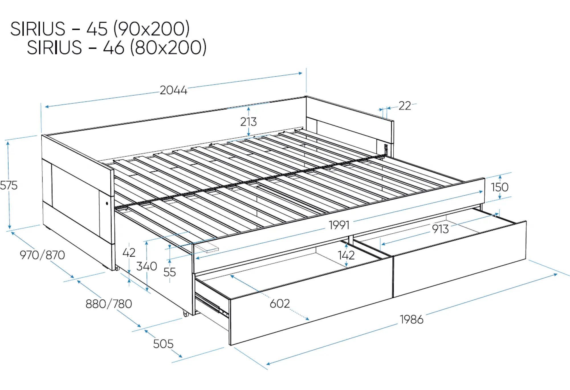 Кровать СИРИУС разработана для максимальной функциональности и комфорта. Это стильное и практичное решение для спальни, сочетающее в себе современный дизайн и надежность материалов. Белый цвет добавляет свежести и легкости интерьеру, вписываясь в любой стиль. Раздвижной механизм позволяет изменять ширину спального места, адаптируясь под различные потребности – от односпального до двуспального формата. Два вместительных выдвижных ящика предоставляют дополнительное место для хранения вещей, что делает эту кровать идеальным решением для экономии пространства. Ортопедическое основание способствует правильной поддержке спины во время сна, обеспечивая здоровый отдых.