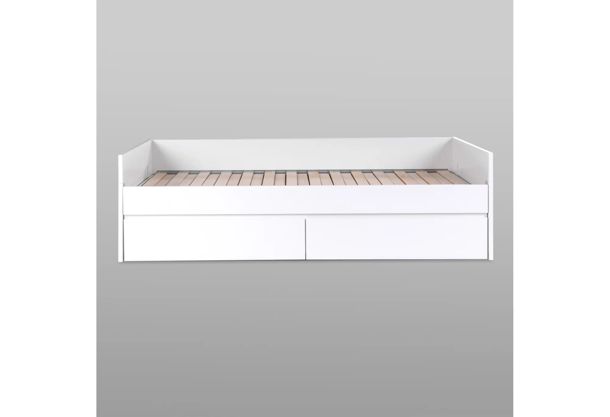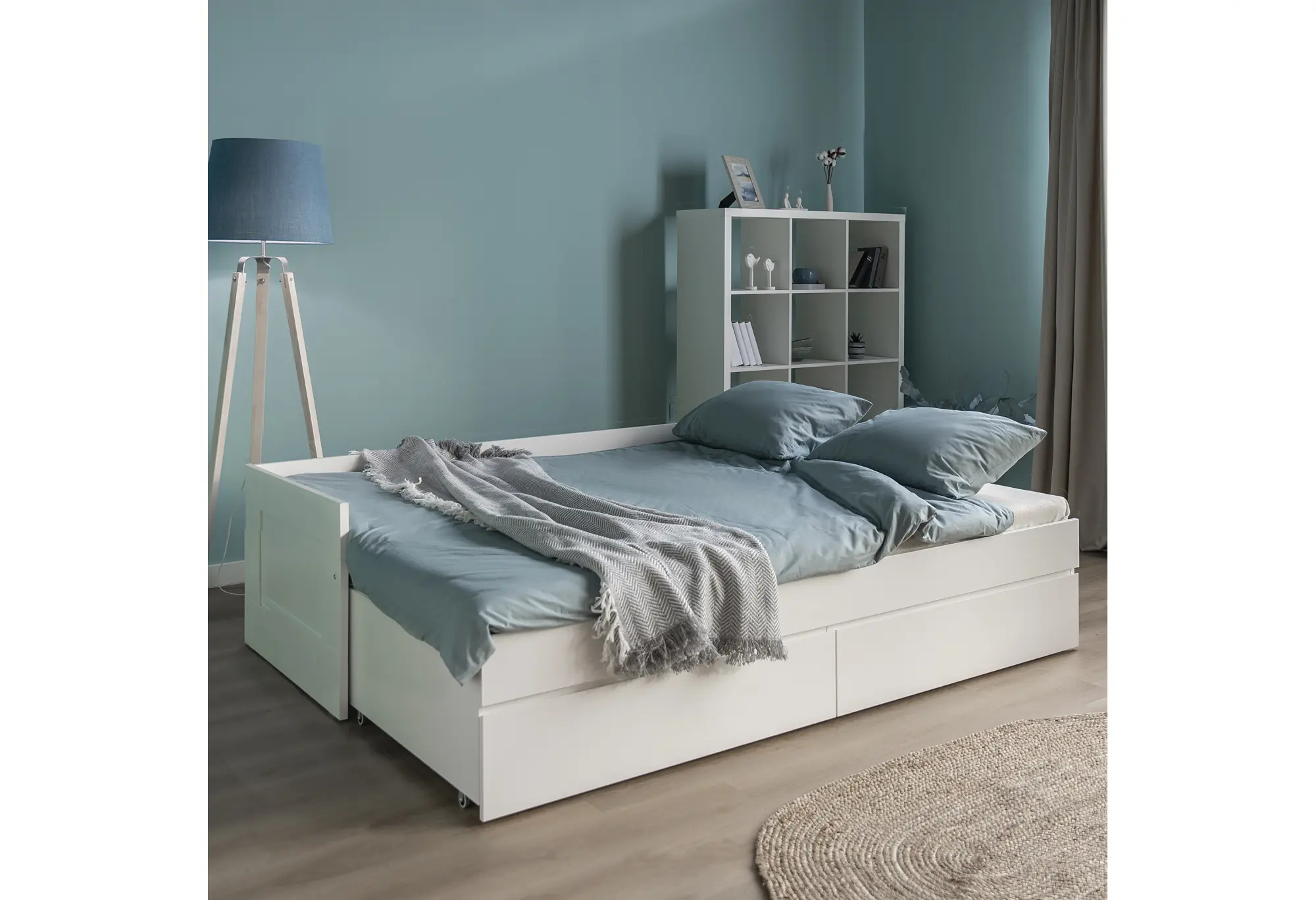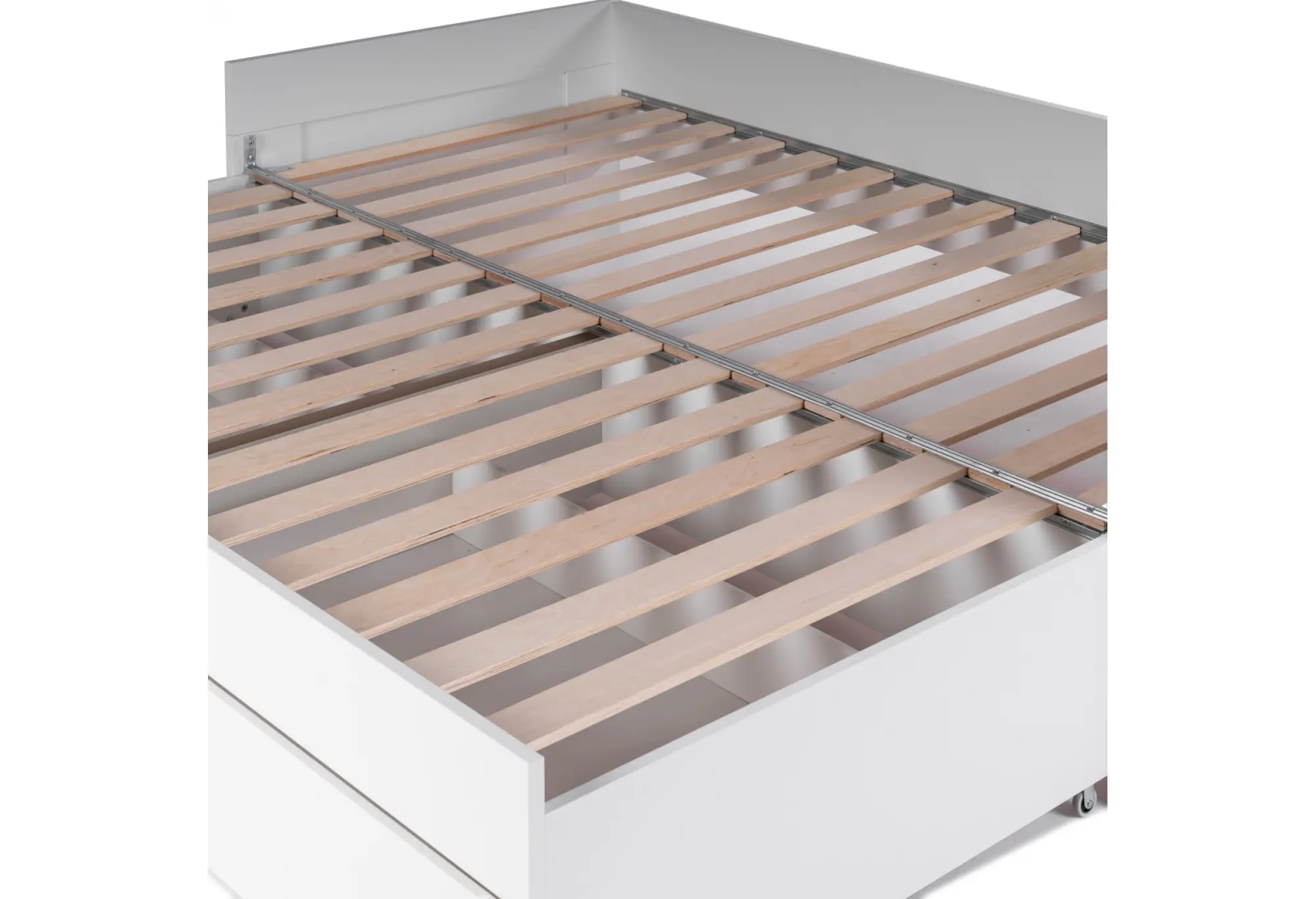 Кровать двуспальная СИРИУС раздвижная шириной 80(160) см, с ортопедическим основанием Лурой и двумя выдвижными ящиками белого цвета