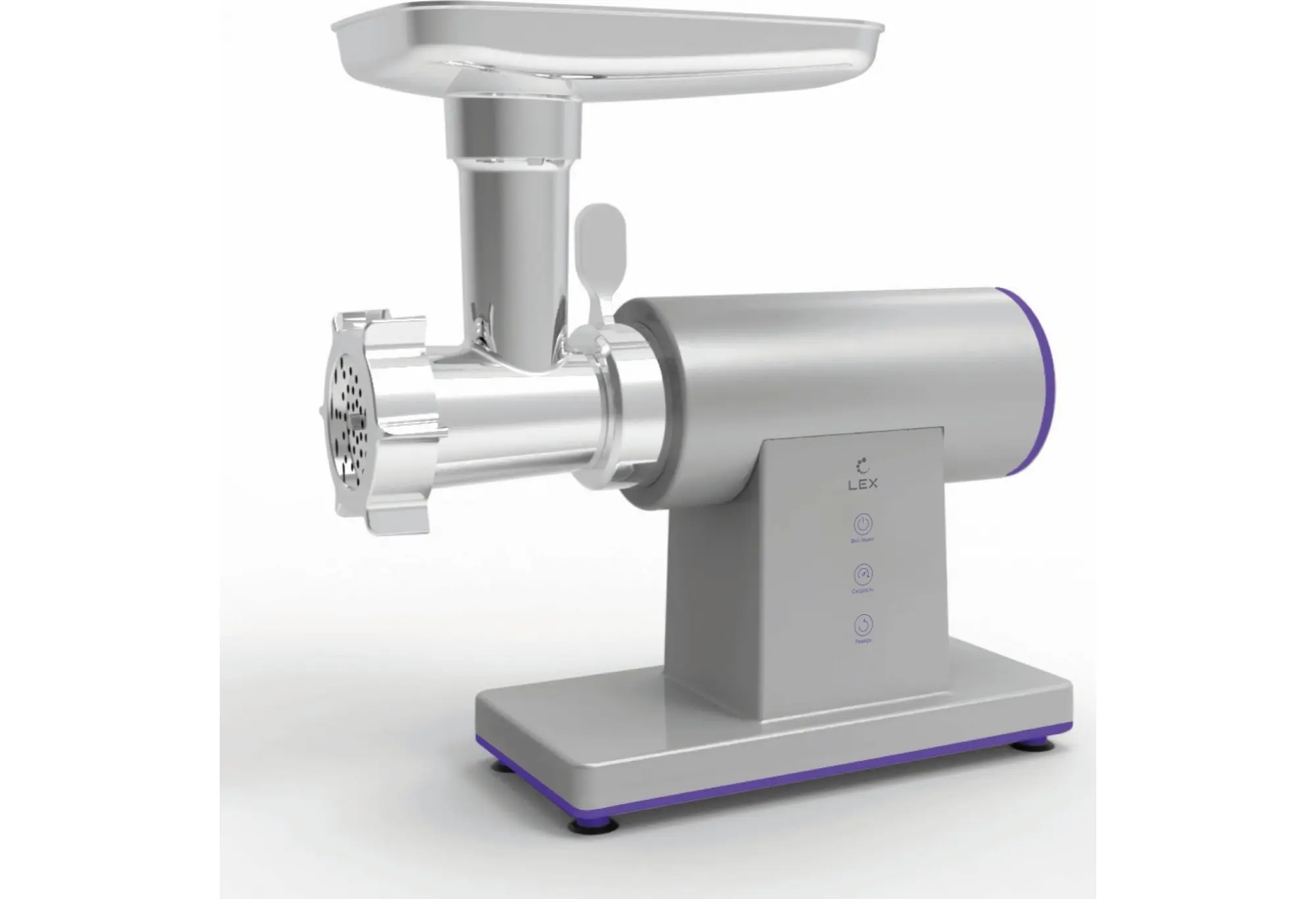 ПроизводительностьМясорубка LEX LX 4002/LX 4003 оснащена надёжным медным двигателем номинальной мощностью 2000 Вт при пиковой нагрузке. Двигатель обеспечивает устойчивую работу при переработке различных видов продуктов, включая мясо с прожилками и овощи. Производительность достигает 2,5 кг в минуту — этого достаточно, чтобы быстро приготовить фарш для котлет, фрикаделек, пельменей или начинок для домашней выпечки. Увеличенный крутящий момент мотора позволяет эффективно работать даже при значительных объёмах без снижения скорости вращения шнека.Функциональные возможностиВ комплектацию входят три стальных диска для помола – мелкий, средний и крупный. Это даёт возможность получить фарш нужной консистенции для любых кулинарных задач: от мягкого и однородного до более структурного. Также в комплект входят насадки для приготовления домашних колбас и традиционных восточных блюд – кеббе. Все элементы выполнены из прочного металла, не подверженного коррозии и легко очищаются после использования. Функция реверса (обратного хода) помогает при необходимости освободить шнек от застрявших волокон, что значительно продлевает срок службы устройства и делает эксплуатацию безопасной и удобной.Безопасность и надёжностьПрибор оснащён системой защиты от перегрева: при превышении допустимой температуры двигатель автоматически выключается. Это особенно важно при длительной непрерывной работе. Прорезиненные ножки обеспечивают устойчивость корпуса, исключая вибрацию и смещение во время работы. Надёжная электрическая изоляция и соблюдение европейских стандартов безопасности делают мясорубку безопасной для ежедневного использования в домашних условиях.Эргономика и компактностьКорпус мясорубки эргономичен и не занимает много места на кухне. Габариты устройства составляют 355 × 135 × 355 мм, что позволяет хранить его даже в небольших шкафах или на открытых полках. Длина кабеля 100 см даёт свободу в выборе места установки. Уровень шума не превышает 75 дБ — прибор работает достаточно тихо для бытового использования. Благодаря продуманной конструкции сборка и разборка выполняются быстро, а комплектующие легко моются вручную.Цвета: серебристо-фиолетовый/жемчужно-белый с коралловыми акцентами.