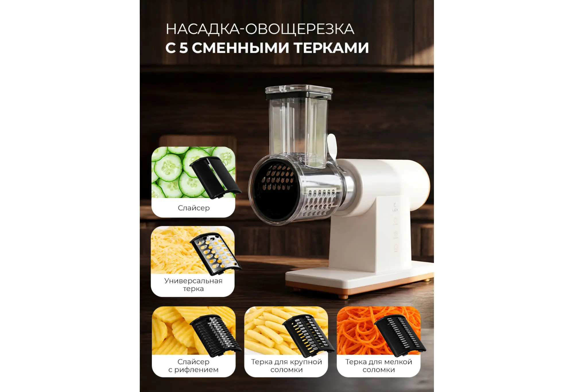 - Овощерезка с несколькими тёрками и слайсерами в комплекте