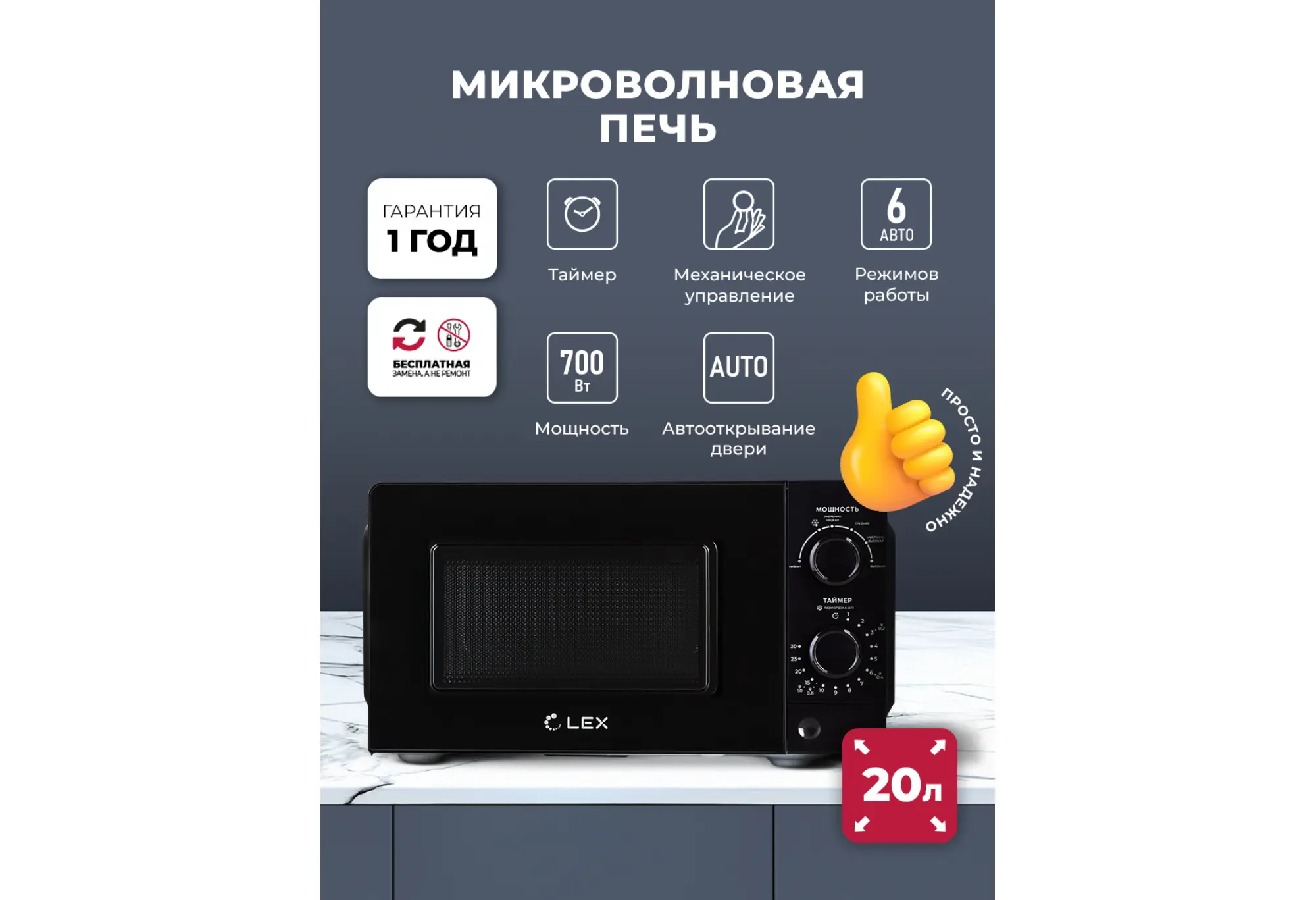 Лаконичные формы, черный цвет, простые эксплуатация и уход.Она легко найдет свое место на любой кухне.Демократичная микроволновая печь FSMO 20.01N BL станет идеальным выбором для семьи из 2-3 человек. Благодаря мощности микроволн 700 Вт, потребляемой мощности 1100 Вт устройство подходит не только для того, чтобы разогреть блюдо или разморозить продукты. Модель с 6 уровнями мощности вполне справится с приготовлением повседневных рецептов. Режим разморозки предусмотрен отдельно.Стеклянное вращающееся блюдо диаметром 24,5 см обеспечивает максимально равномерное приготовление блюд.Микроволновая печь оснащена интуитивно понятным механическим управлением и комфортным таймером до 30 минут.Антипригарное покрытие внутри камеры упрощает уход за устройством.