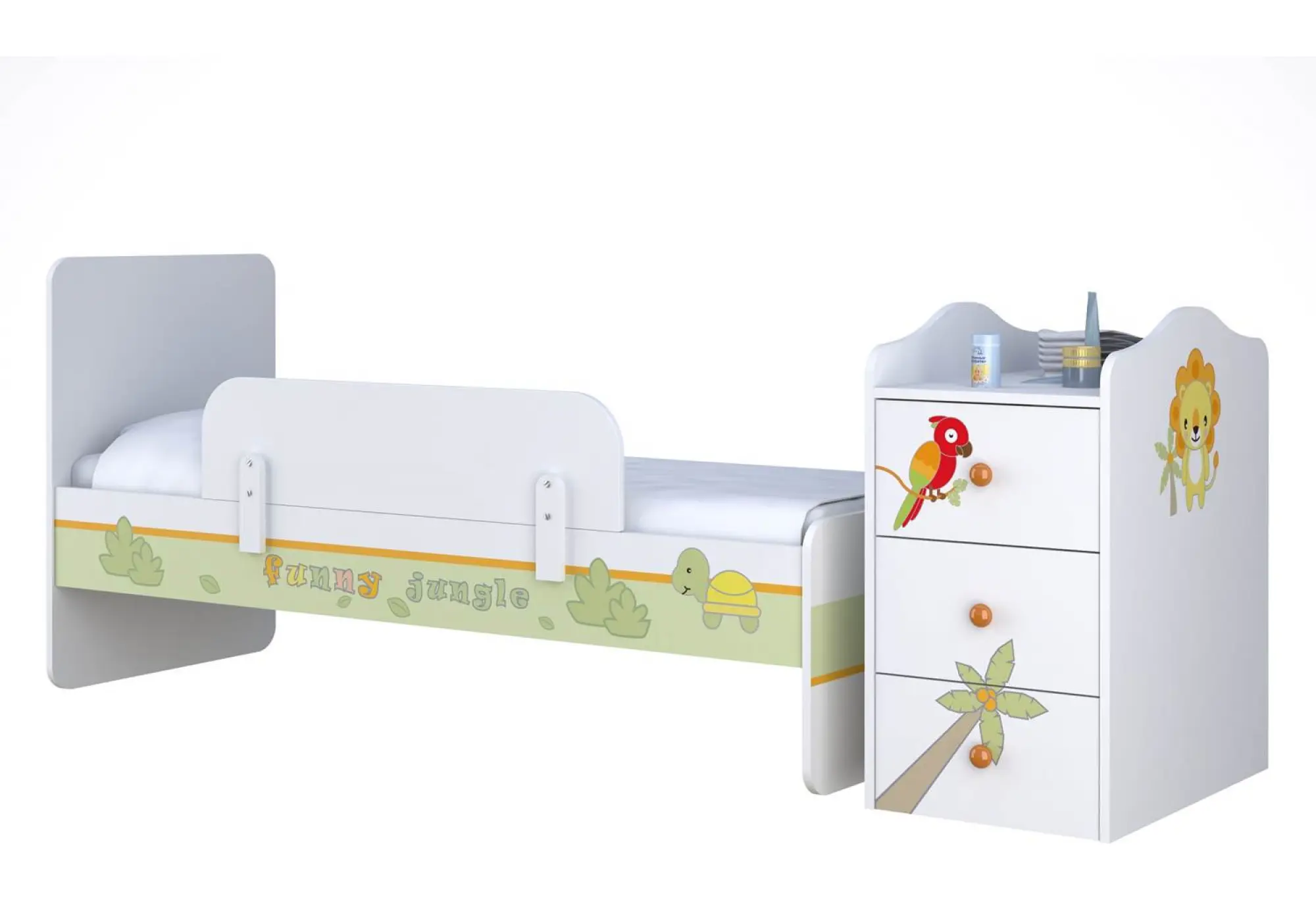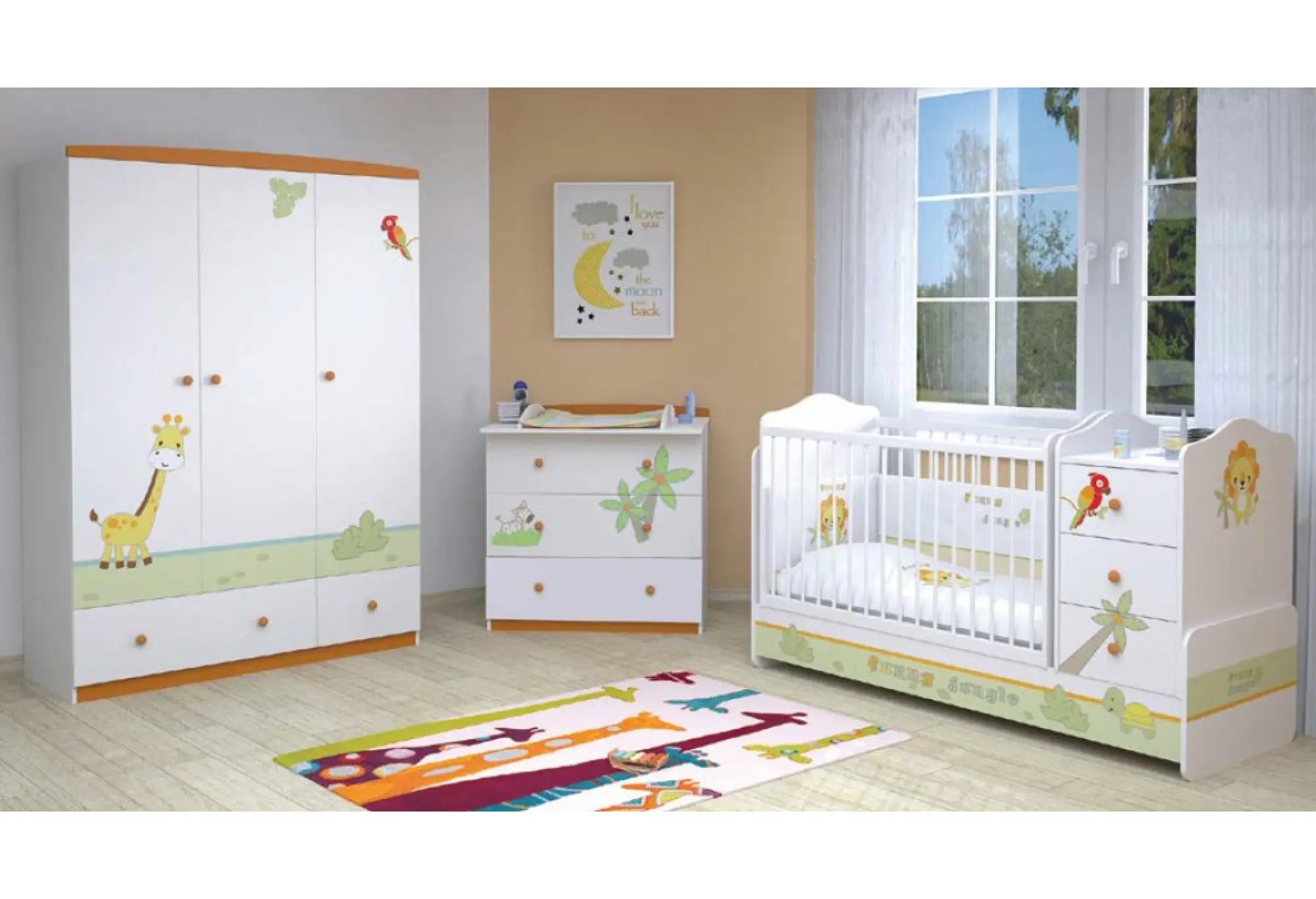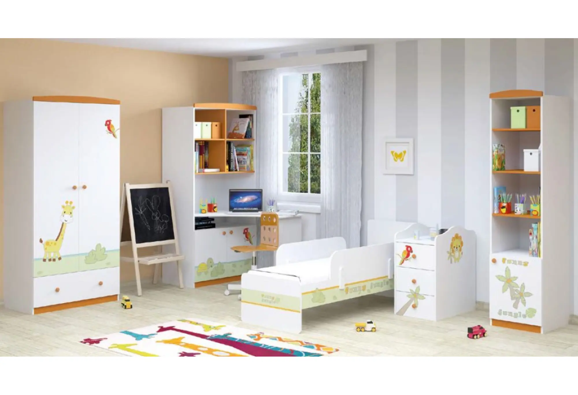 - белый-оранжевый — это коллекция Polini Basic Джунгли с ярким принтом на фасадах в виде львят
