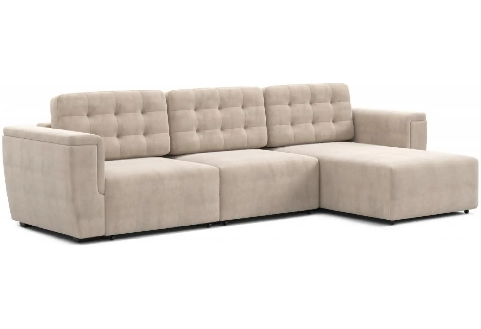 Модульный диван «Милан 4» СТАНДАРТ Вариант 4 создан для просторных гостиных, где важны комфорт и продуманный дизайн. Большая угловая форма позволяет удобно разместить семью и гостей, а мягкий велюр в оттенке «Бруно бежевый» визуально облегчает объем и делает диван универсальным для современных и классических интерьеров.