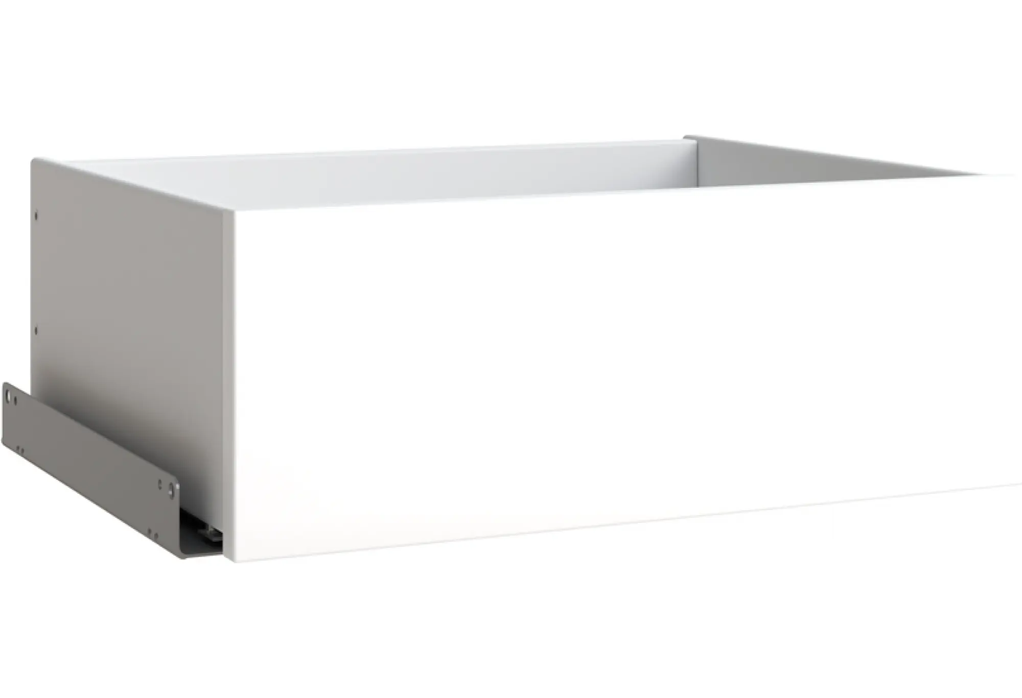 Ящик МАКС выдвижной, 500х360х159, цвет Белый. Дополнительный ящик в однодверный шкаф. Изготовлен из ДСП толщиной 16, 12, 10 мм. Фурнитура для установки ящика в шкаф в комплекте. Гарантийный срок для жилых помещений 24 месяца, для общественных помещений - 18 месяцев.