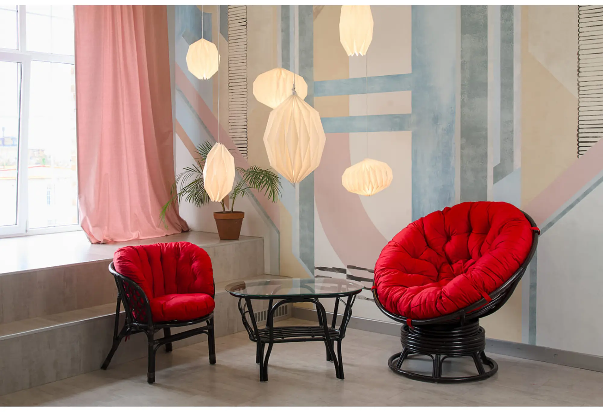 — Мягкие и объемные красные подушки создают ощущение домашнего уюта и обеспечивают максимальный комфорт при отдыхе. Яркий оттенок добавляет свежести и оживляет пространство.