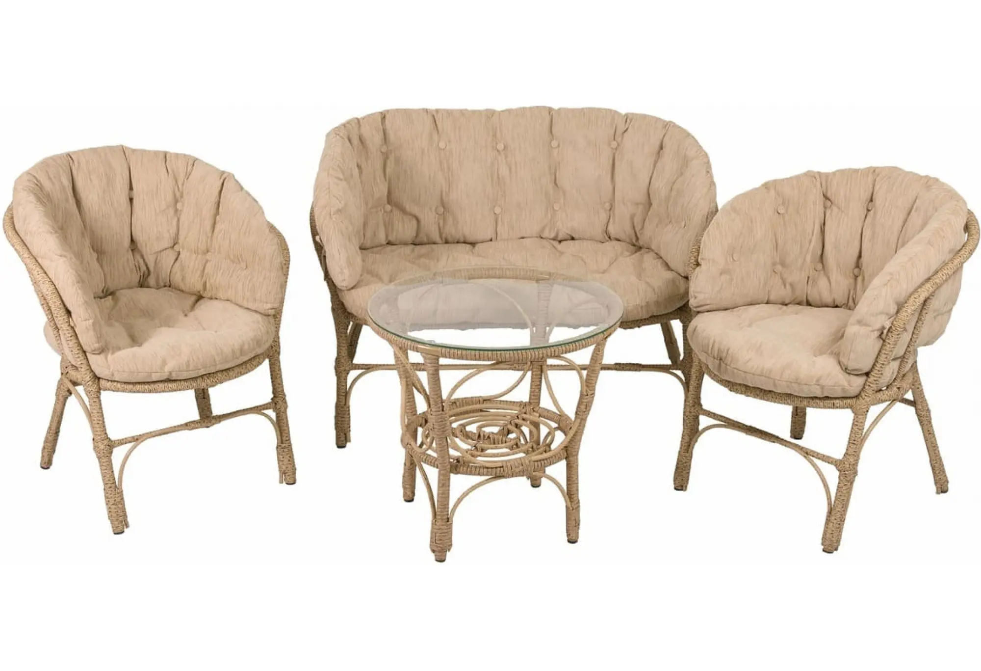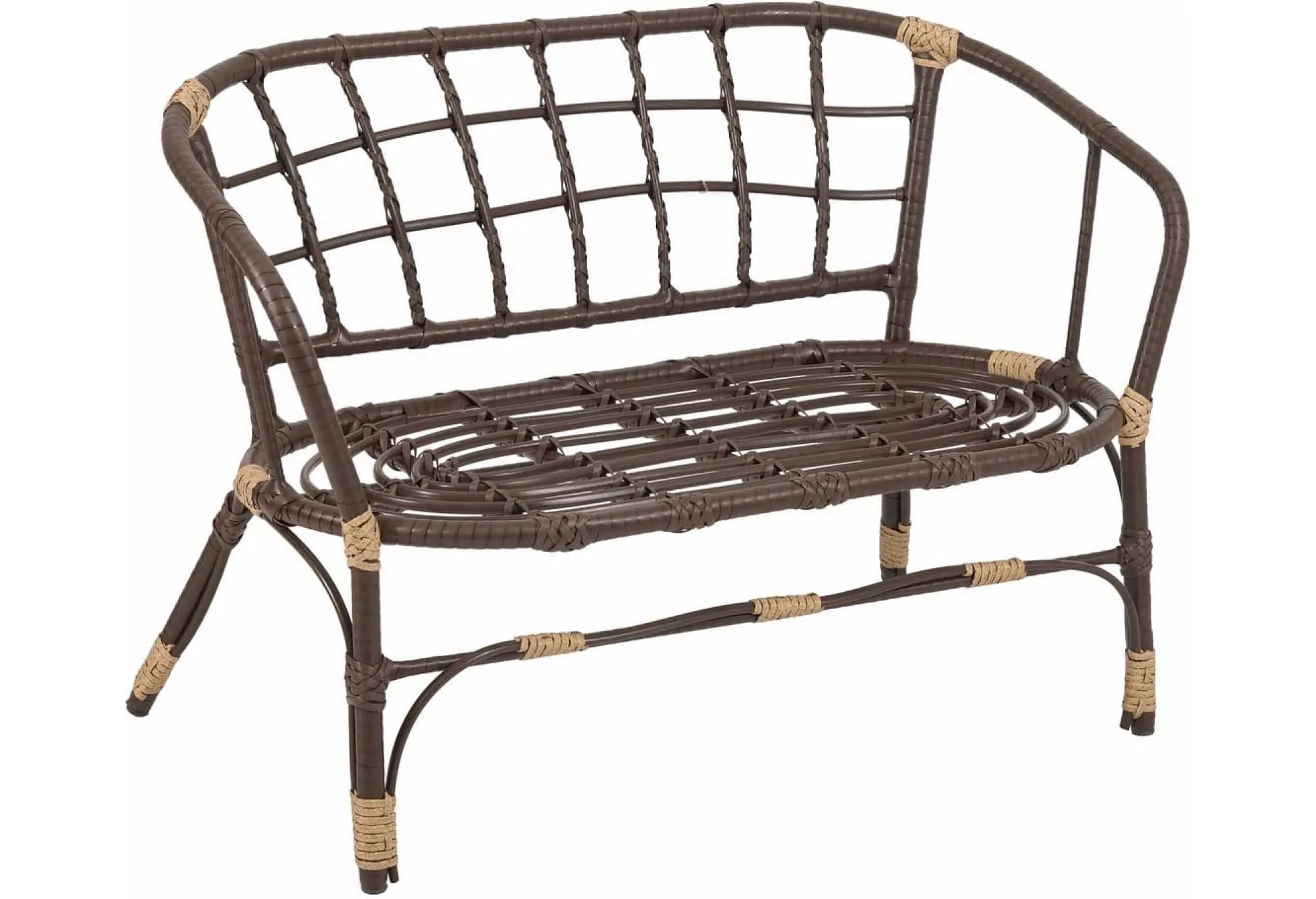 Каркас дивана выполнен из прочной стали, покрытой защитным полимерным слоем, гарантирующим длительный срок службы. Оригинальная плетёная отделка выполнена из экологически чистого материала — искусственного ротанга, устойчивого к любым погодным условиям, включая влагу, ультрафиолетовые лучи солнца и резкие изменения температуры. Цвета на выбор: мёд, шоколад.
