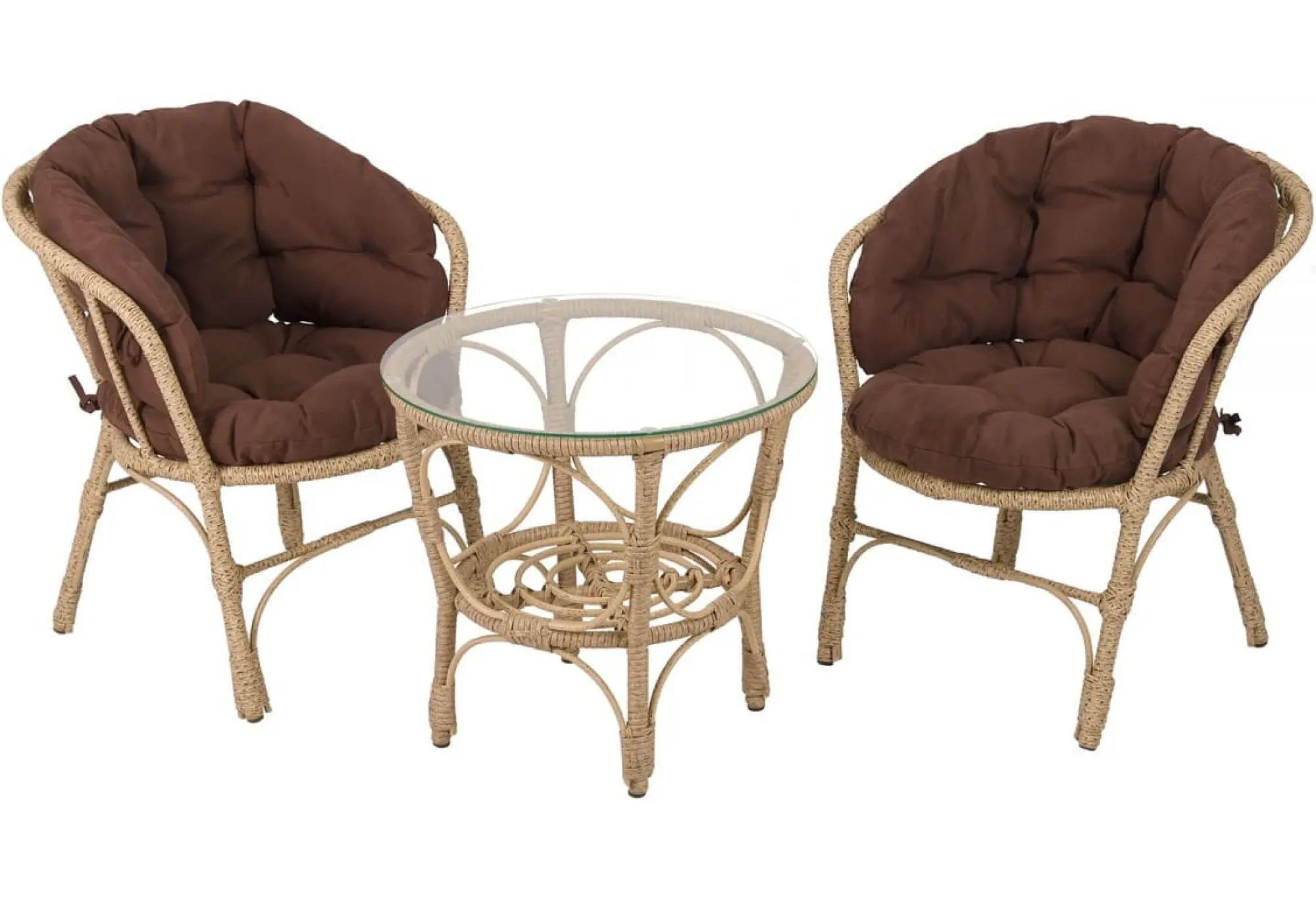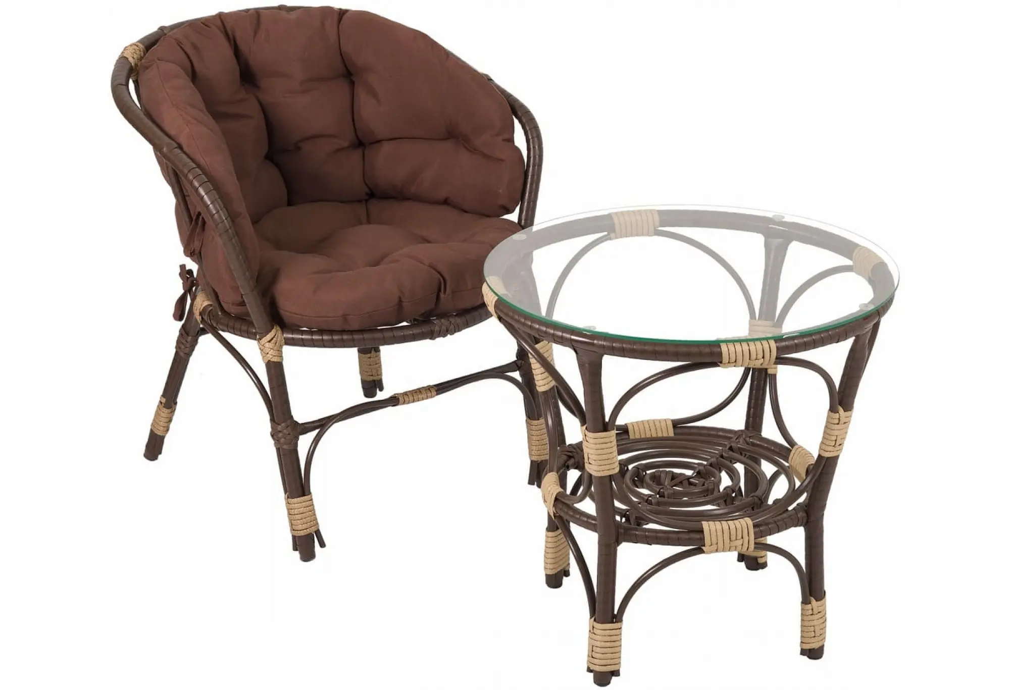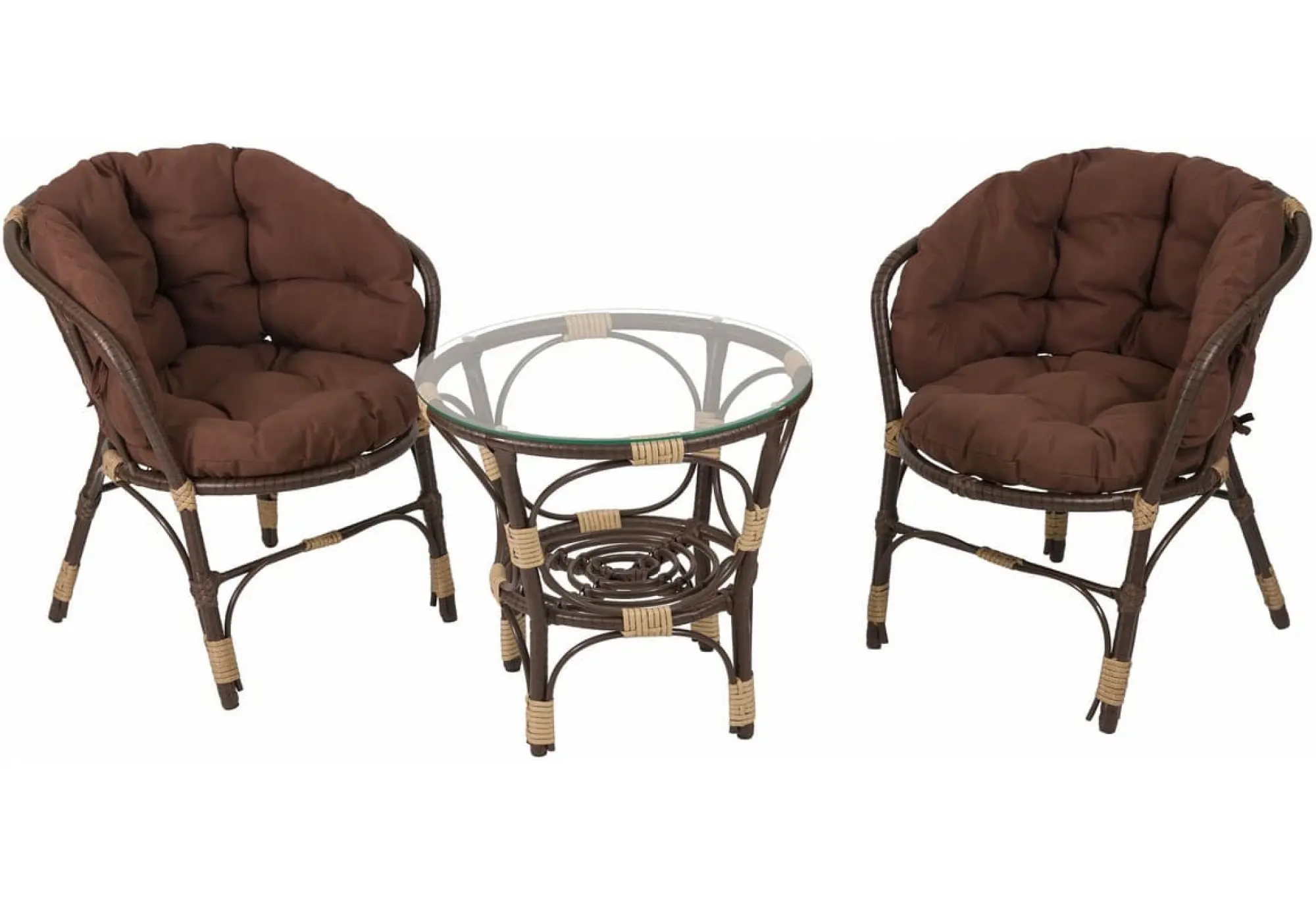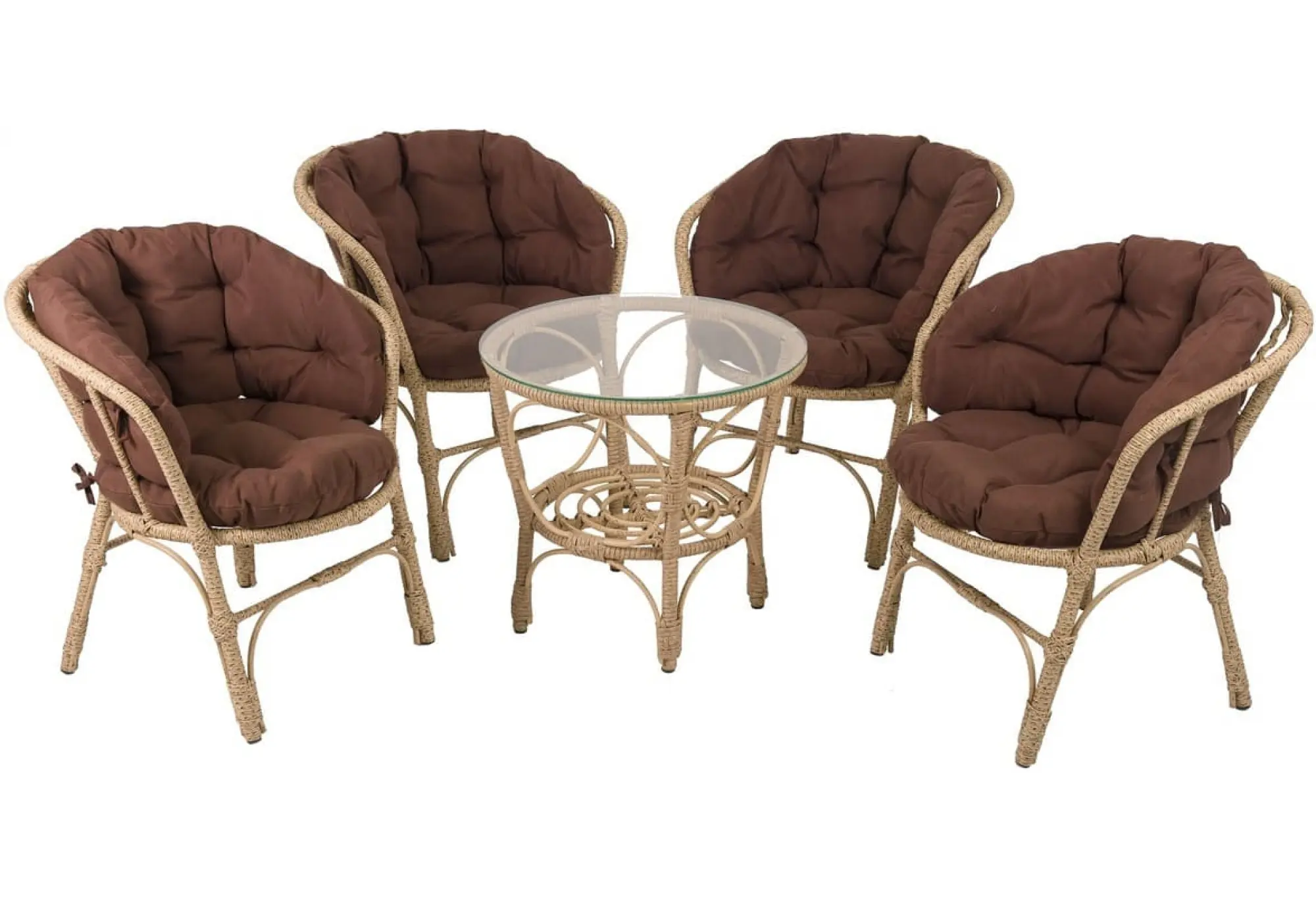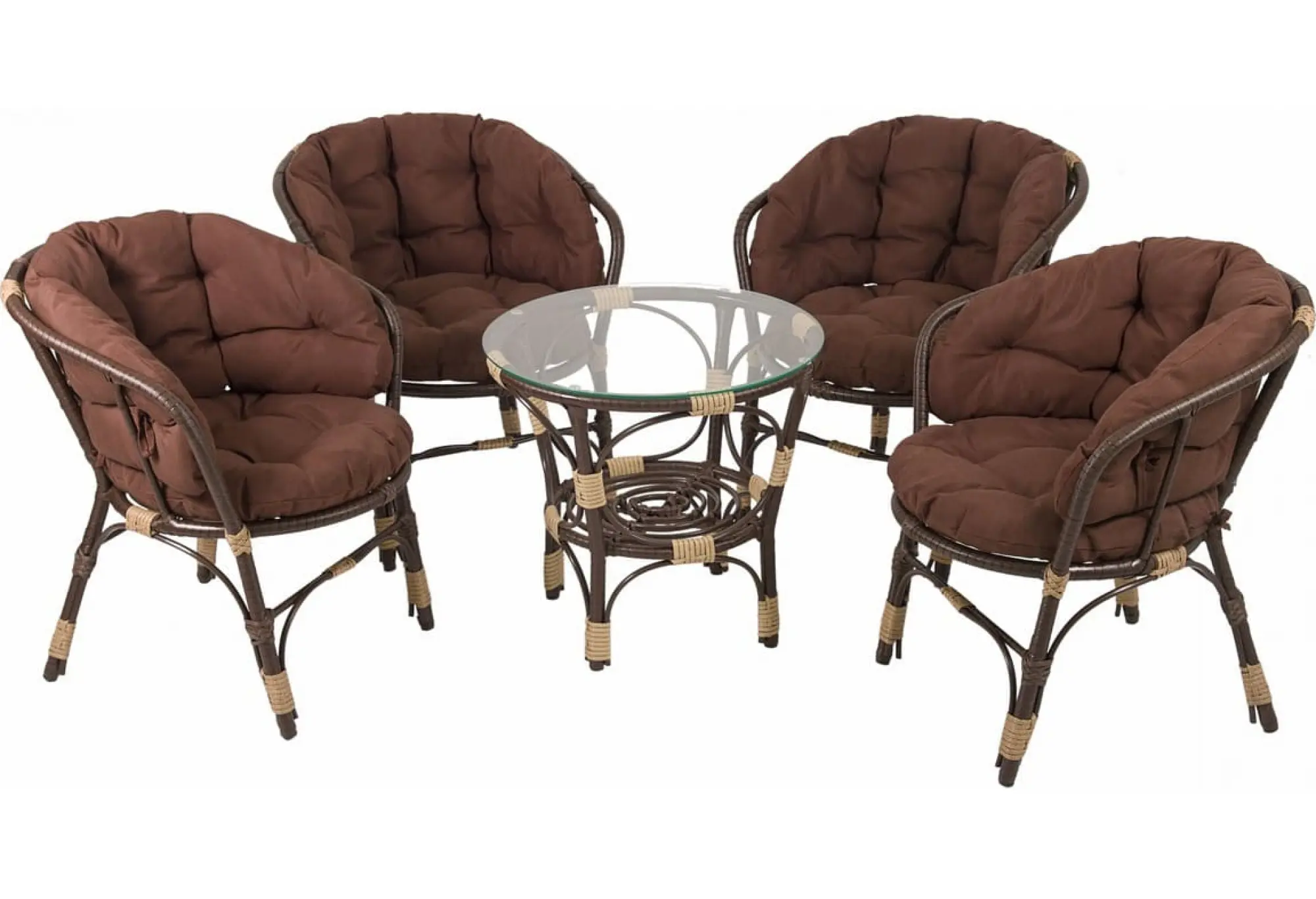 Комплект мебели из искусственного ротанга с коричневыми подушками