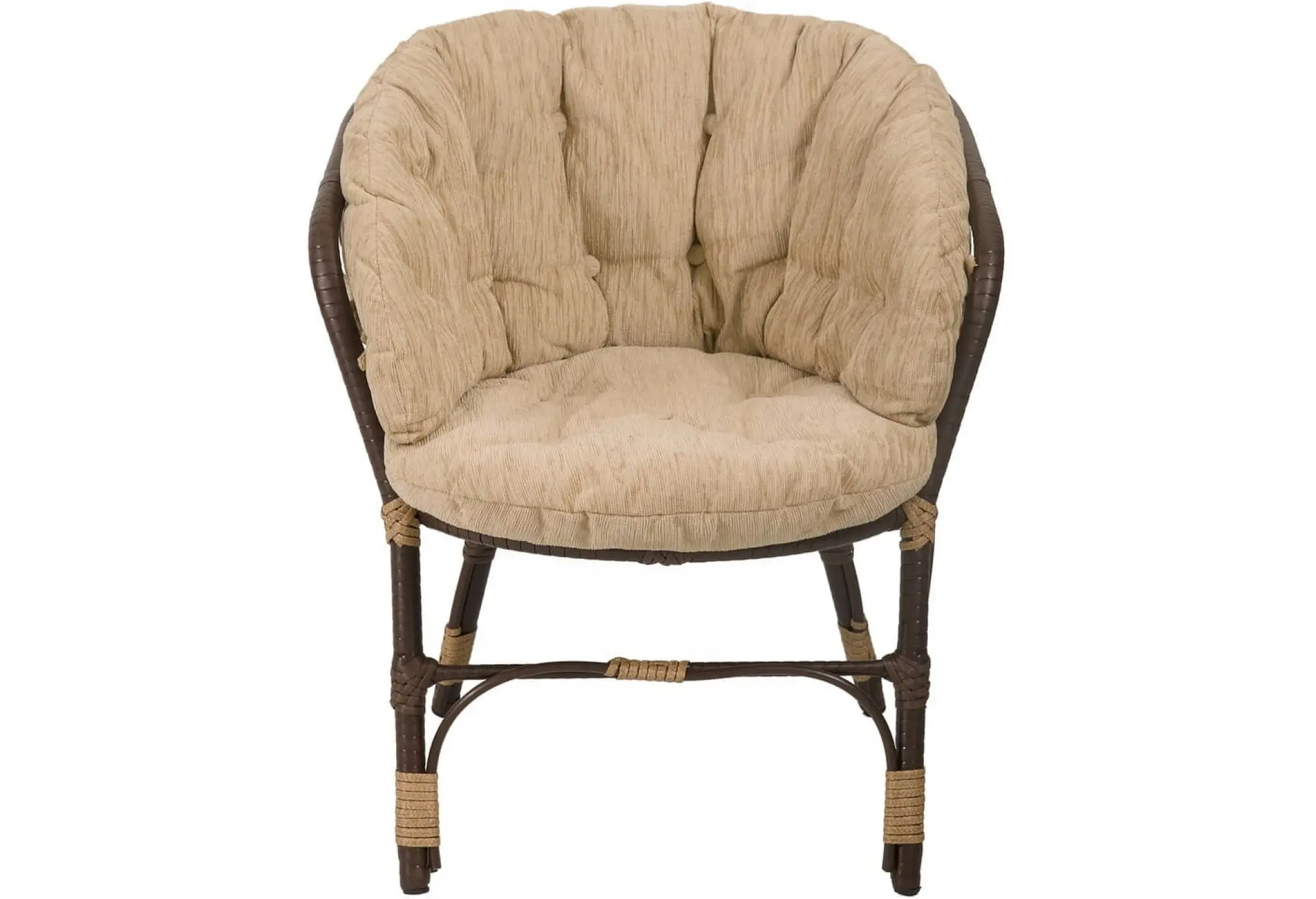 Цвета плетения — мед, какао, шоколад — позволяют гармонично вписать комплект как в светлые, так и в более насыщенные по тону интерьеры террас и садовых зон. Набор хорошо смотрится как самостоятельный элемент оформления и легко сочетается с дополнительными аксессуарами - пледами, фонарями, текстилем.