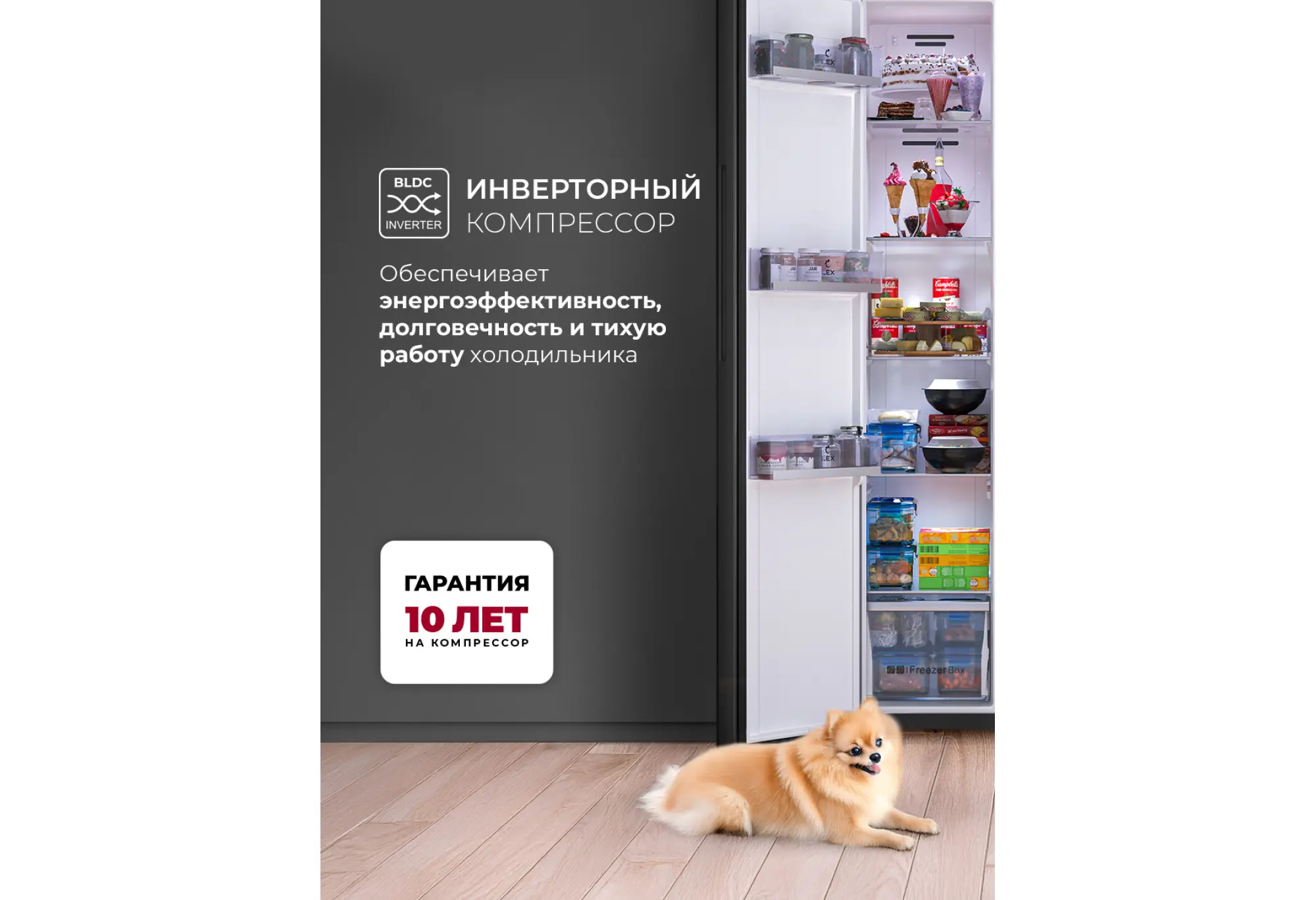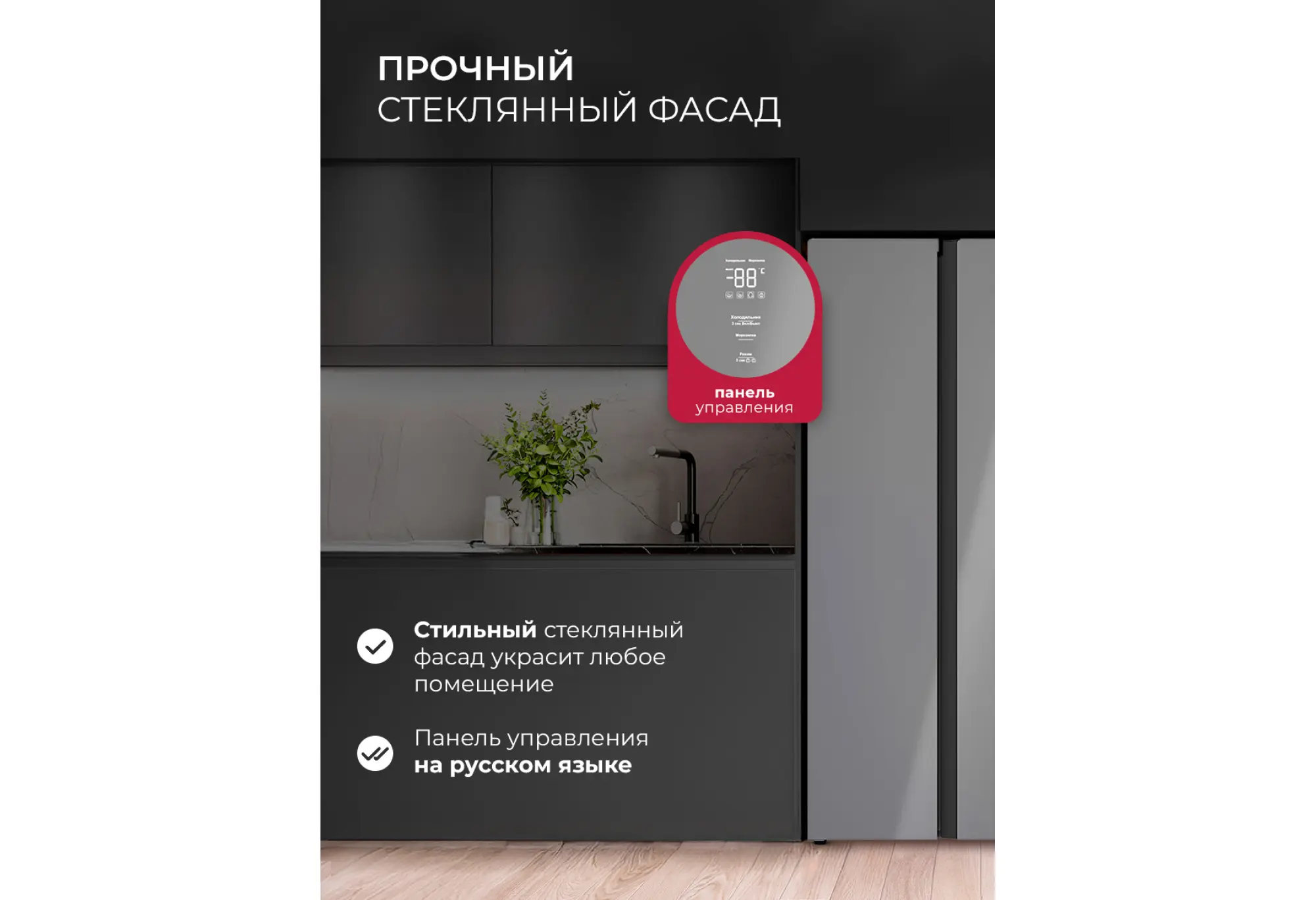 Такой холодильник подойдёт тем, кто хочет организовать хранение большого запаса продуктов в удобном формате и при этом сохранить современный внешний вид кухни. Модель сочетает вместительность, продуманную внутреннюю компоновку и современную систему охлаждения.
