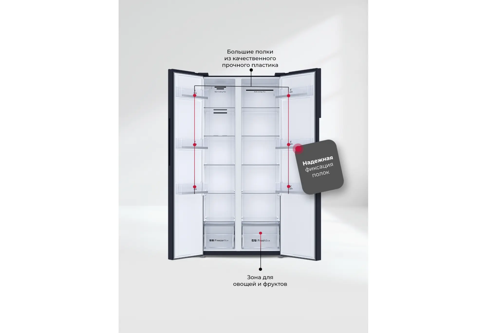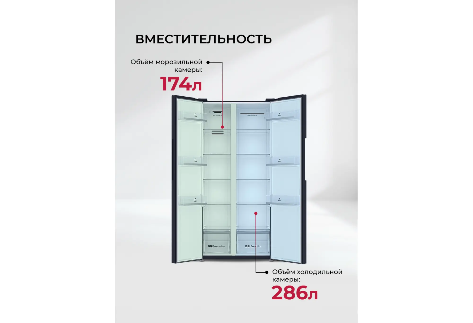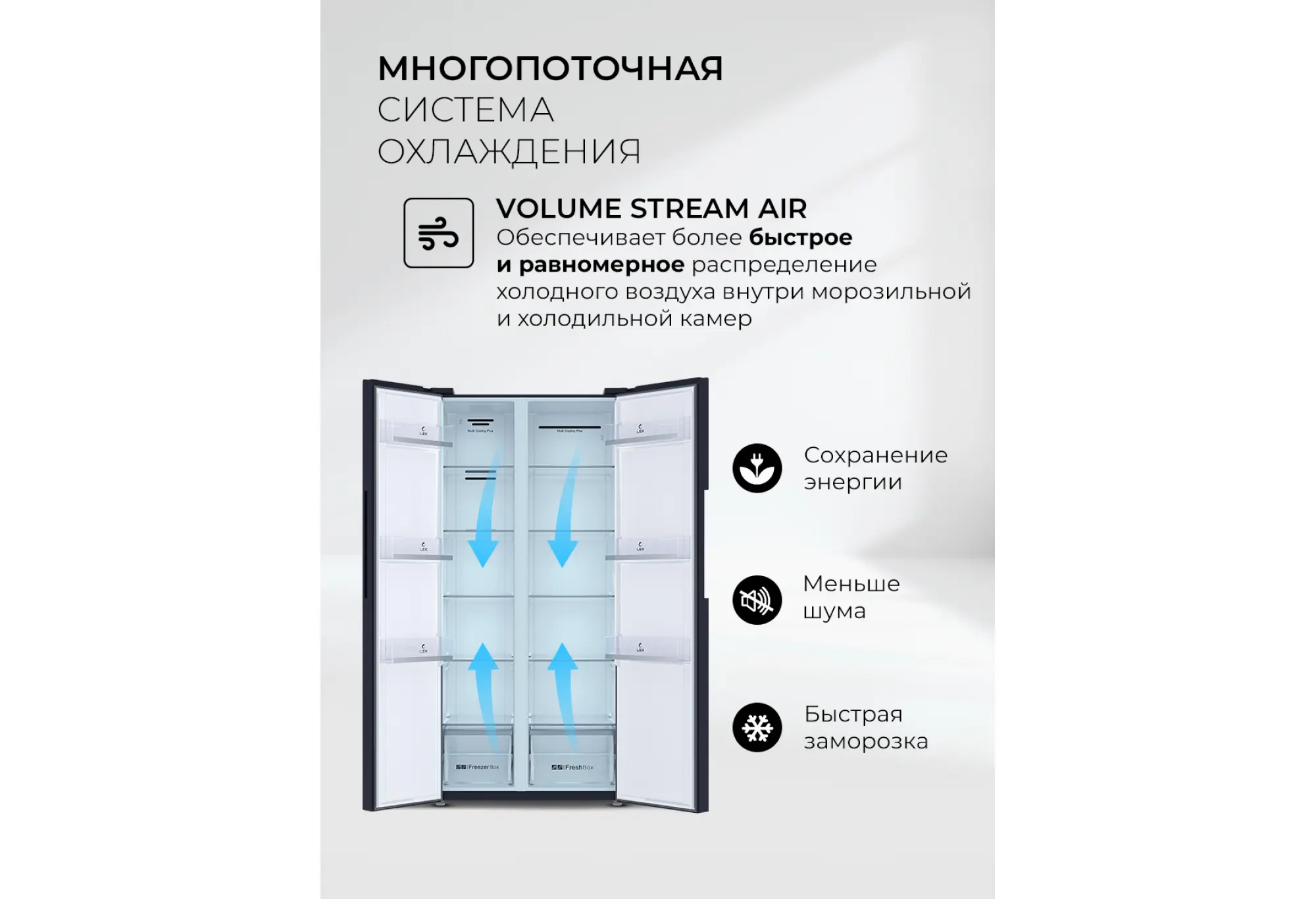 - Формат Side-by-Side с удобным доступом к холодильной и морозильной камерам