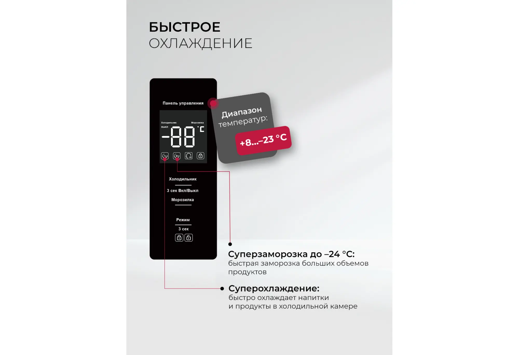 - Электронное управление с панелью на русском языке