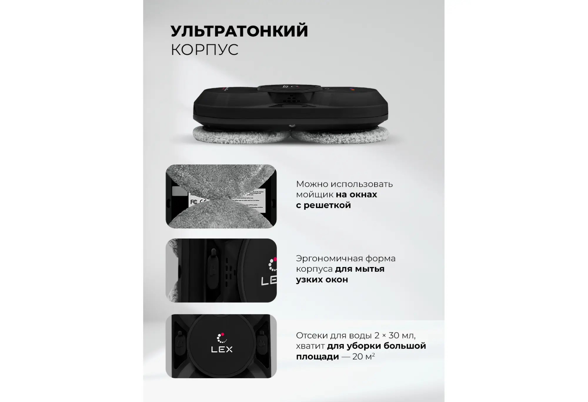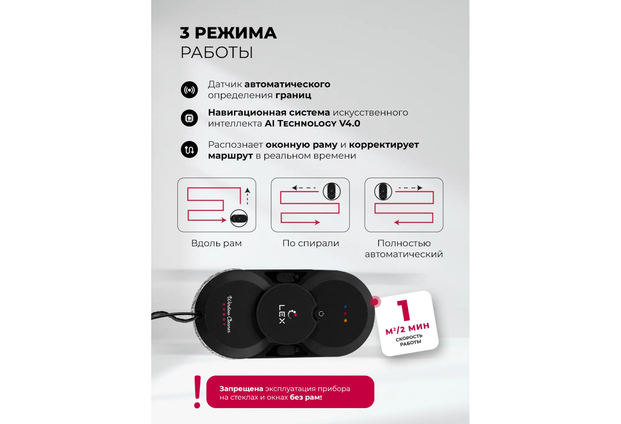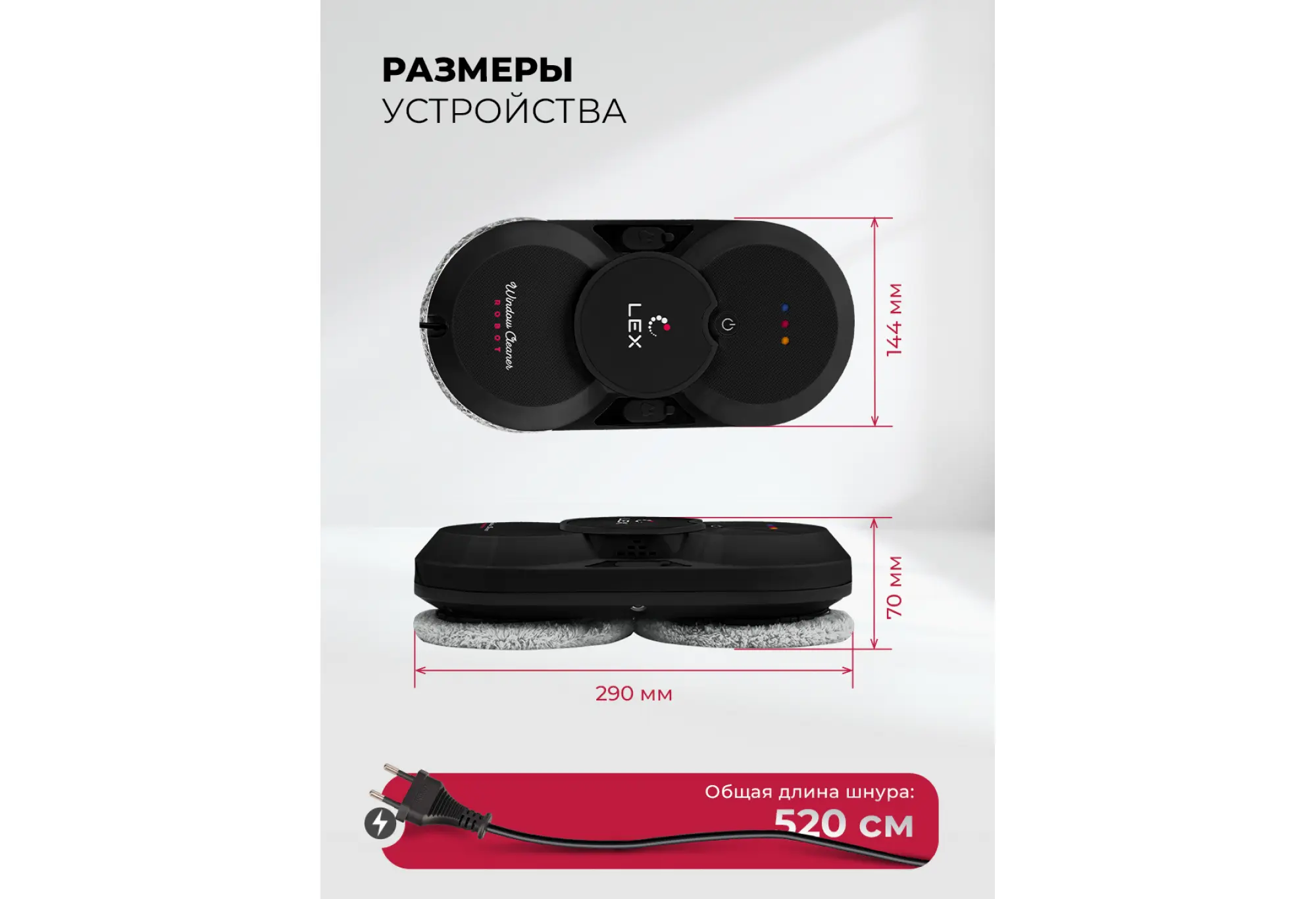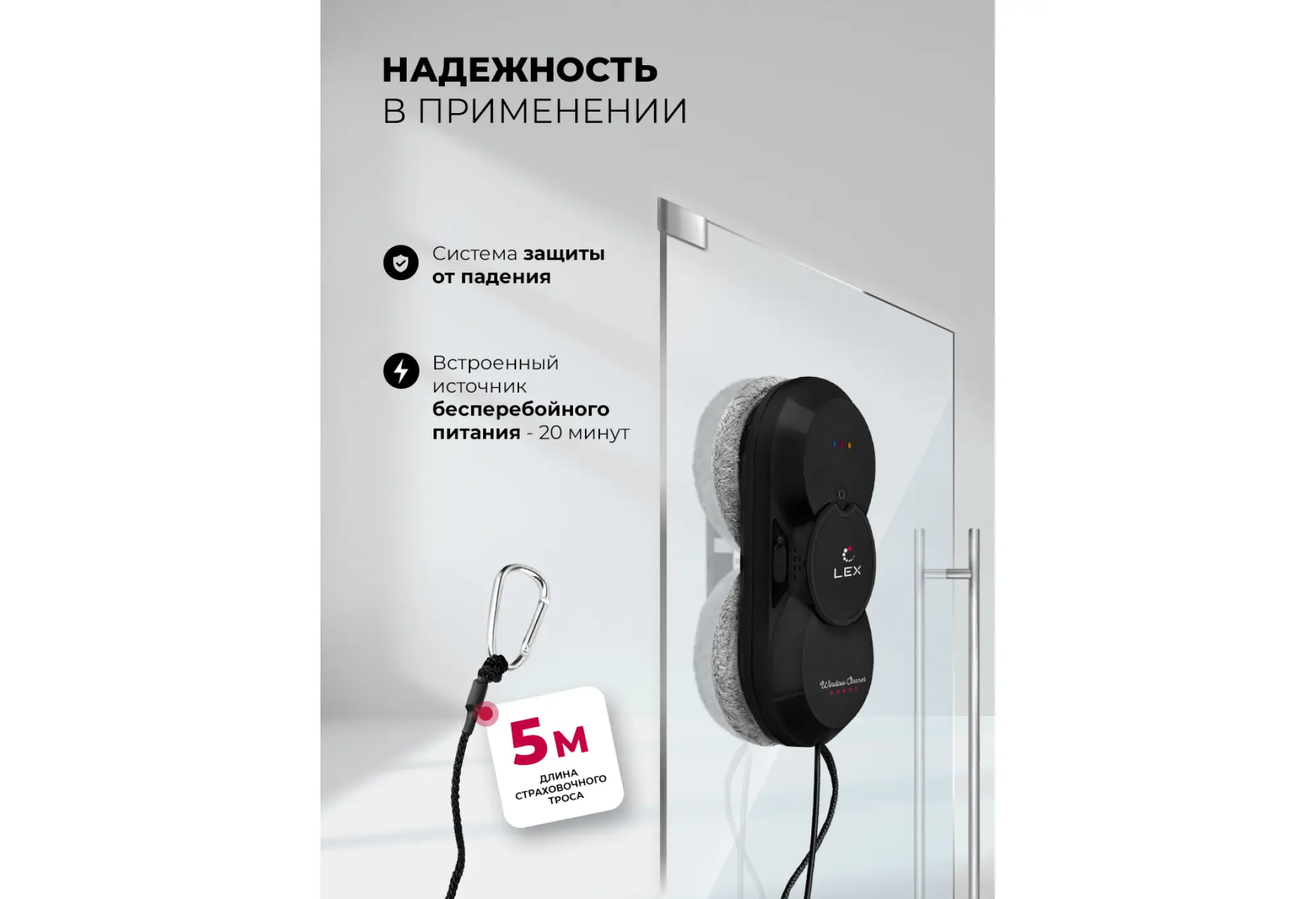 Робот-мойщик LXVCW 7090 до блеска очистит стекла и плитку, пока вы будете заниматься любимым делом или просто отдыхать. Модель автоматически определяет границы рабочей поверхности и рассчитывает траекторию движения. Для удобного и безопасного использования в комплект входят удлинитель сетевого кабеля и прочный страховочный трос. Устройство имеет несколько режимов работы и может выполнять сухую или влажную уборку. Для управления можно использовать пульт и приложение на смартфоне. Робот оснащен современным бесщеточным двигателем и резервным аккумулятором.