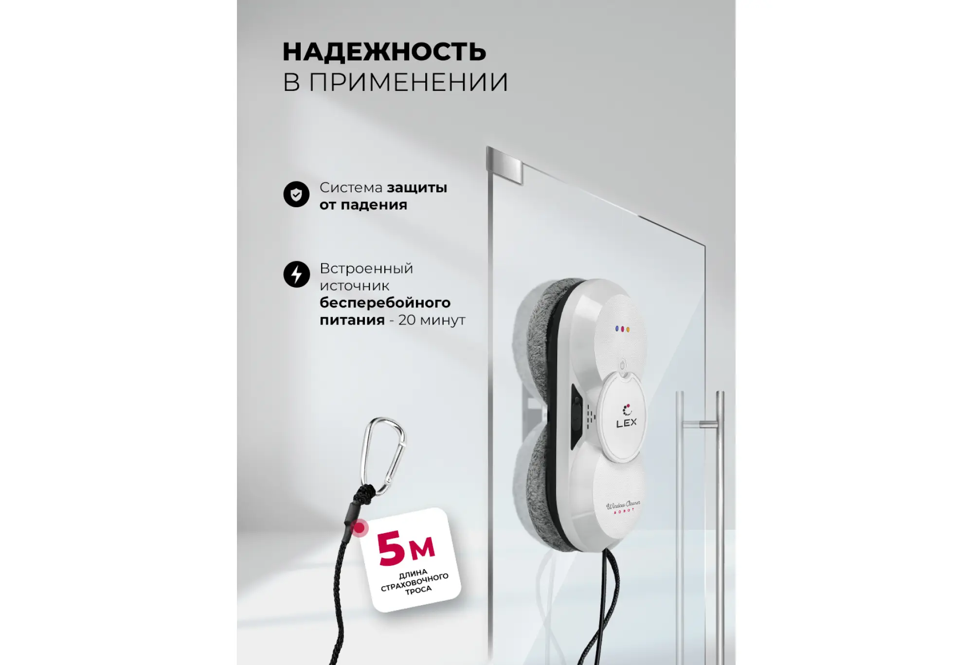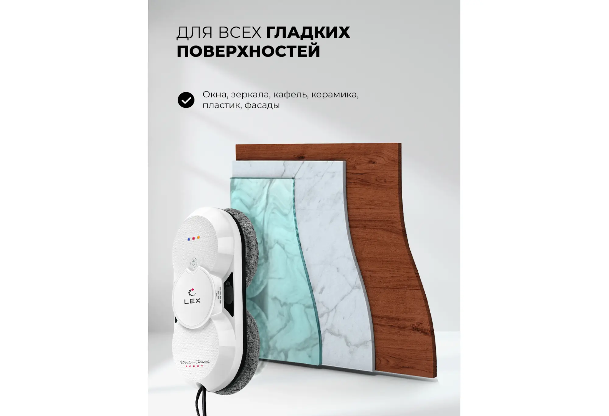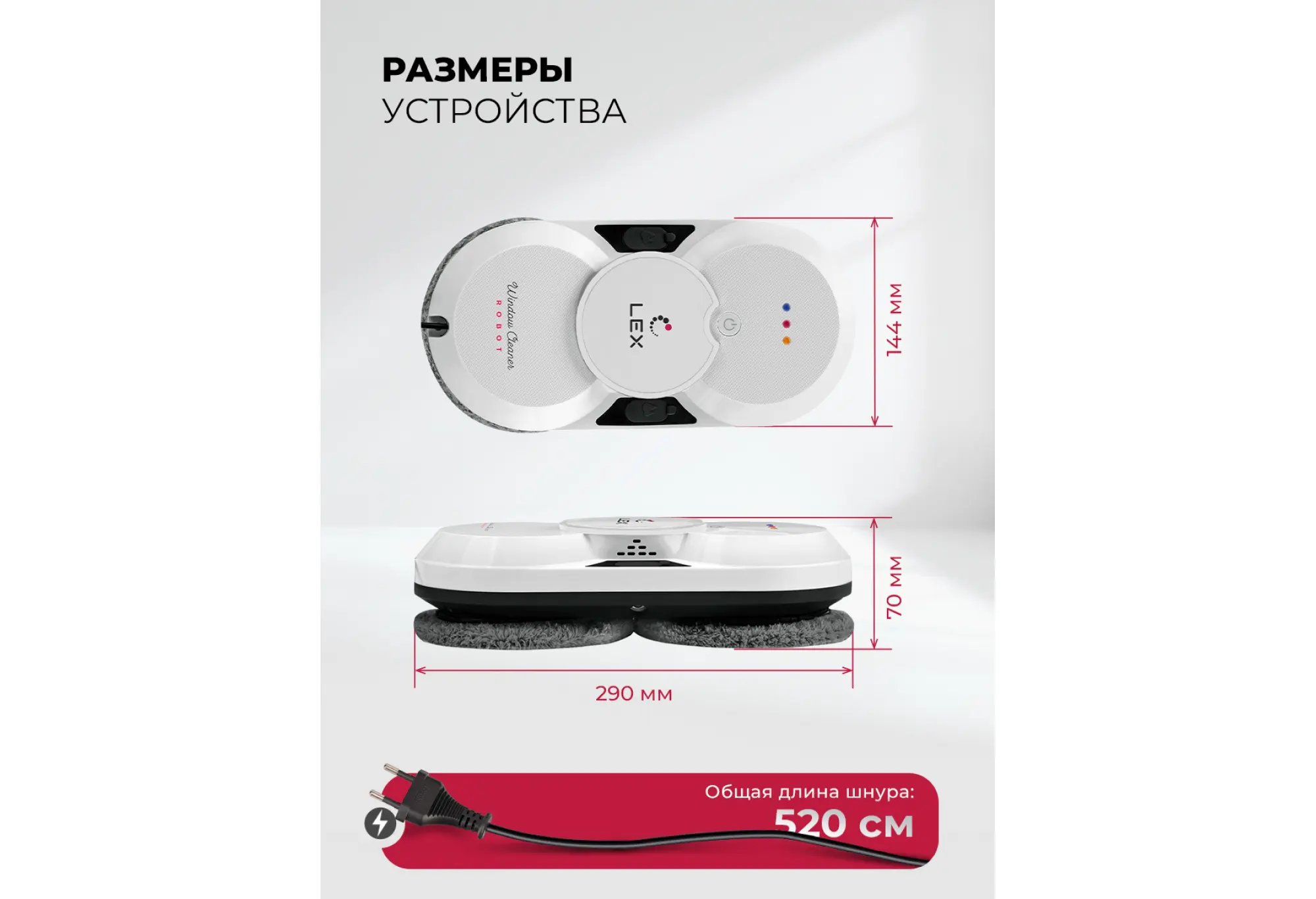 Робот-мойщик LXVCW7091 до блеска очистит стекла и плитку, пока вы будете заниматься любимым делом или просто отдыхать. Модель автоматически определяет границы рабочей поверхности и рассчитывает траекторию движения. Для удобного и безопасного использования в комплект входят удлинитель сетевого кабеля и прочный страховочный трос. Устройство имеет несколько режимов работы и может выполнять сухую или влажную уборку. Для управления можно использовать пульт и приложение на смартфоне. Робот оснащен современным бесщеточным двигателем и резервным аккумулятором.