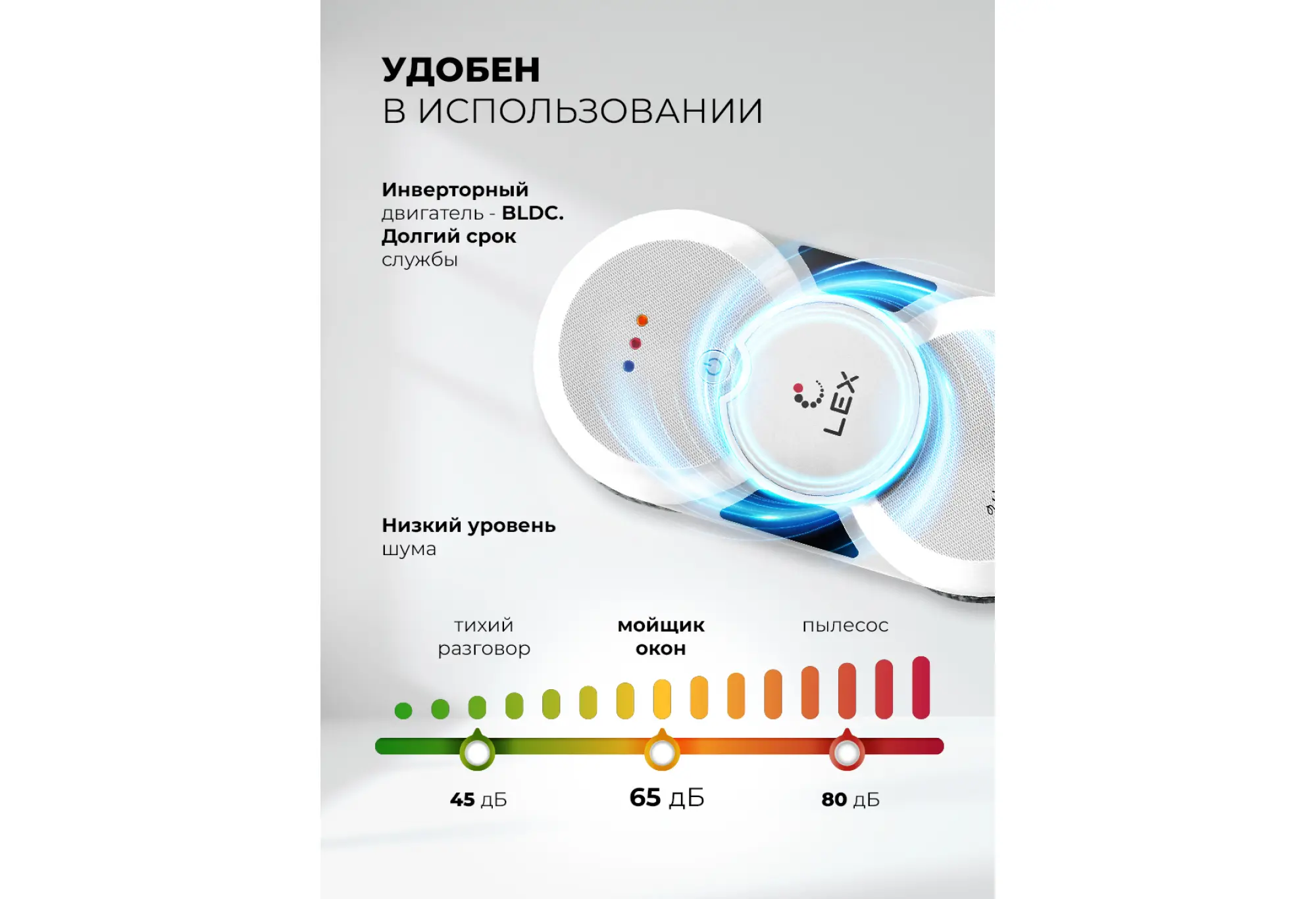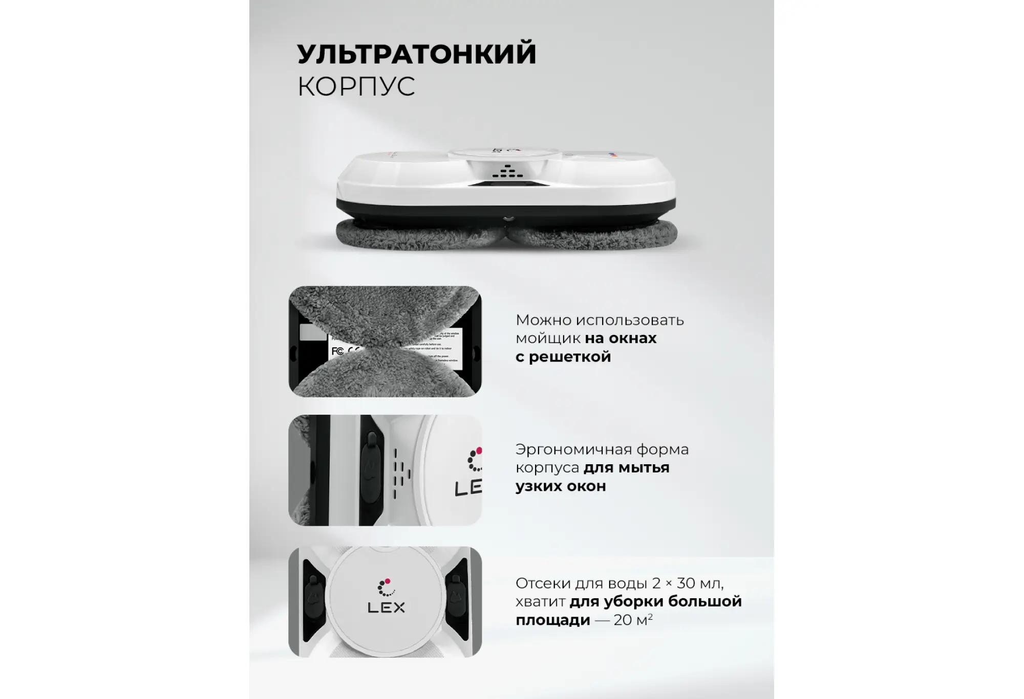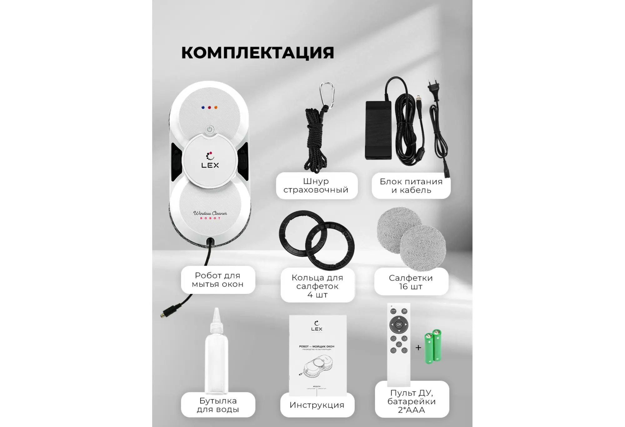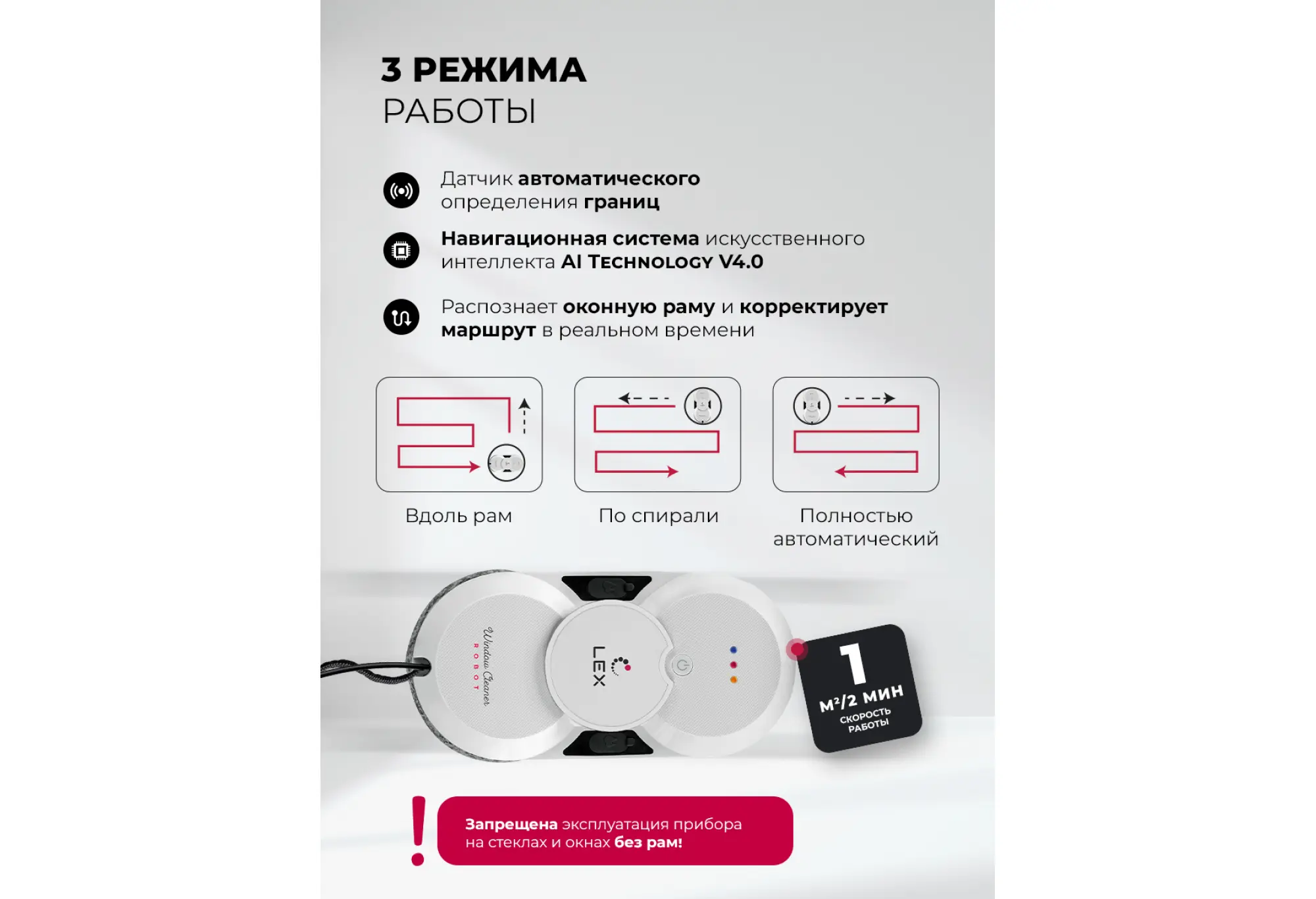 Робот-мойщик LXVCW7091 до блеска очистит стекла и плитку, пока вы будете заниматься любимым делом или просто отдыхать. Модель автоматически определяет границы рабочей поверхности и рассчитывает траекторию движения. Для удобного и безопасного использования в комплект входят удлинитель сетевого кабеля и прочный страховочный трос. Устройство имеет несколько режимов работы и может выполнять сухую или влажную уборку. Для управления можно использовать пульт и приложение на смартфоне. Робот оснащен современным бесщеточным двигателем и резервным аккумулятором.