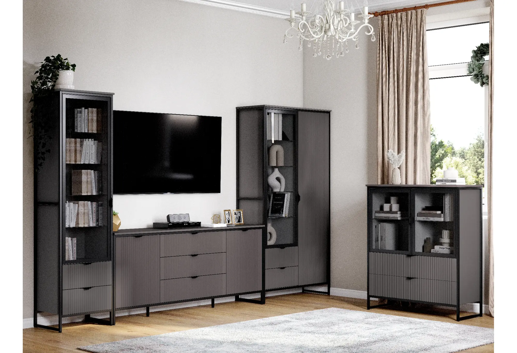 Тумба 2 дв 3 ящ "Нора" гостиная с глухими дверями Графит