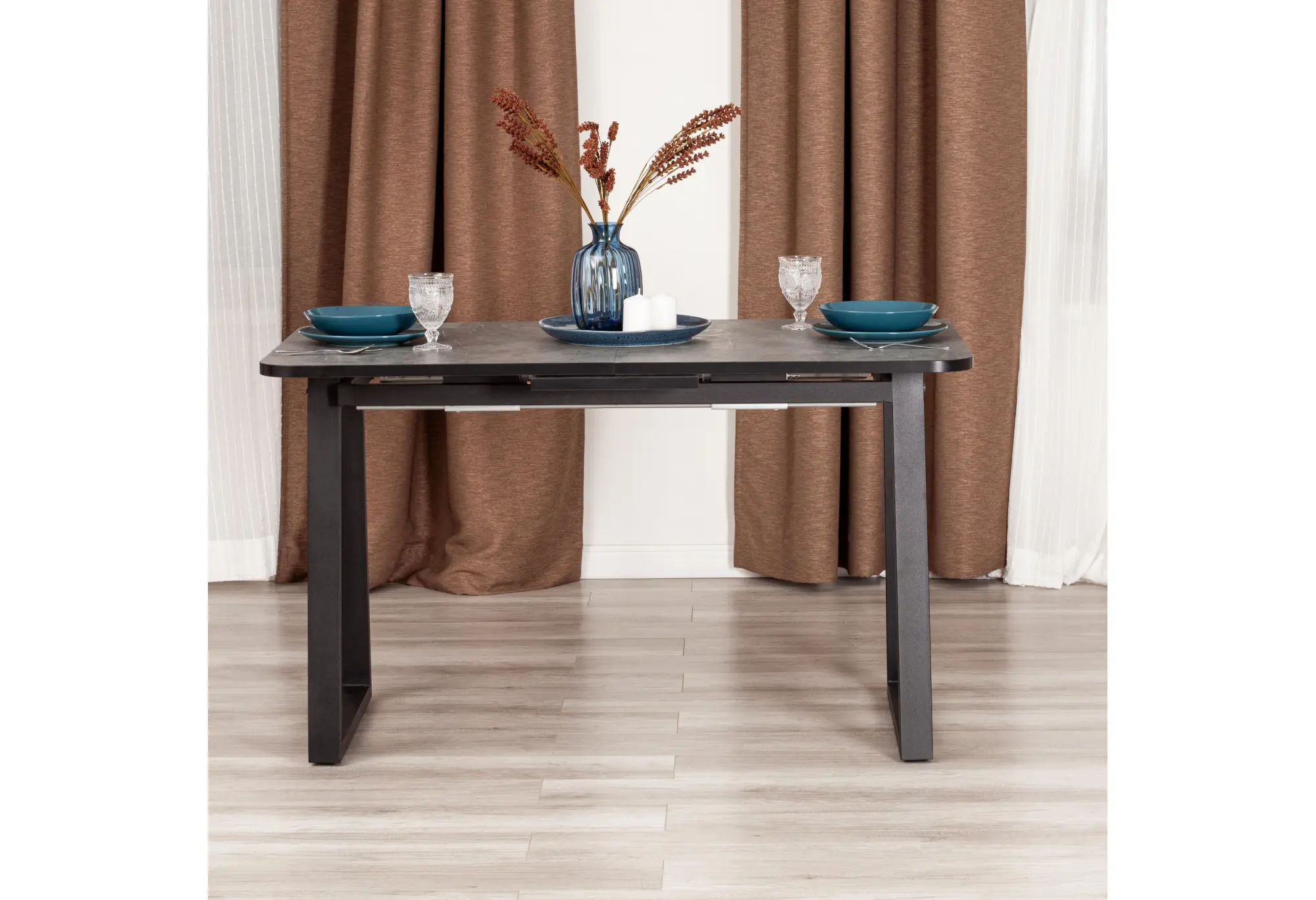 Необычный раскладной стол MALTIDO из коллекции Modern сделает оригинальным и узнаваемым интерьер загородного дома или городской квартиры. Необычная форма ножек придаст любому помещению особую индивидуальность и привлекательность. Стол подойдёт гостиной, кухни или столовой. Столешница в цвете гранит черный и вставка выполнены из ЛДСП толщиной 22 мм на лицевую поверхность которых нанесен защитный слой HPL толщиной 1 мм. HPL имеет защитное покрытие оверлей высокой степени истирания, которое повышает устойчивость поверхностей к повреждениям. Структурированная поверхность столлешницы с имитацией натурального камня придает изыканный вид. Для увеличения размера стола используется автоматический механизм подъема вставки стола. Прочные черные металлические ножки окрашены порошковой краской. Опоры укомплектованы регулировочными винтами, для выравнивания стола на неровных поверхностях. Столешница снабжена фиксаторами. Во избежании самопроизвольного раздвижения половинок столешниц обязательно переключайте фиксаторы в состояние "Закрыто". Стол будет радовать своего владельца долгим сроком службы, надежностью, устойчивостью, привлекательностью, удивит своей красотой и изысканностью даже самых требовательных хозяев. За столом могут разместиться от 2 до 6 человек. Стол упакован в транспортировочный короб из ЛДСП + гофрокороб. Модель проста в сборке, инструкция прилагается.