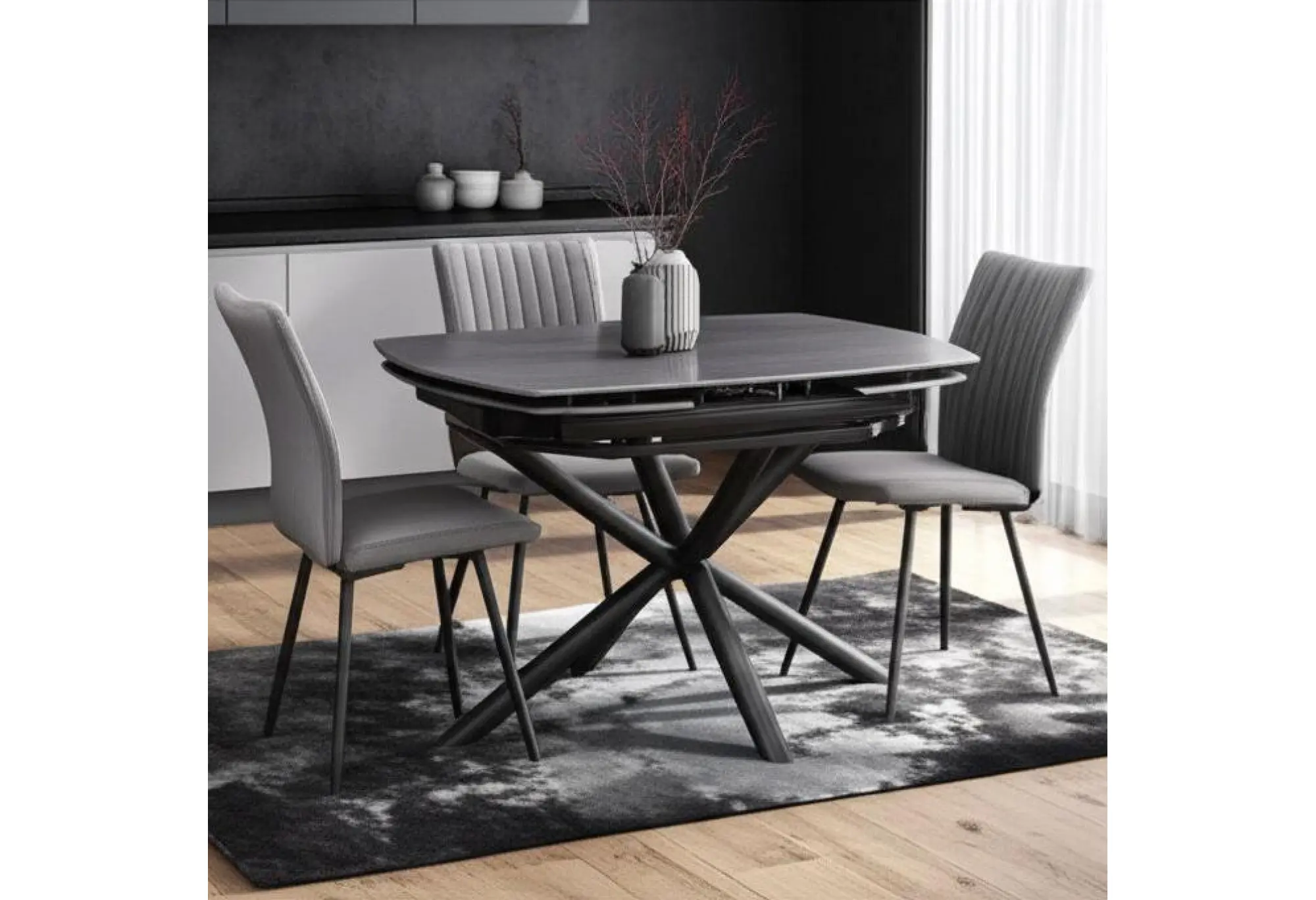 Стол обеденный Winston — это идеальное сочетание современного дизайна и функциональности, которое станет центральным элементом вашей обеденной зоны. Его матовая керамическая столешница темно - серого цвета придаёт столу элегантный вид, в то время как черные металлические ножки добавляют стильный и современный акцент. Механизм - поворотно-ротационное раздвижение. За столом удобно разместится от двух до шести человек, что делает его универсальным выбором как для семейных обедов, так и для приема гостей. Изготовленная из керамики толщиной 12 мм столешница отличается прочностью и лёгкостью в уходе, что обеспечивает долговечность и практичность в использовании. Благодаря прямоугольной форме, стол обеденный Winston легко вписывается в любые интерьерные стили — от современного до традиционного, идеально подходя для кухни, гостиной или загородного дома. Он не только функционален, но и служит ярким элементом декора, который преобразит и украсит любое пространство, добавляя нотки стиля и комфорта.