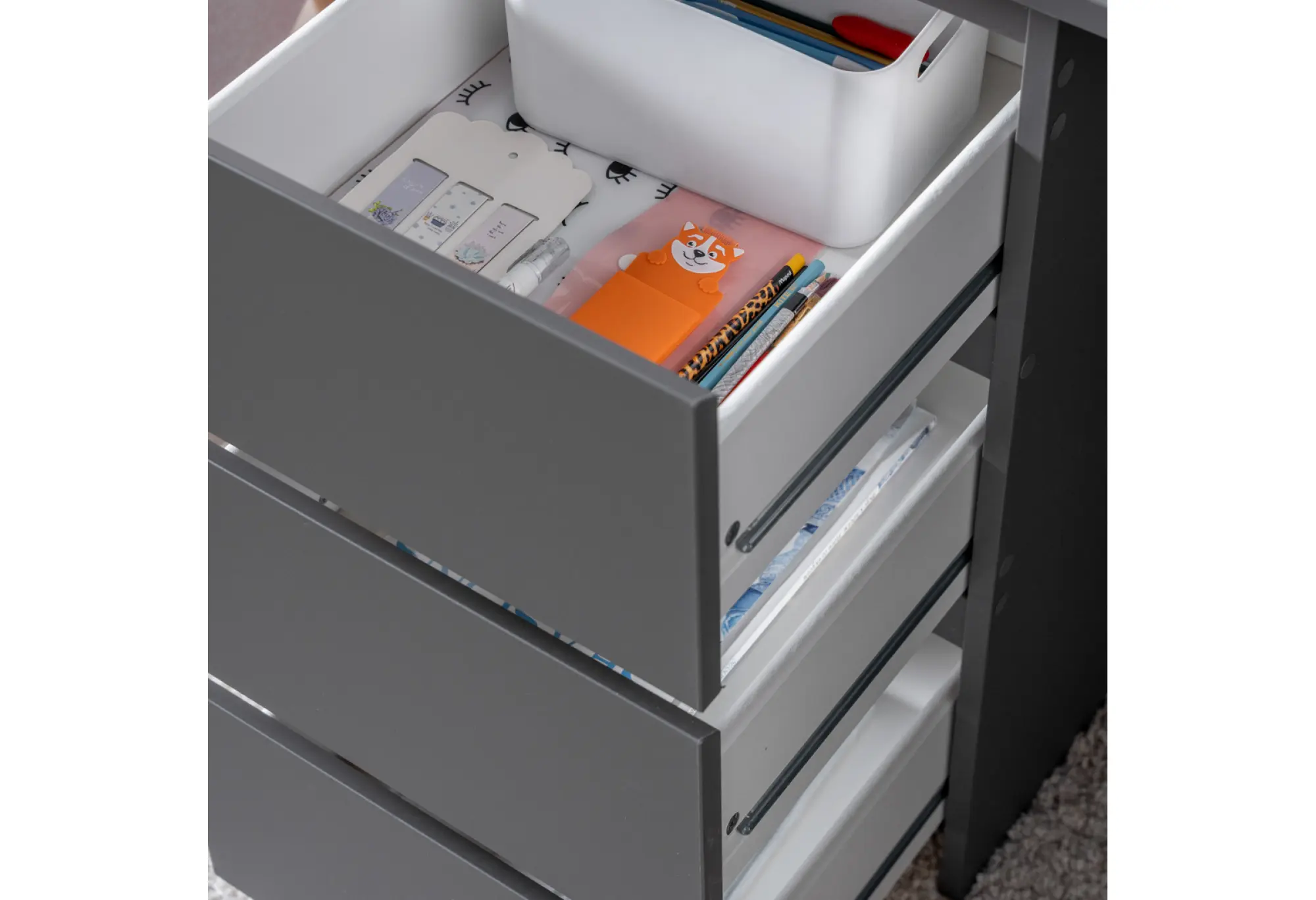 Три вместительных выдвижных ящика помогут вам организовать хранение документов и канцелярских принадлежностей. Гибкость в размещении тумбы позволяет установить её как справа, так и слева, подстраивая стол под ваши индивидуальные потребности и удобство использования.