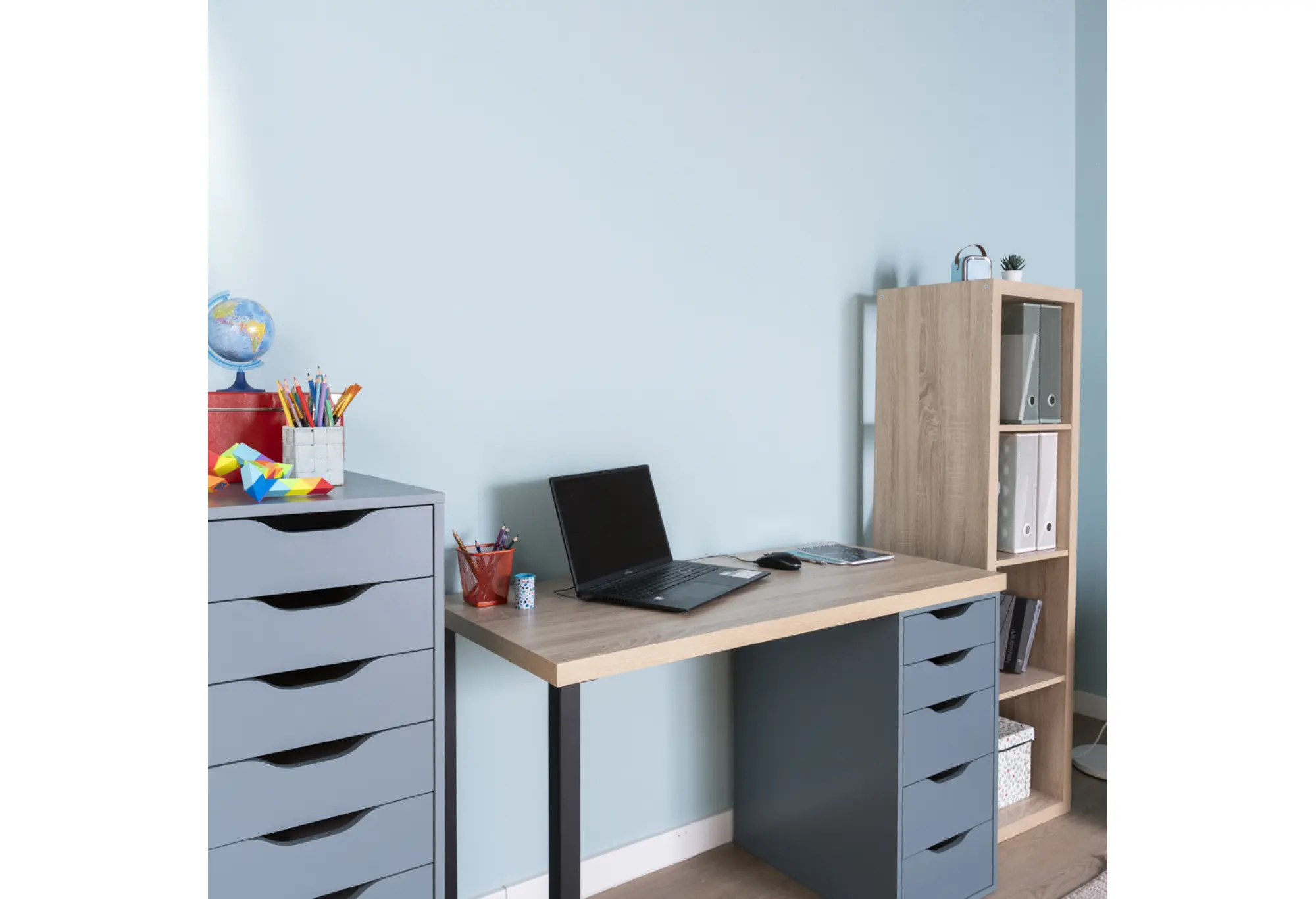 S01378 Ингар 1/5Т стол письменный 120x75x55, дуб беленый/серо-бирюзовый/черный