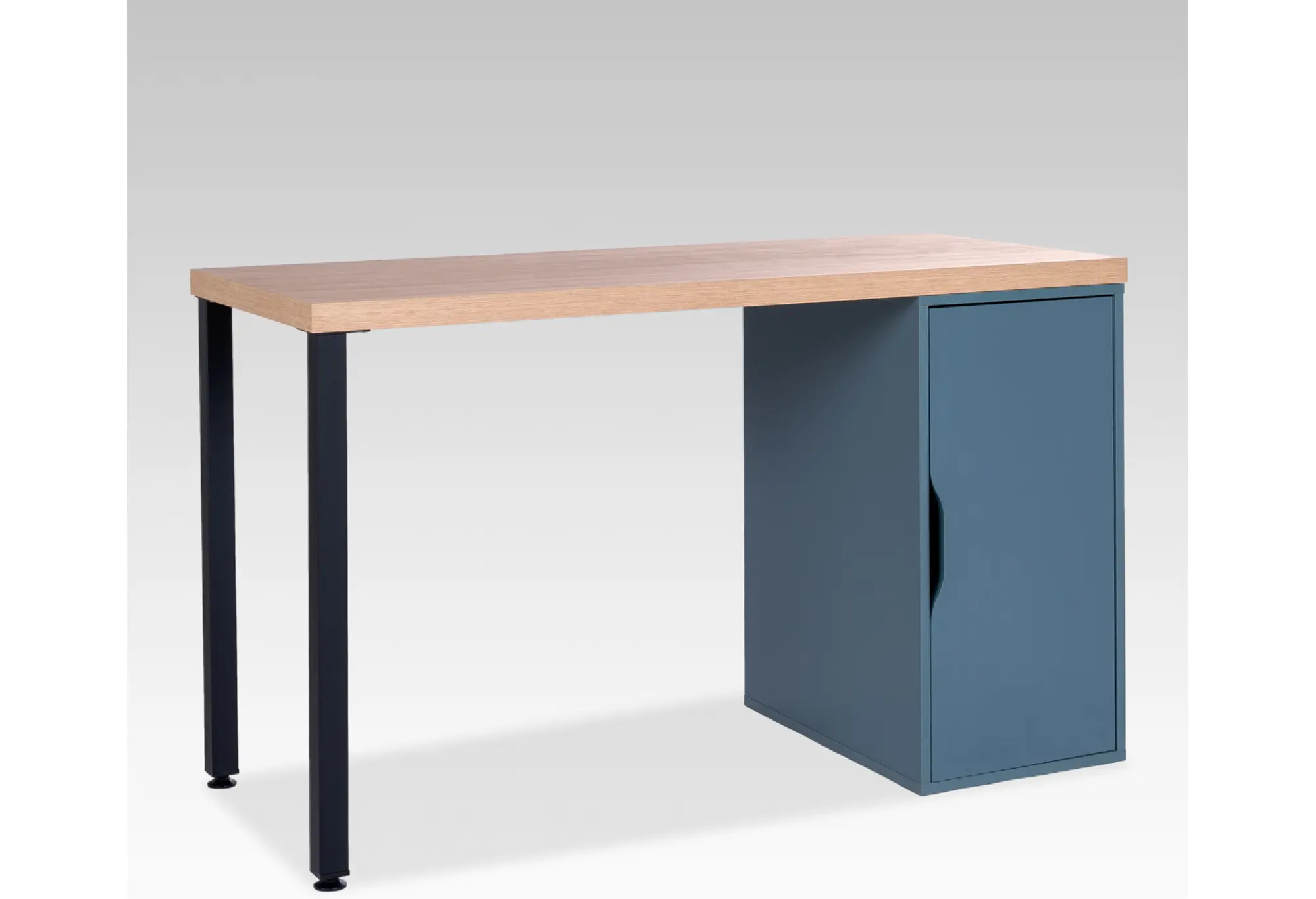 Лаконичный письменный стол для современного интерьера рабочего кабинета, детской или домашнего офиса. Столешница из ЛДСП в оттенке «дуб беленый» создает визуальное ощущение легкости и тепла, при этом устойчива к повседневным нагрузкам — письму, работе за ноутбуком, учебным занятиям.