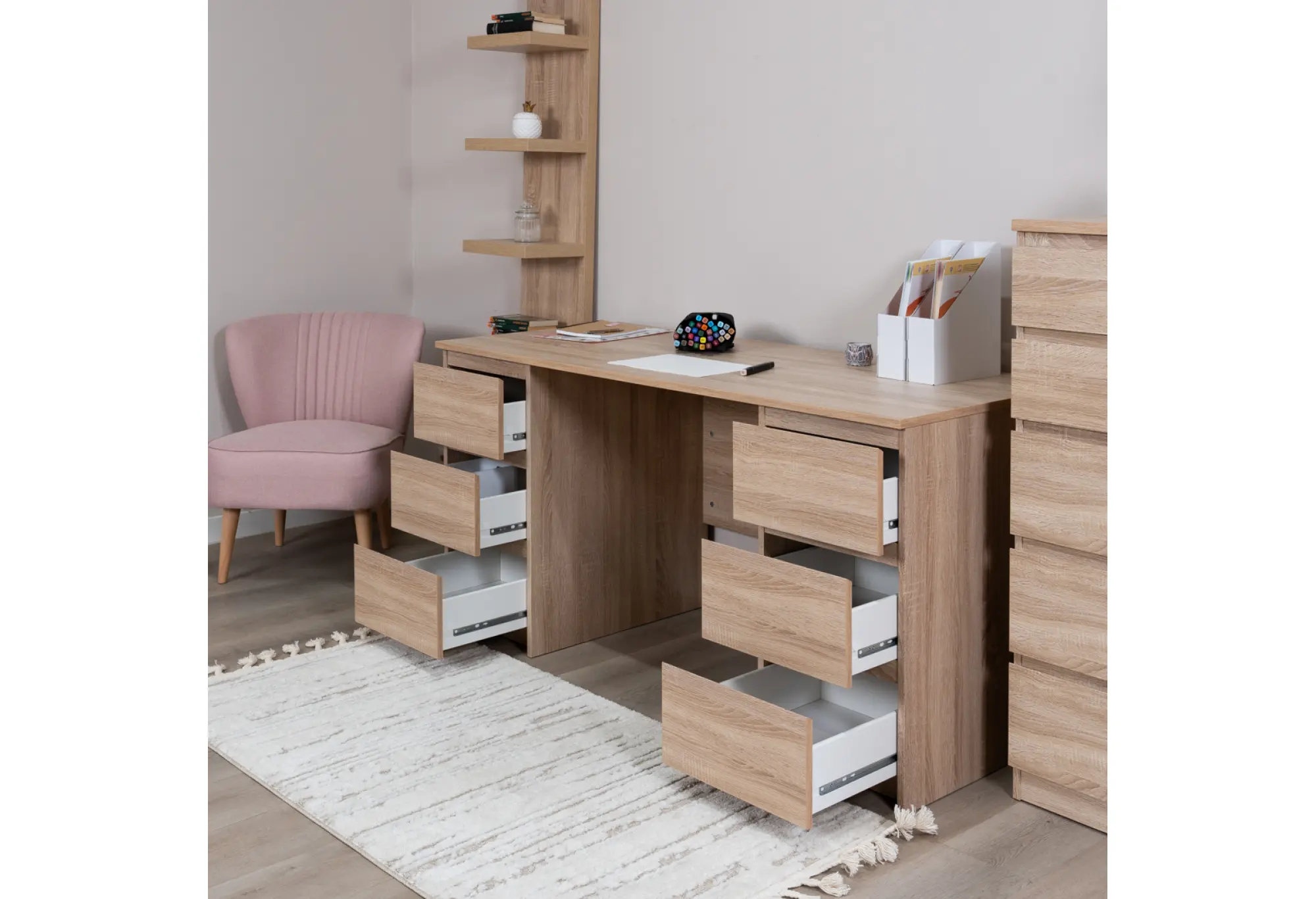 Стол КАСТОР письменный двухтумбовый с шестью ящиками, цвет Дуб Сонома