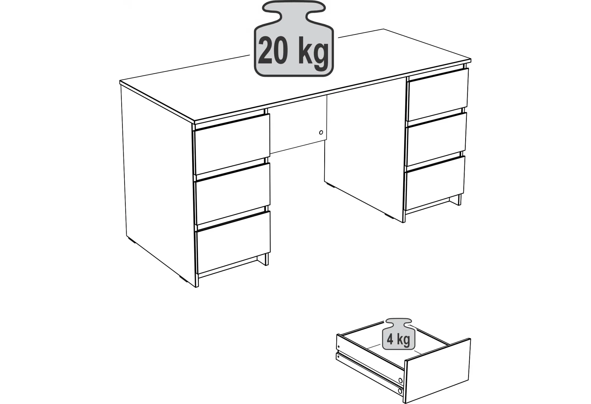 Две тумбы с тремя выдвижными ящиками каждая обеспечивают удобную систему хранения, можно разложить бумаги, офисные мелочи и личные вещи по категориям и держать всё под рукой. Наружные выдвижные ящики открываются плавно и обеспечивают хороший доступ к содержимому по всей глубине.