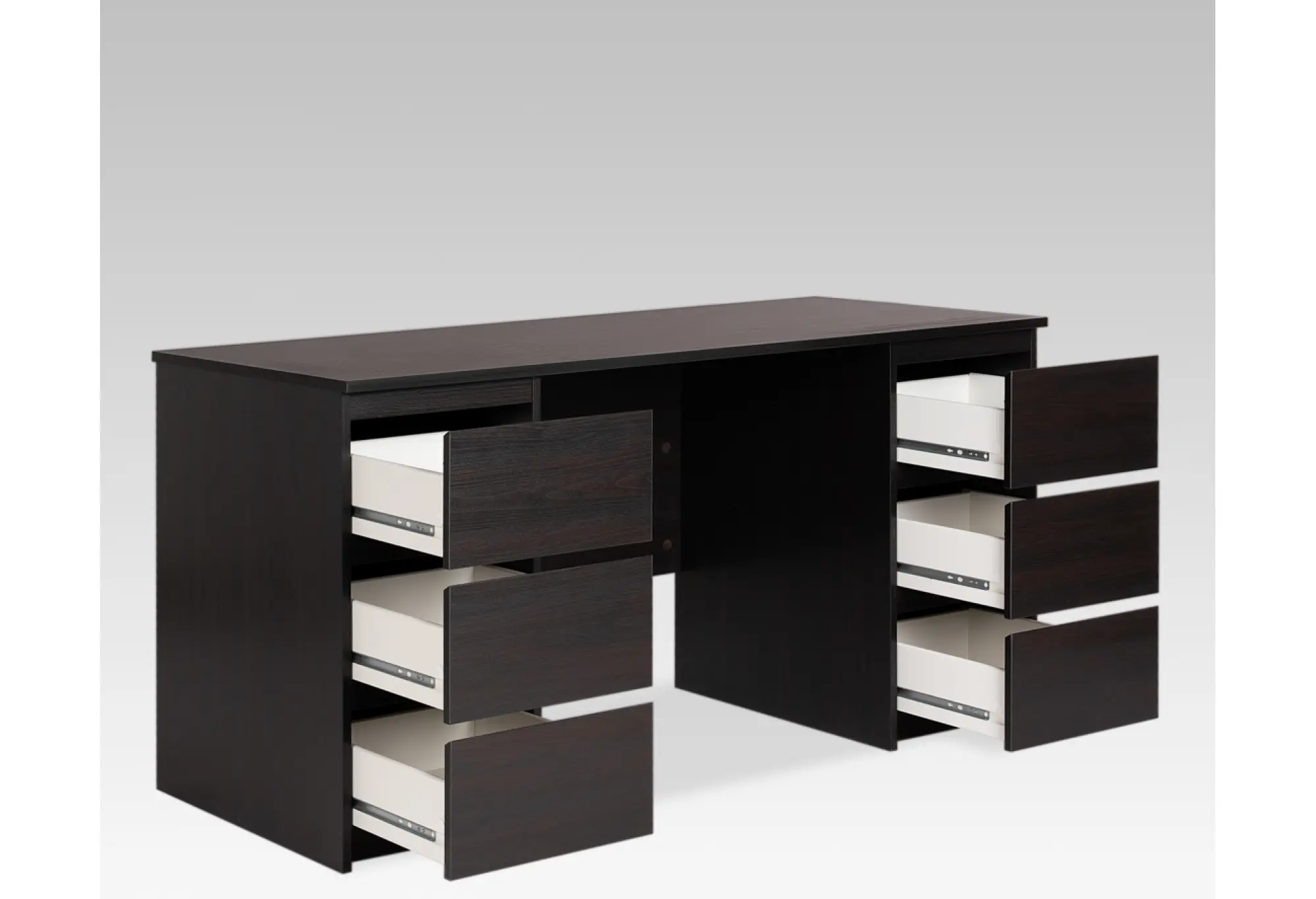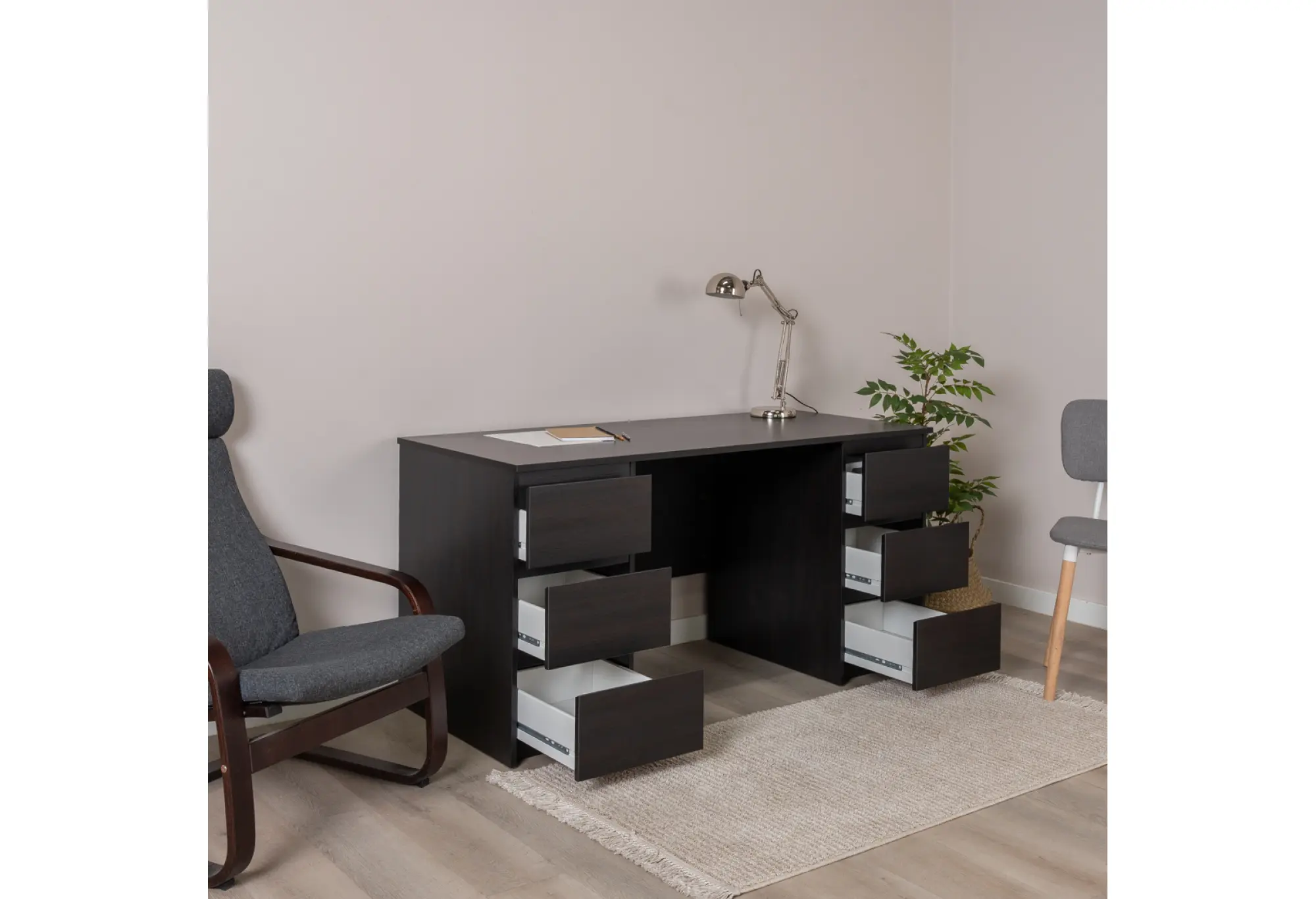 Стол КАСТОР письменный двухтумбовый с шестью ящиками, цвет Дуб Венге