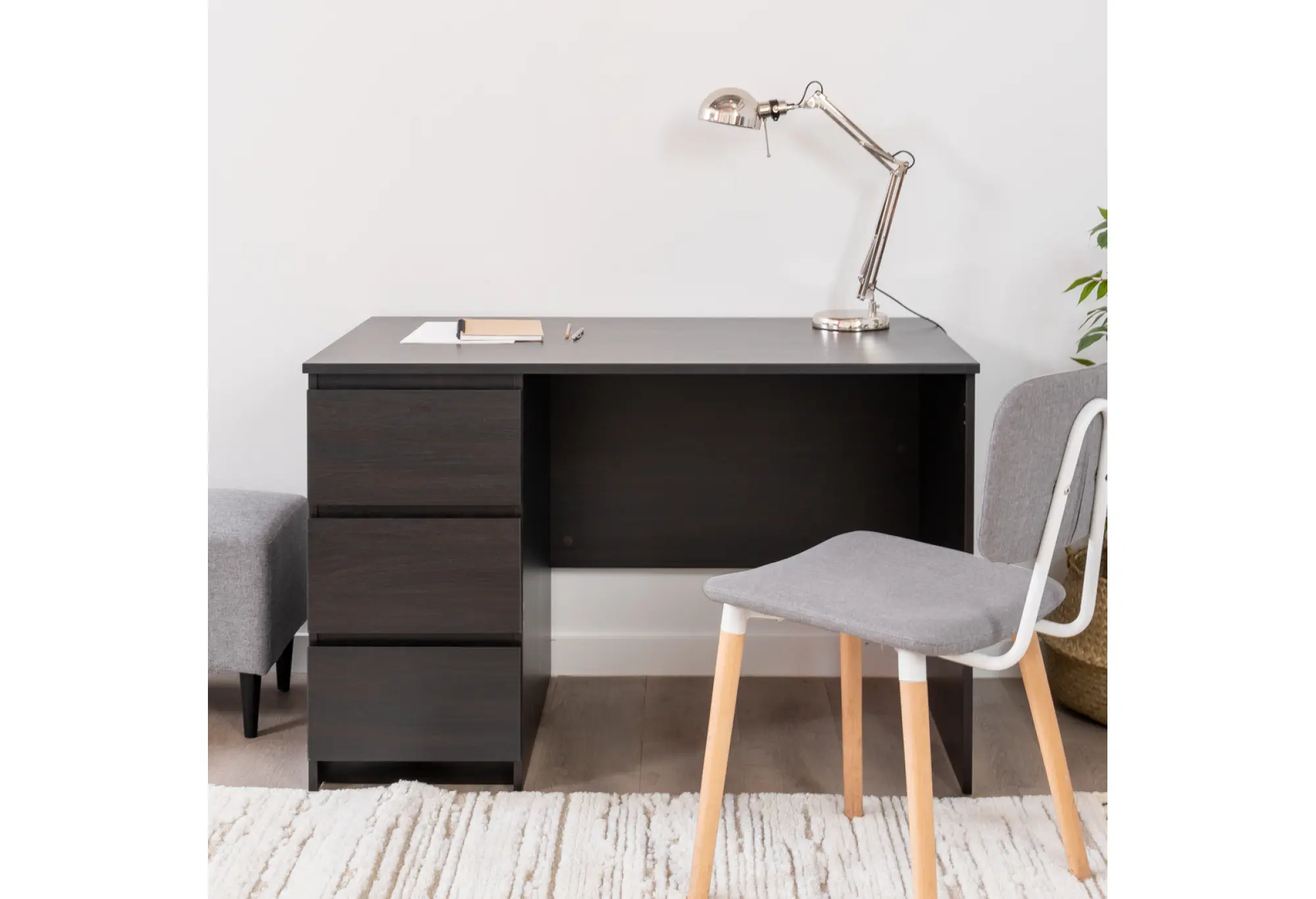 Этот стол особенно удобен, если вы хотите быстро организовать рабочее место без лишних деталей, но с продуманным местом для хранения необходимых вещей.