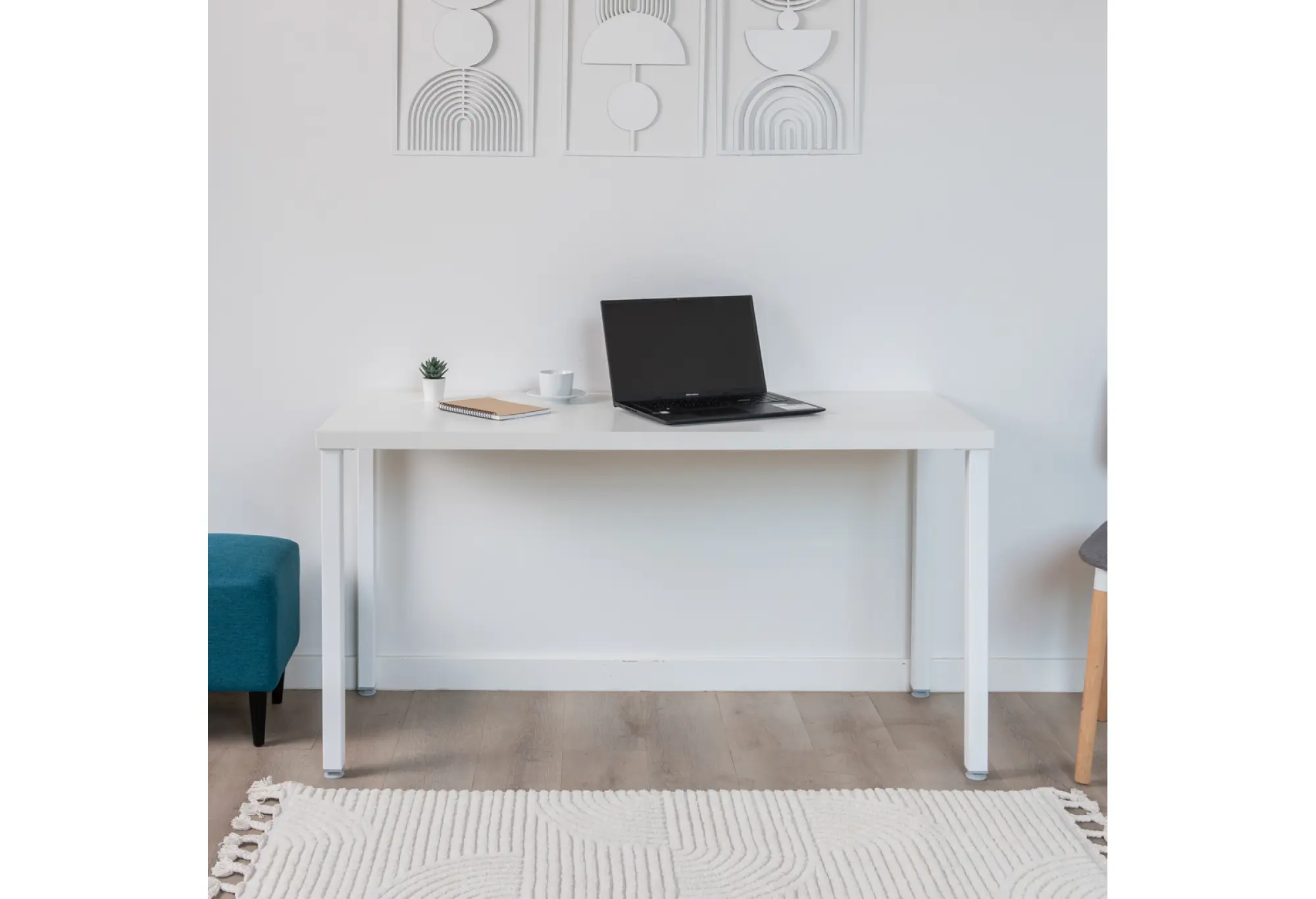 Столешница выполнена по технологии тамбурат - рамка из ДСП и HDF с сотовым заполнением делает конструкцию легче без ущерба для прочности. Это современный подход, который широко применяется в мебели скандинавского направления. Белый цвет добавляет визуальной легкости и помогает поддерживать аккуратный, нейтральный интерьер дома или офиса.