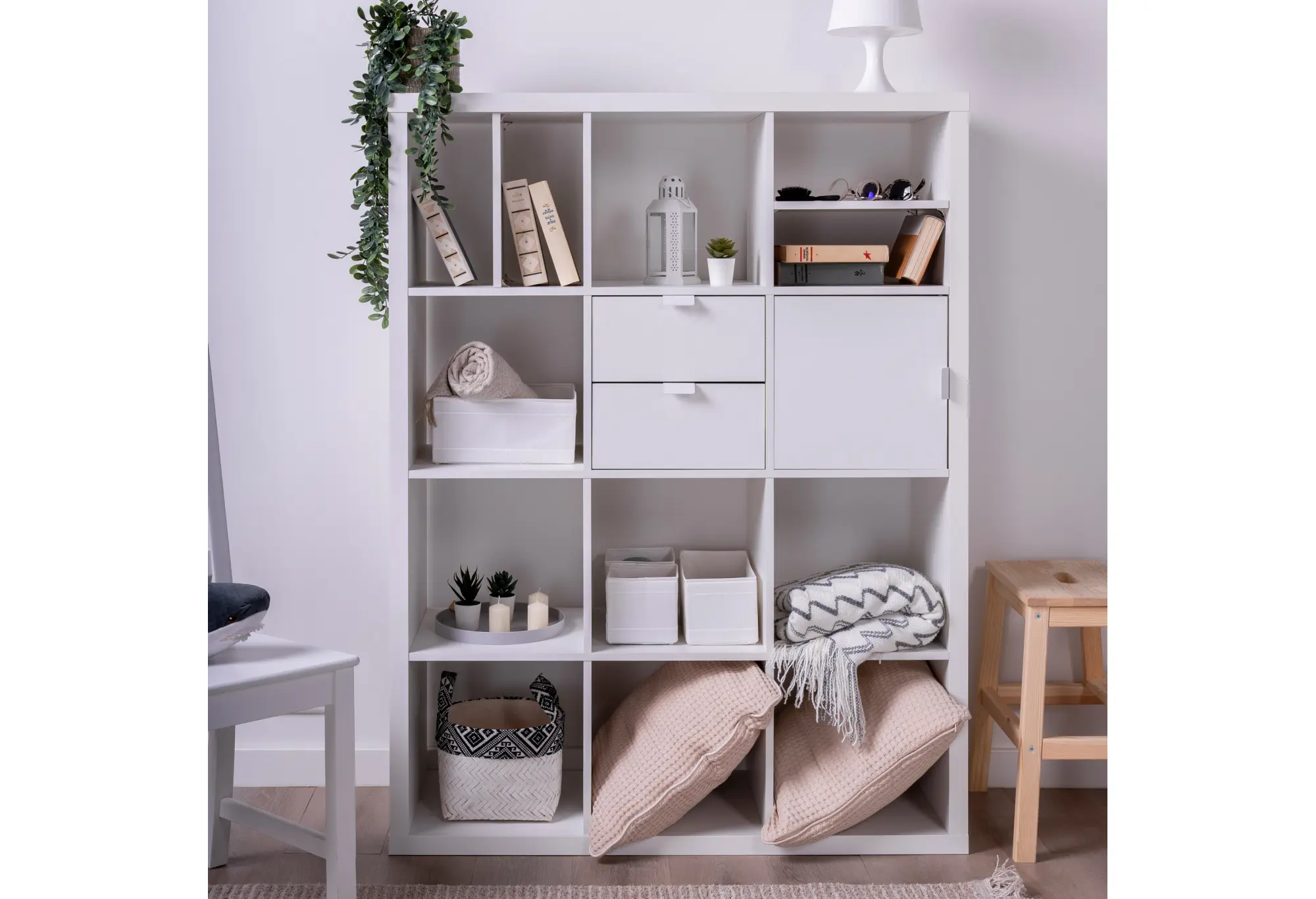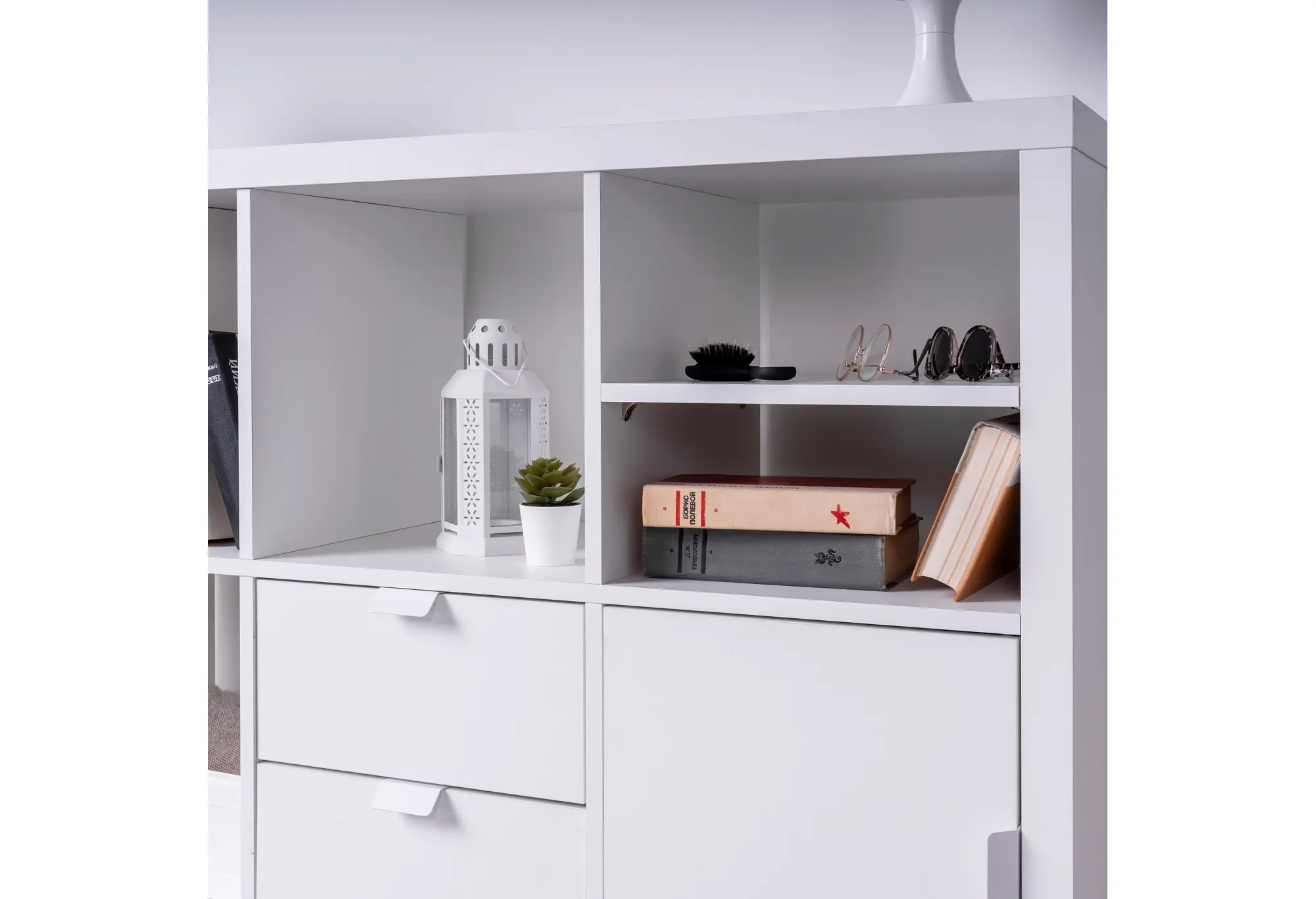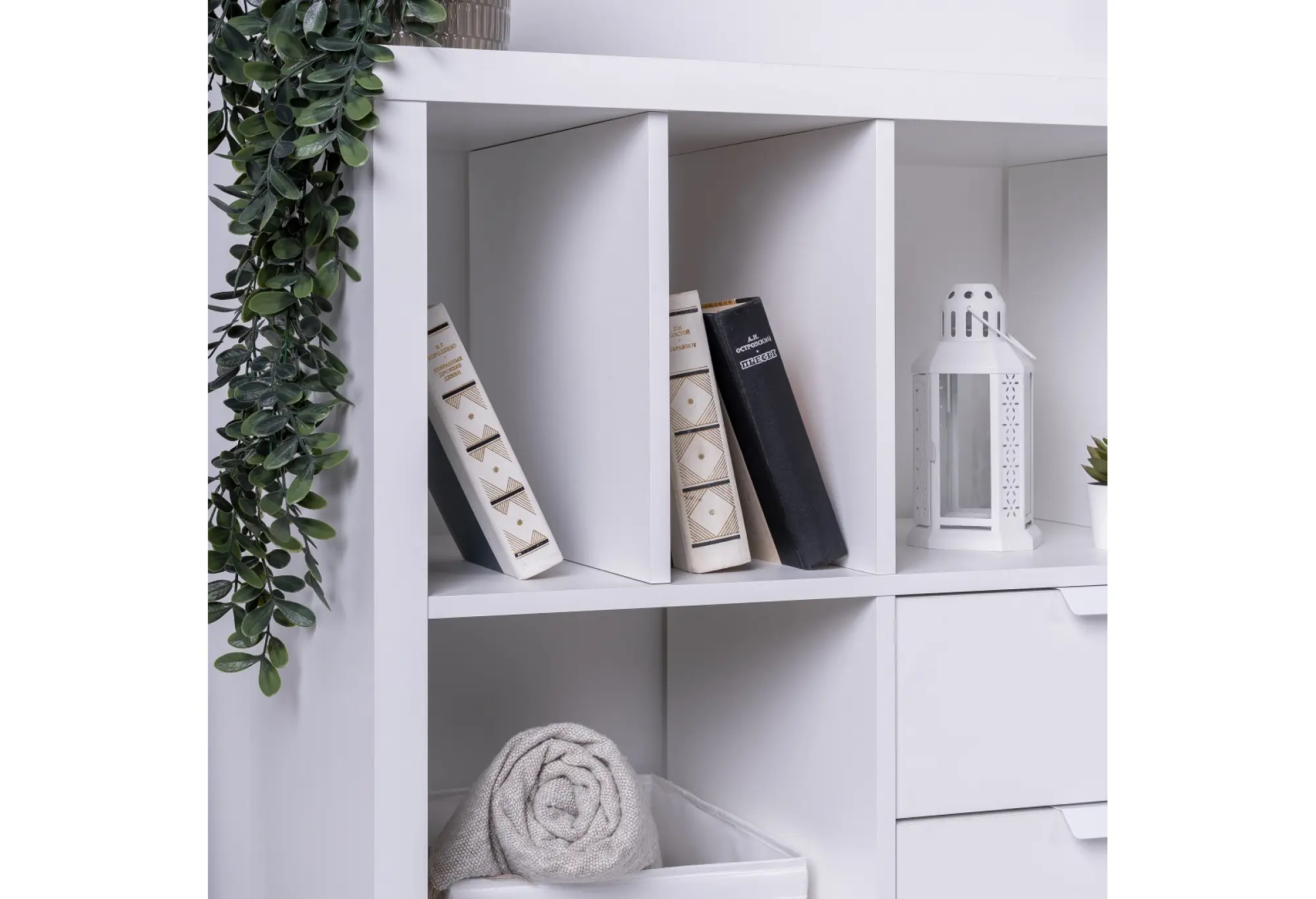 Стеллаж Фора 16, широкий стеллаж с открытыми ячейками, тамбурат белого цвета