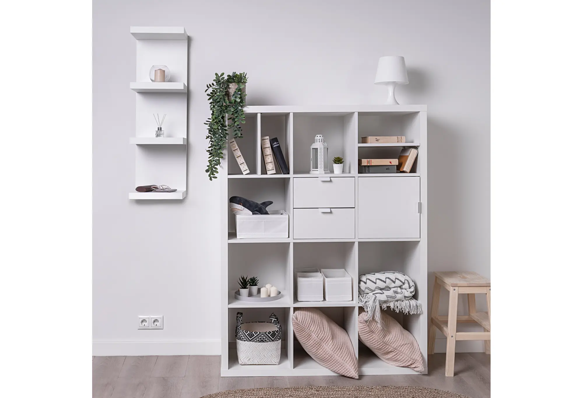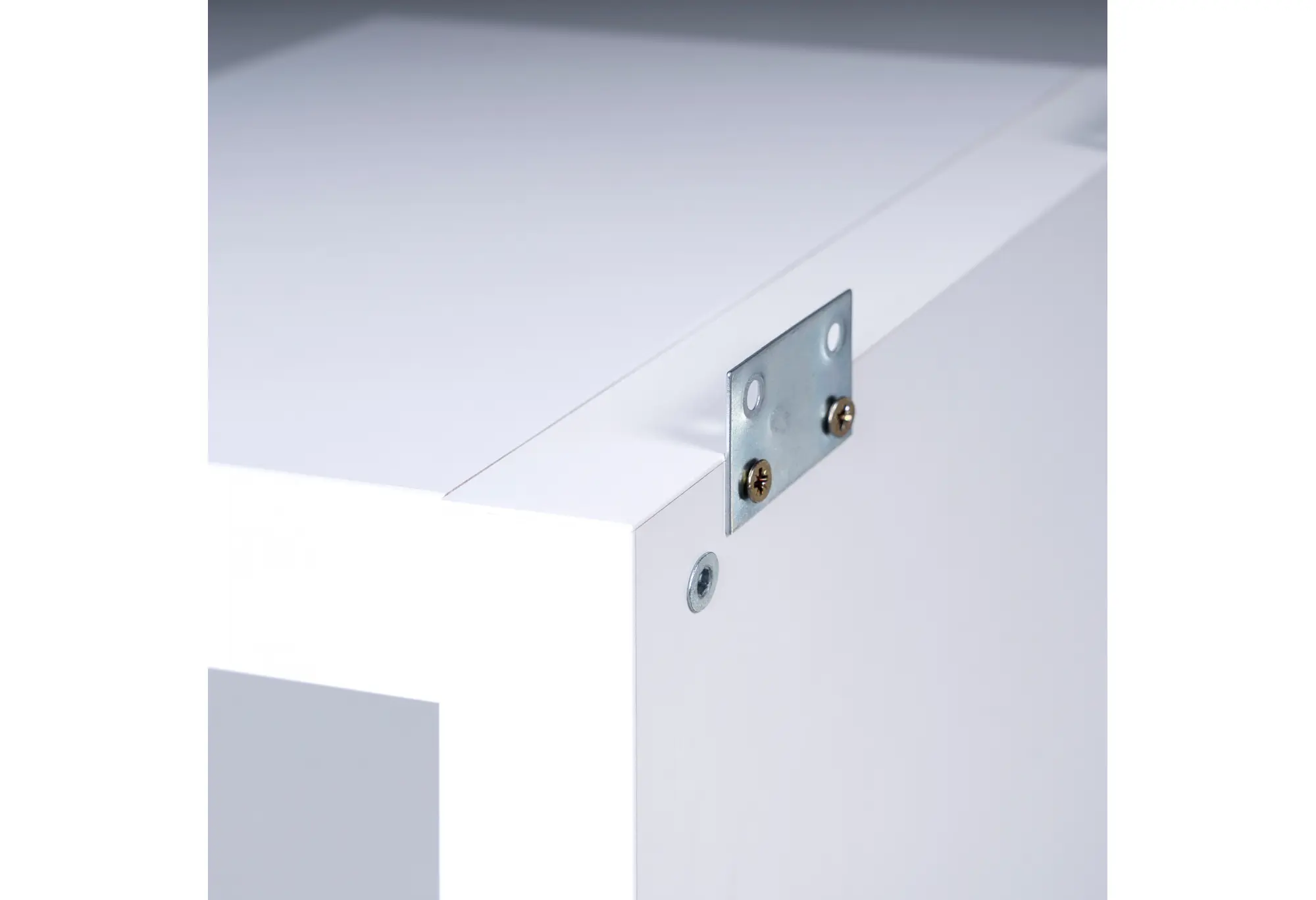 Белый цвет визуально облегчает композицию и легко сочетается с другой мебелью - стеллажами Фора, журнальными столиками и ТВ-тумбами Энкель, комодами и стеллажами Варма. Скрытое крепление обеспечивает плотное прилегание к стене и аккуратный внешний вид без выступающих деталей.