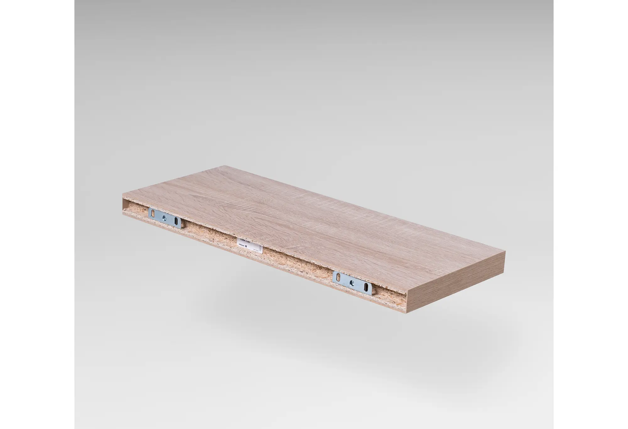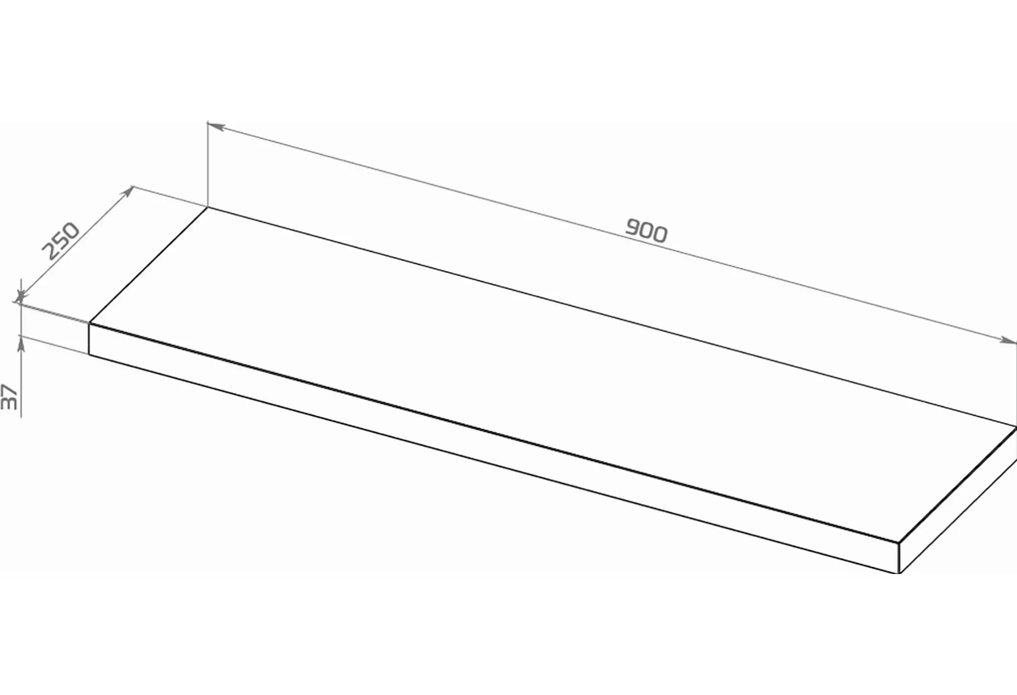 Полка выполнена по технологии тамбурат - рамка из ДСП и HDF с сотовым заполнением обеспечивает сочетание малого веса и высокой прочности. При длине 900 мм и глубине 250 мм она рассчитана на нагрузку до 5 кг, что подходит для размещения книг, декора, фоторамок и аксессуаров. Толщина 37 мм визуально подчеркивает современный характер модели и делает полку выразительным элементом на стене.