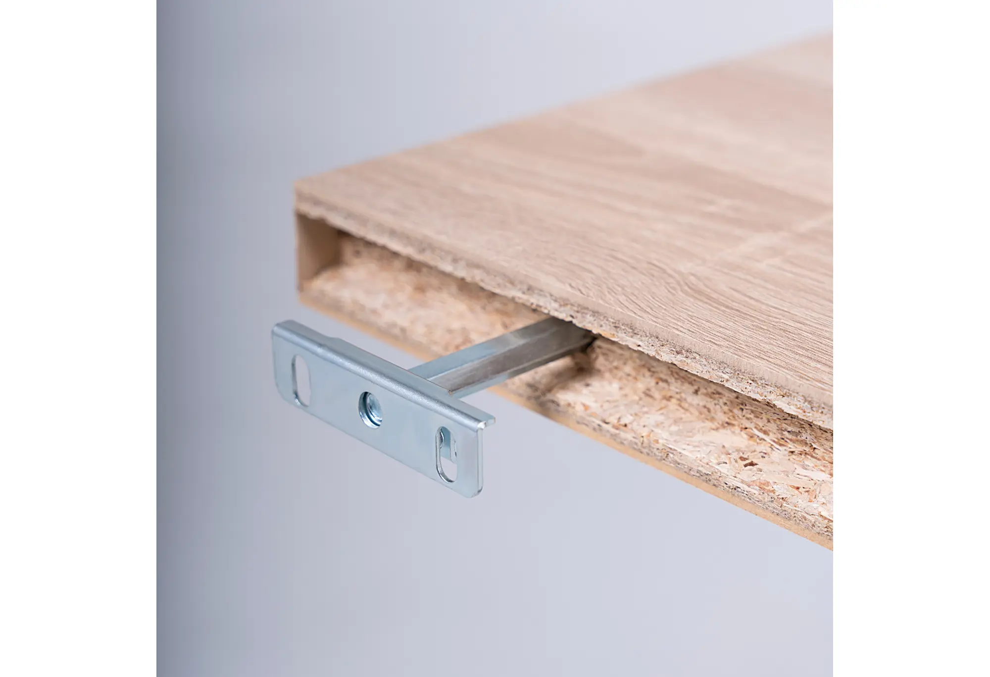 Крепление скрытое, что создает аккуратный внешний вид без заметных опор и обеспечивает плотное прилегание к стене. В комплект входят кронштейны с возможностью регулировки по ширине, высоте и углу наклона, что облегчает установку и помогает точно выставить полку по уровню. Крепеж к стене подбирается отдельно с учетом материала основания, что позволяет обеспечить надежную фиксацию в конкретных условиях помещения.