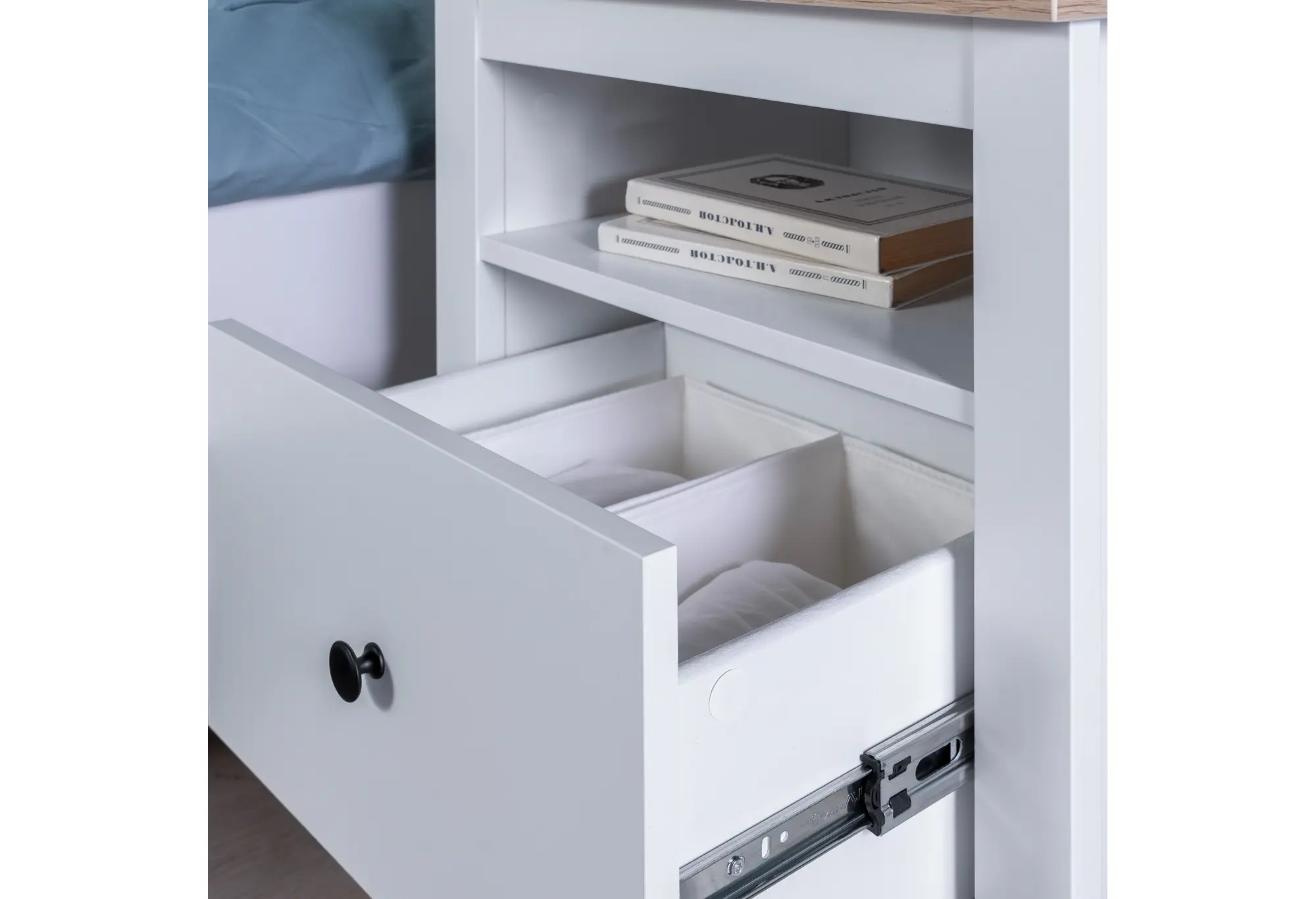 Эта стильная тумба в цвете белый/ясень станет отличным дополнением вашего интерьера. Изготовленная из высококачественной ДСП, она гармонично сочетает функциональность и эстетичность. Компактные размеры (512x414x622 мм) позволяют разместить её даже в небольших помещениях. Лаконичный дизайн с открытой нишей и вместительным ящиком делает эту тумбу практичным решением для хранения различных предметов.