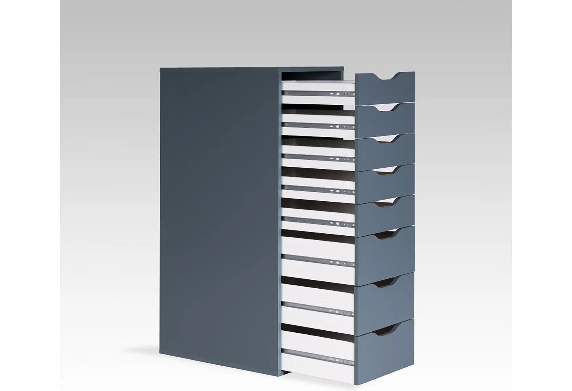 - Восемь выдвижных ящиков переменной высоты
