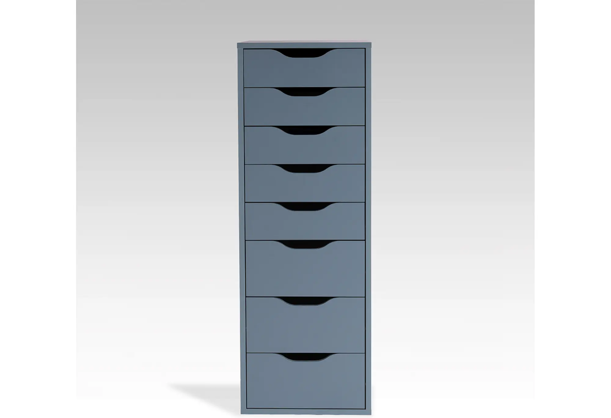 Высокий и узкий комод «Ингар 8» в серо-бирюзовом цвете — удобное решение для хранения в небольшой комнате или узком пространстве. При ширине 360 мм и высоте 1020 мм он занимает минимум места, обеспечивая при этом восемь выдвижных ящиков для разных типов вещей.