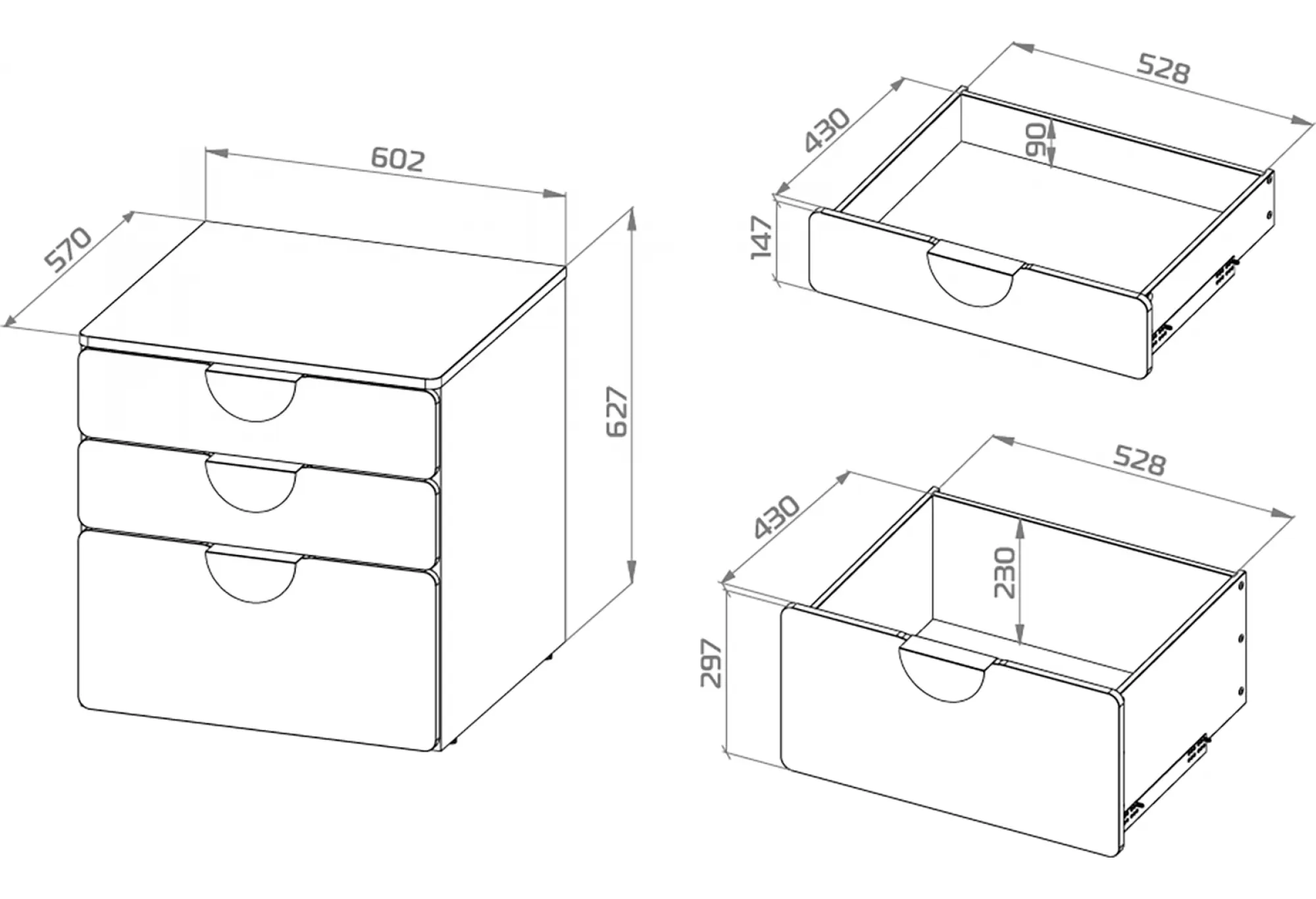 S02412 ПИКСИ комод 3 ящика 60x57x63, озорной василек