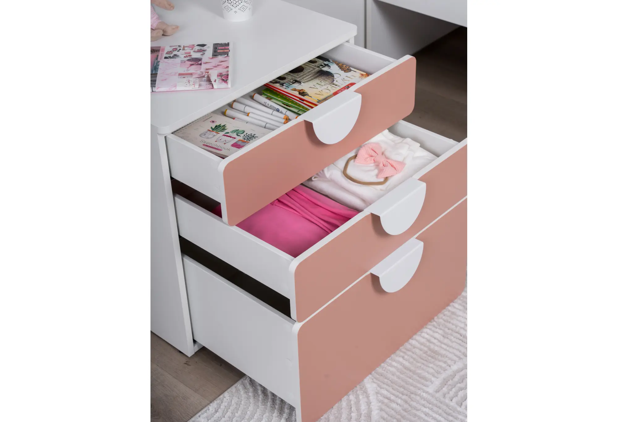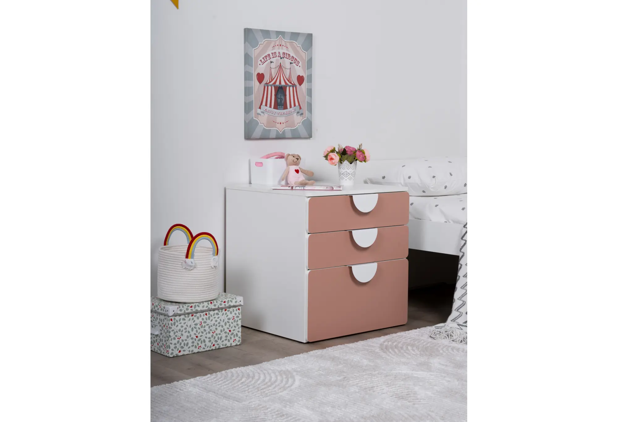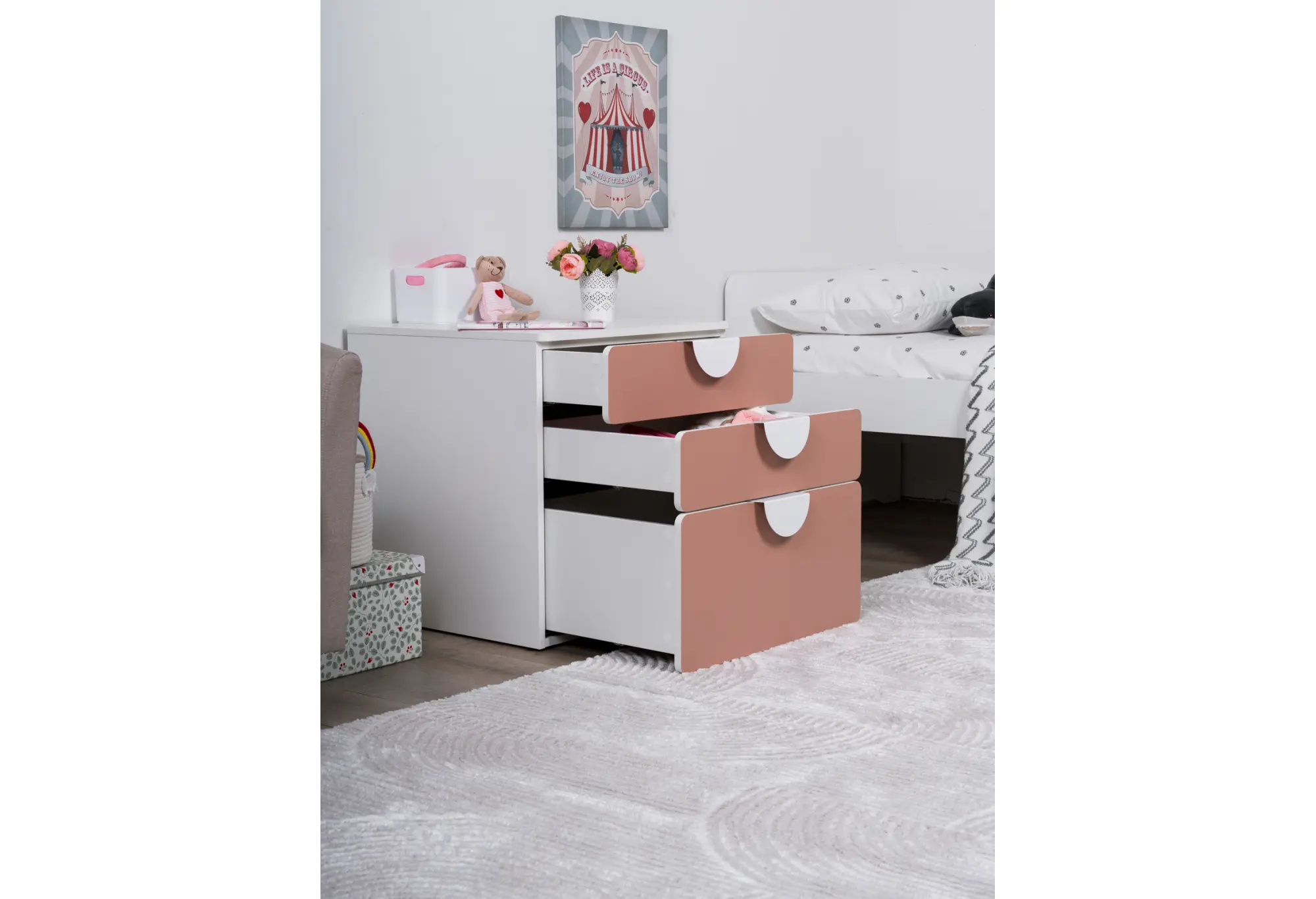 S02511 ПИКСИ комод 3 ящика 60x57x63, мечтательный пион