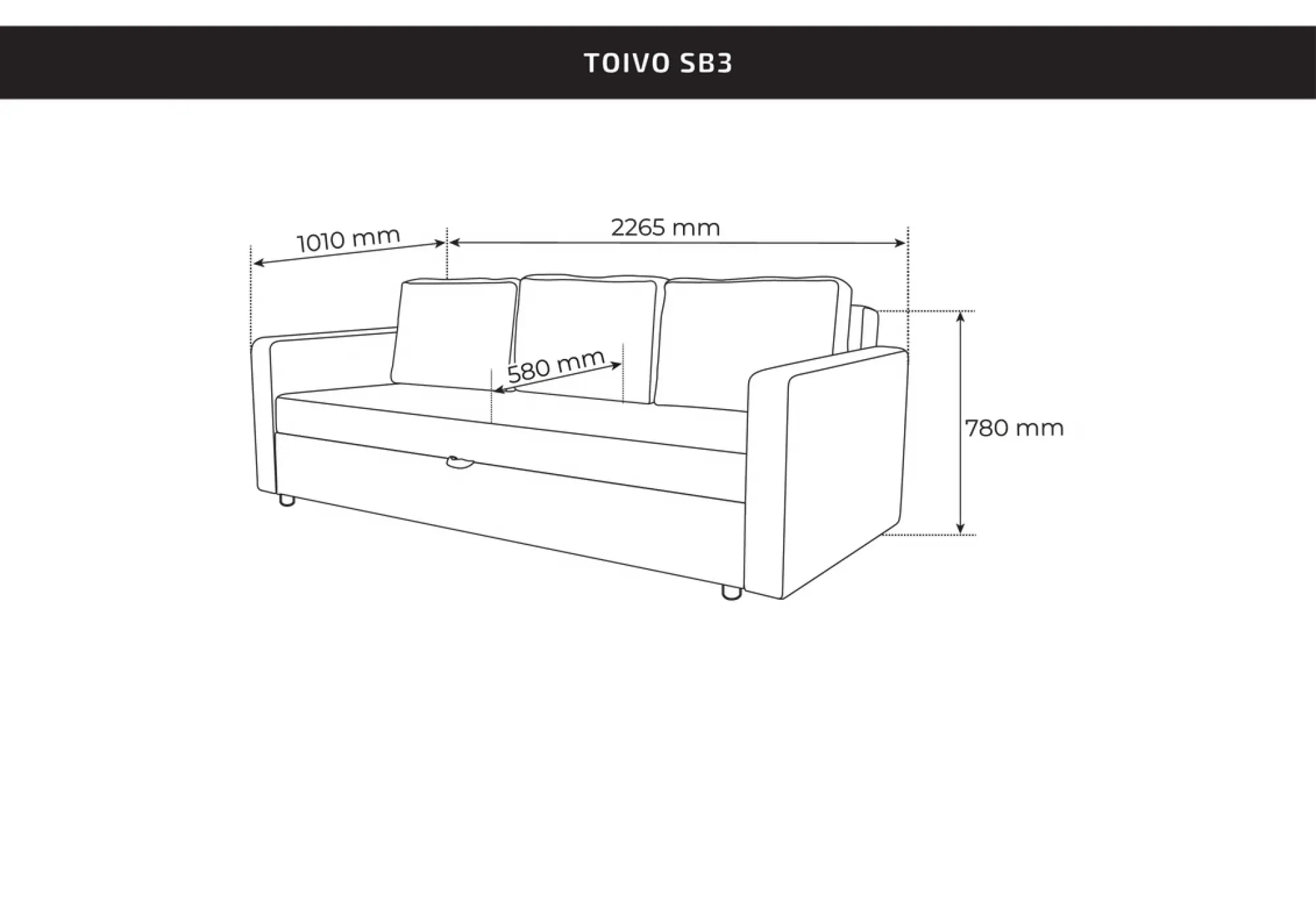 Габаритная ширина 2265 мм и глубина 1010 мм позволяют разместить диван вдоль стены, не перегружая пространство. При раскладывании конструкция увеличивается до 1420 мм в глубину и образует полноценное спальное место размером 1400×2000 мм, подходящее для регулярного отдыха одного или двух человек. Механизм трансформации «Тик-Так» обеспечивает поступательное выдвижение сиденья с последующей установкой спального места, что снижает нагрузку на напольное покрытие и делает раскладывание более удобным.