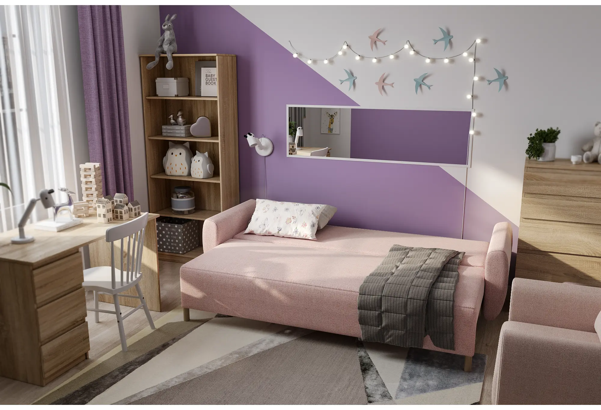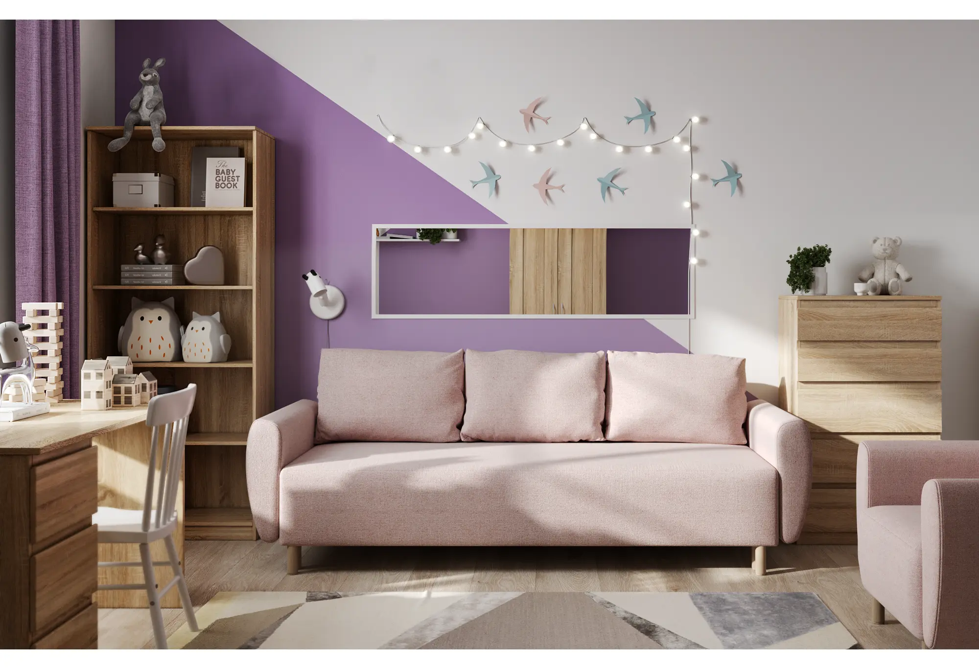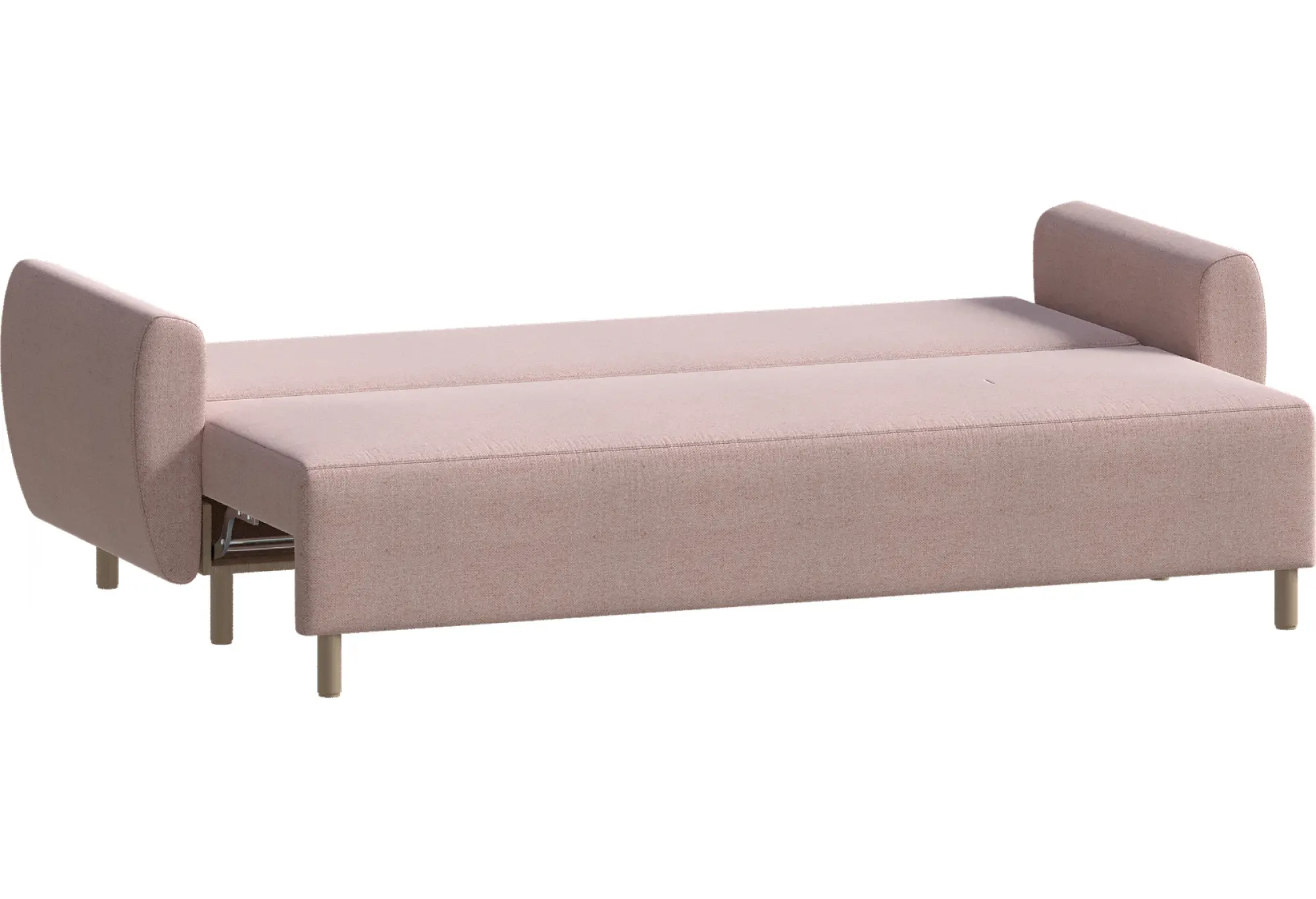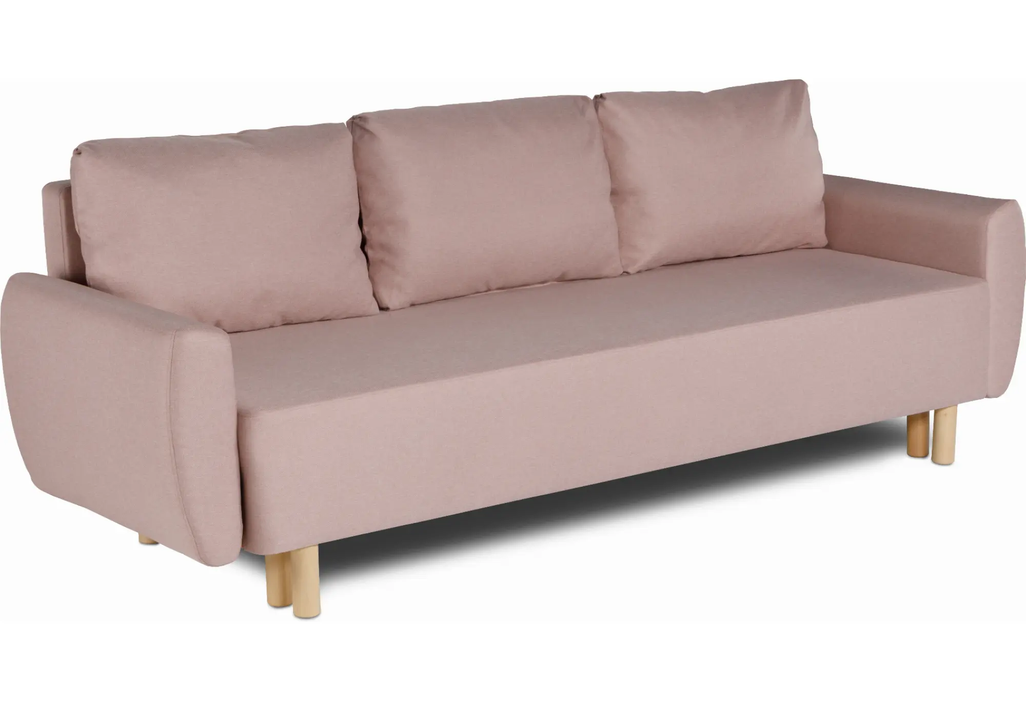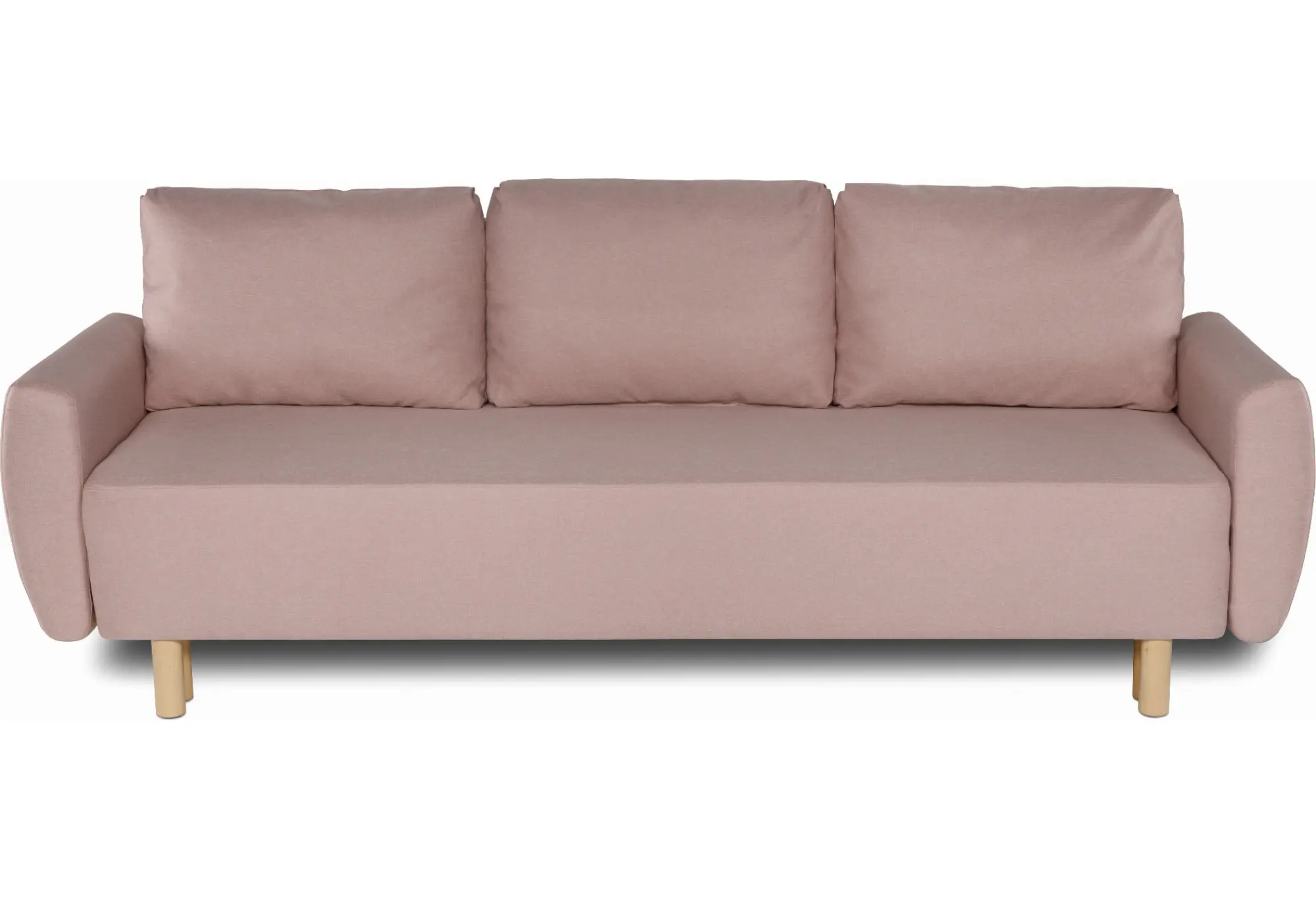 Диван-кровать «Тулисия» в светло-розовой рогожке выполнен в скандинавском стиле и сочетает простые геометричные формы с мягкими визуальными линиями. Лаконичный силуэт, прямое сиденье и свободно лежащие подушки создают спокойный, аккуратный образ, который легко вписывается в современный интерьер гостиной, студии или комнаты отдыха. Светлый оттенок обивки визуально облегчает конструкцию и делает диван уместным как в небольших, так и в просторных помещениях.