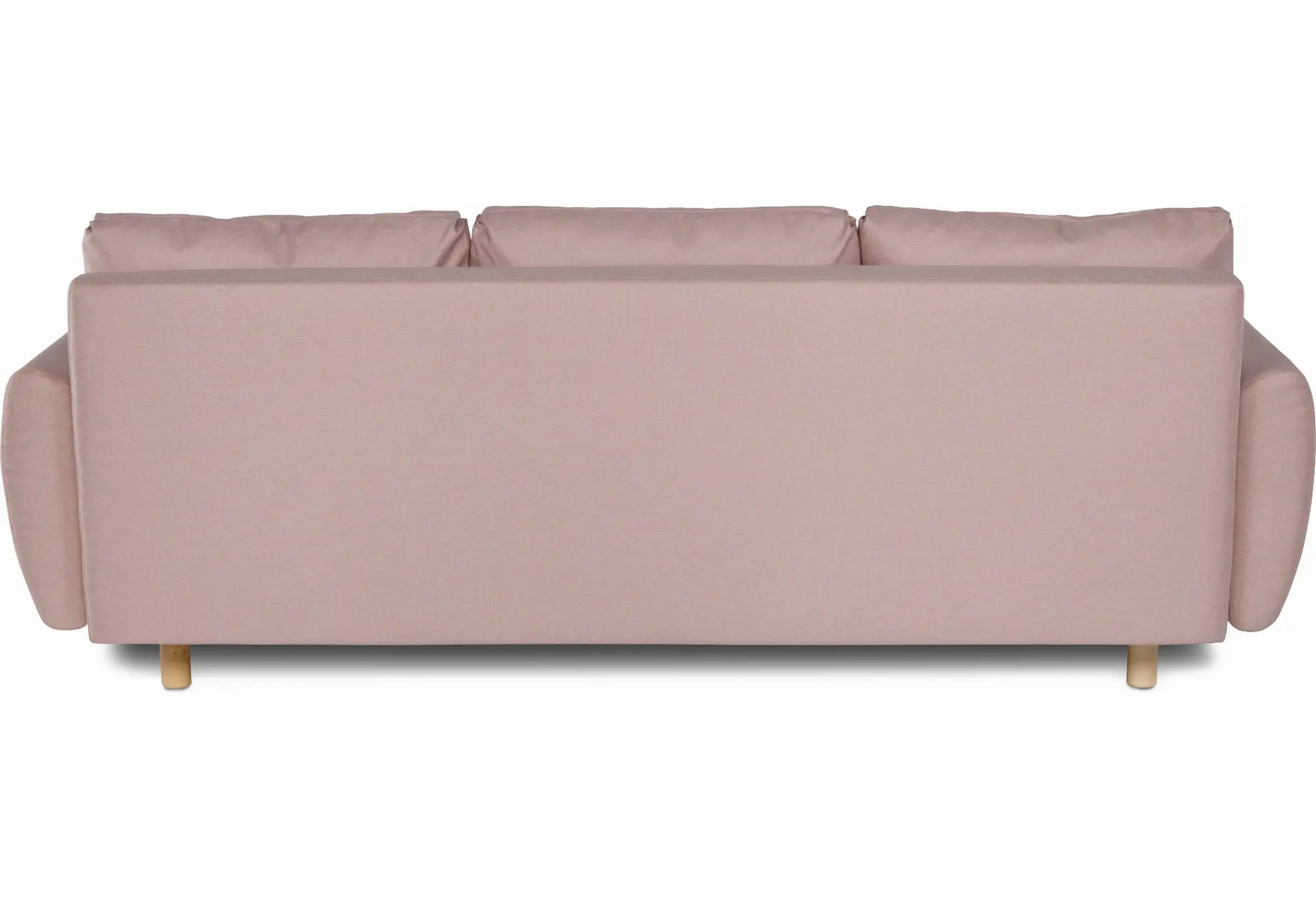 Каркас выполнен из массива дерева, ДСП и фанеры, что придаёт конструкции жёсткость и устойчивость. В качестве наполнителя используется ППУ, который формирует ровное спальное место и поддерживает форму сиденья и подушек. Обивка из рогожки 4-й категории отличается плотным переплетением нитей и рассчитана на повседневную эксплуатацию в жилых и общественных помещениях. Невысокие опоры визуально приподнимают диван над полом и дополняют характерный для скандинавского стиля внешний вид.